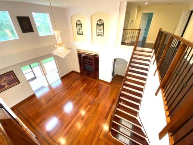 Gorgeous 5BR/4.5Bath ORCHID model on panoramic million $ oversized lake lot,Projector Home theater system with 132in screen & BOSE sound that brings home THEATER experience,Elegant Wrought Iron staircase,Brazilian Hardwood in main living area.Upgraded kitchen has newer LG Stainless appl/Front loading Washer/Dryer,upgraded bathrooms w/ frame less shower doors,All bedrooms w/built-in closet,new quiet Belt drive garage door openers,NEST Thermostats,RING VIDEO PRO Front door bell,Extended Screened patio,LOFT can be converted to 6th BR.Master Bedroom on 1st floor. Lake water for sprinklers.ACCORDION shutters.Expanded screened patio,HOA incl 24hr manned gate,GYM,Play room,Children play area,Basket ball court,Volley ball ct.FENCED on sides.