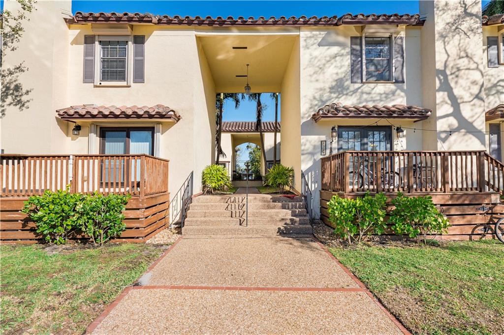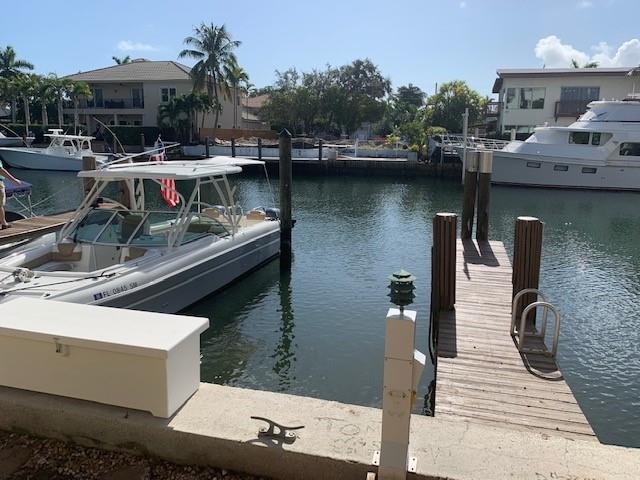 Rio Vista townhouse with private dock for a 35' boat. Widest boat slip in the complex including Power Pedestal w/30amps & Freshwater Tap. Just off the Intracoastal only 10 minutes to the ocean! Corner cozy townhome, remodeled, new floors, custom kitchen with granite countertops, crown moldings, fireplace in living room. Close to shops, restaurants, airport. Perfect way to enjoy Florida having your boat in your backyard! Complex waterfront area and landscape are in the process of being improved and redone. Seawall will be raised to comply with new City requirements. All these costs have been funded already by current owner. Monthly $750 fee includes Reserves, Windstorm, Bldg &Liability & Flood Insurance, Pest Control, Outside maintenance & landscaping. Amazing location & value!
