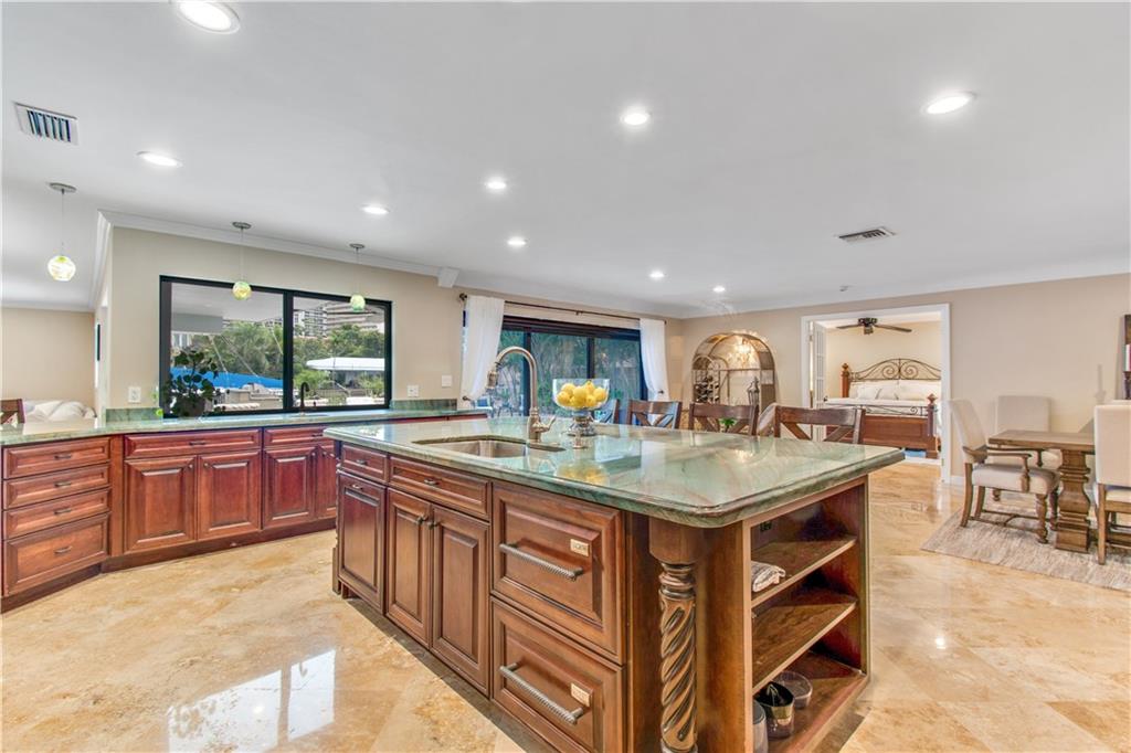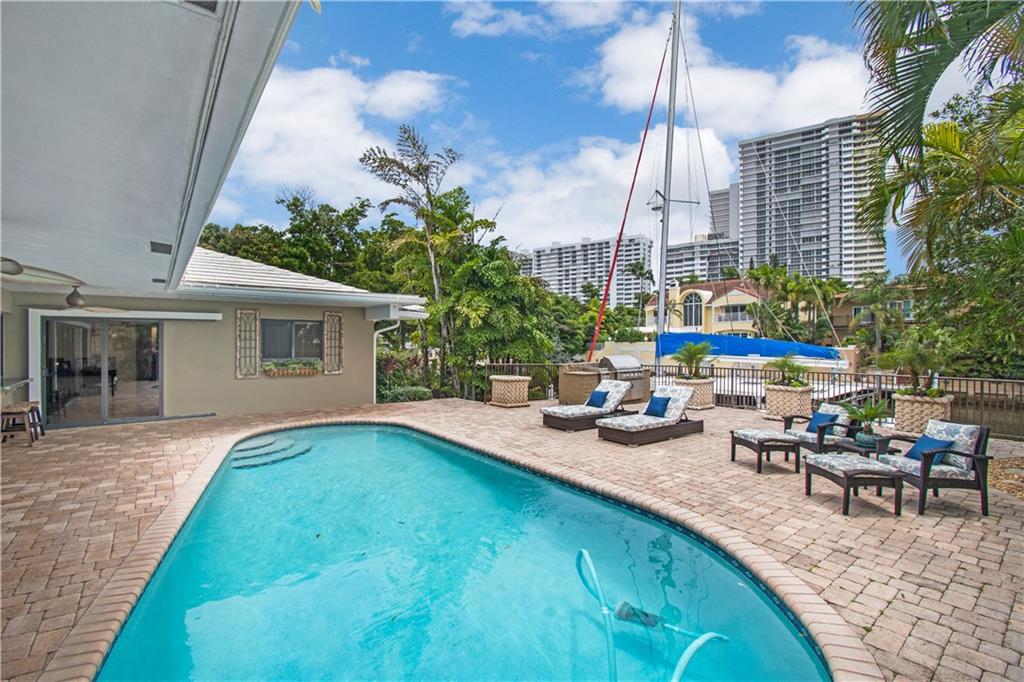 A Boater's Dream! Bring your 120 foot Yacht! Over 120 linear feet of dockage, a protected cove from the Intracostal waterway, a great turning basin & only one neighbor. This is literally the best waterfront location for a large boat in East Fort Lauderdale... and the home is perfect! Enter this 3 bedroom, 2 bath pool home and your are greeted with an open floor plan, expansive designer kitchen with huge island for entertaining, Sub Zero refrigerator, wolf gas burning stove, two sinks, custom counter-tops & more. Split floor-plan is great for privacy, open family room, marble floors throughout & all bathrooms finished tastefully. Impact glass with triple collapsible sliders, brand new AC and Duct system, newly pavered walkways and pool deck, summer kitchen and located on a corner lot!