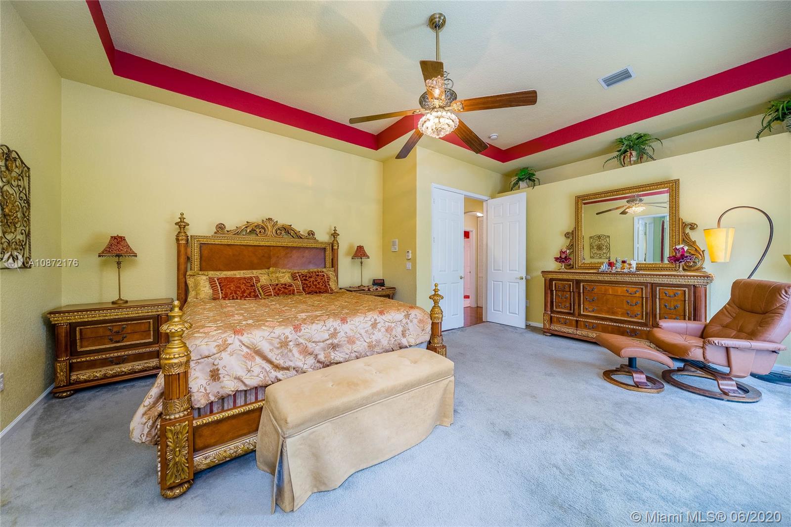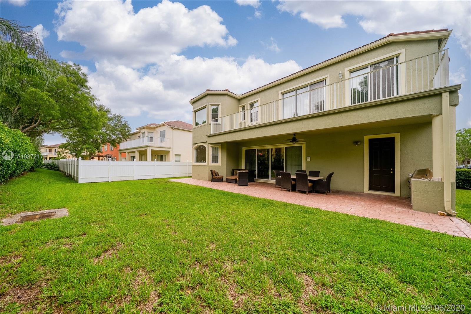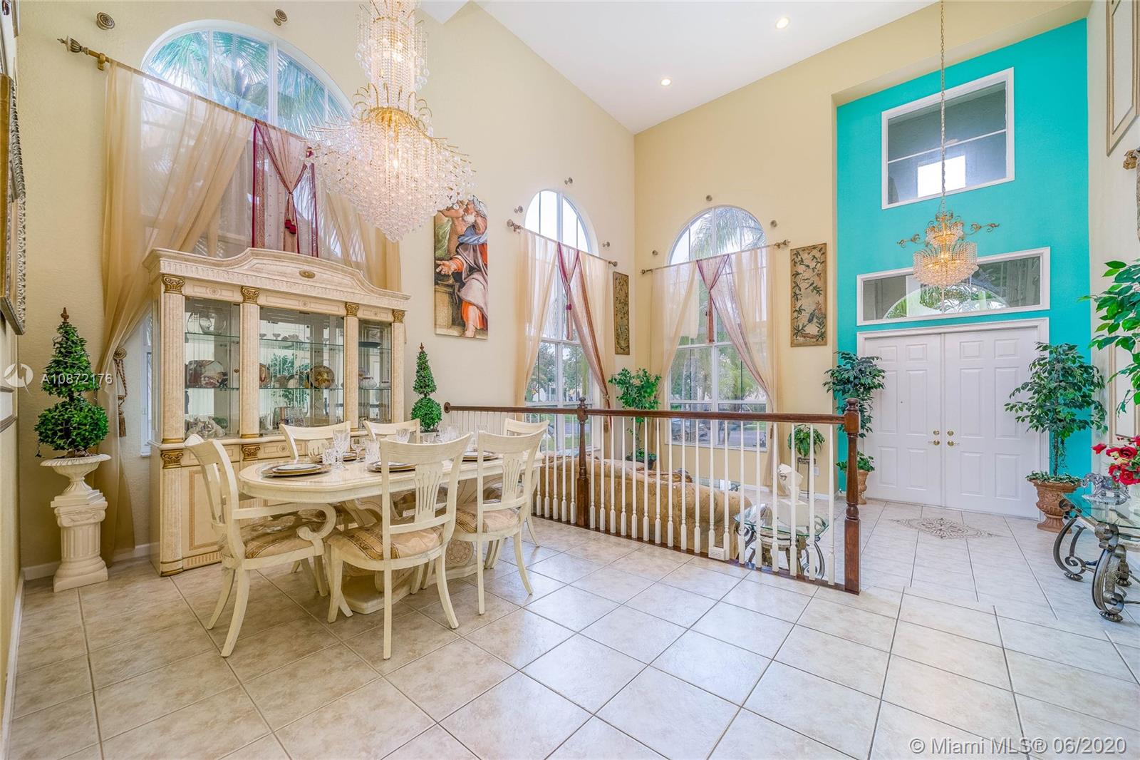 Enormous 6/4 w/office in sought after Rivera Isles! Impressive front, french door entry to the grand formal living & dining areas w/dramatic vaulted ceilings & large windows offering lots of natural light. Massive kitchen, w/breakfast nook offering a garden view. One full bedroom, office & cabana bath conveniently located on the first floor. Laundry room w/storage closet. Curved staircase leading to the expansive master suite, w/all bells & whistles, sitting area, walk in closets,open balcony & bathroom. Bedrooms 2 & 3 share a jack & Jill bathroom. 2 additional bedrooms share a bathroom. Excellent & very comfortable floor plan. Perfect for a large family. Backyard w/Built in grill, Hurricane shutters. Great amenities, including guard at the gate, community pool, club house & exercise room.