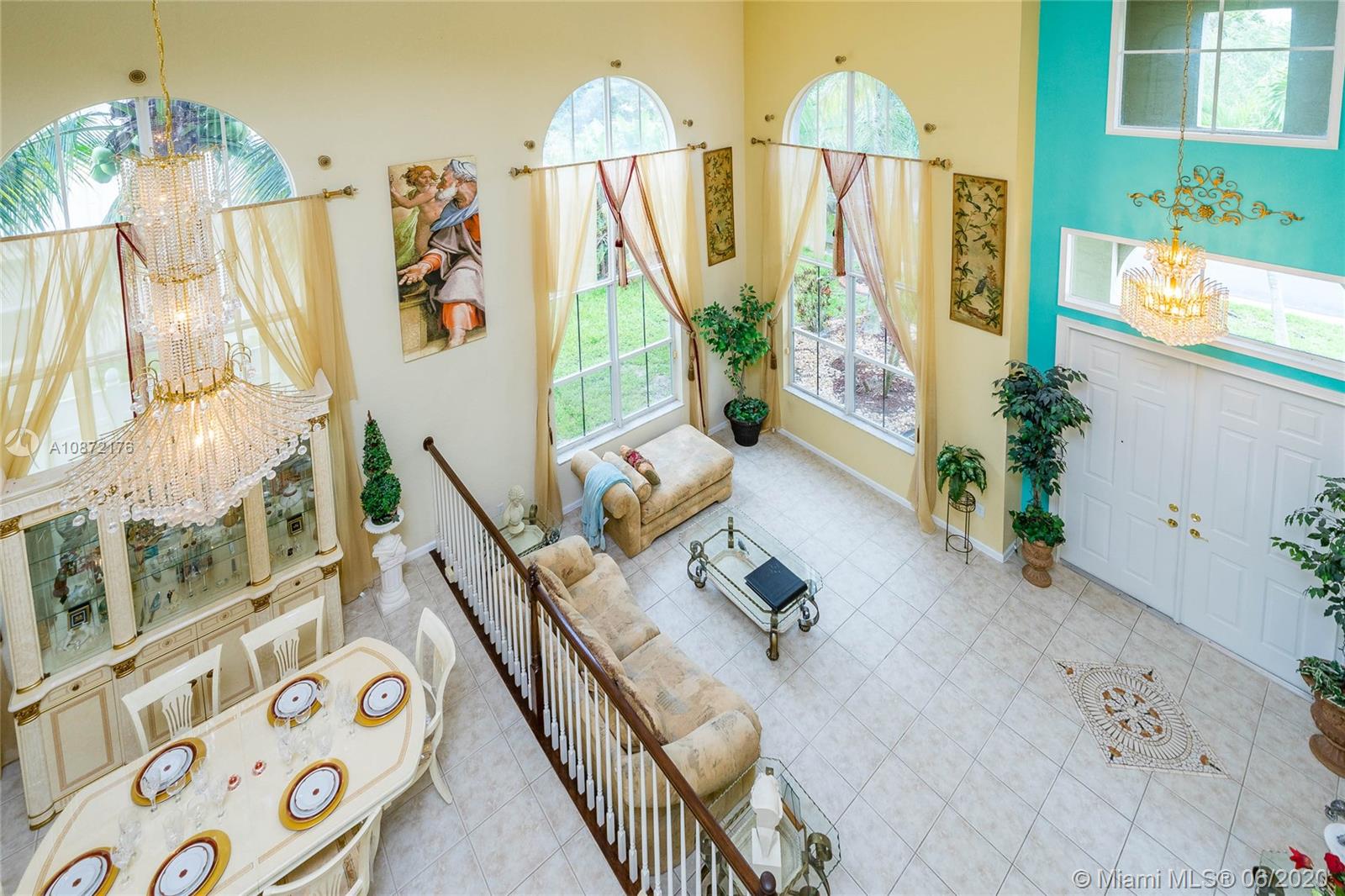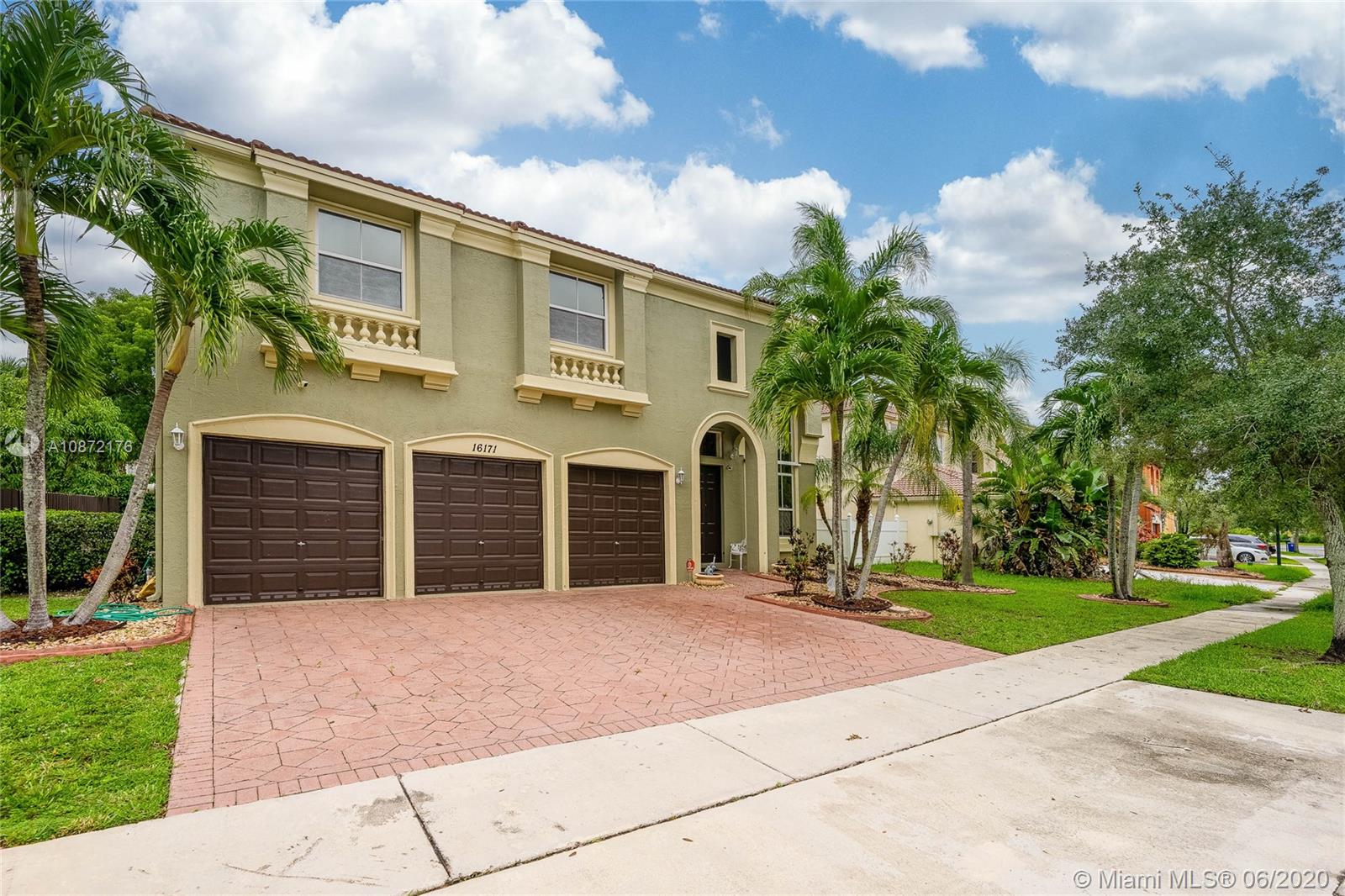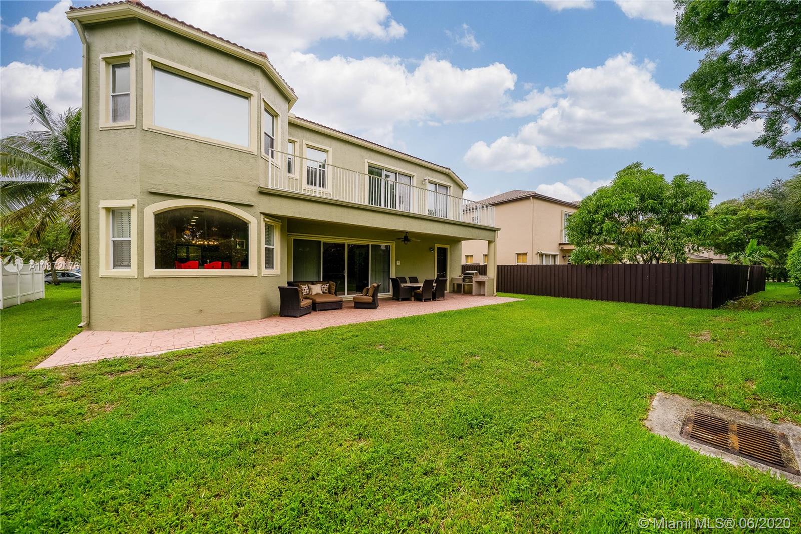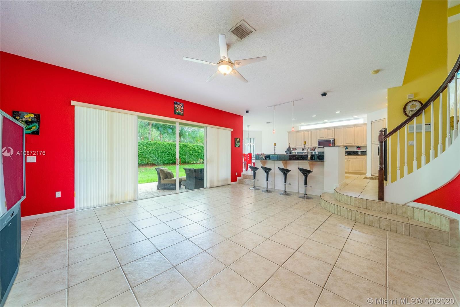 Enormous 6/4 w/office in sought after Rivera Isles! Impressive front, french door entry to the grand formal living & dining areas w/dramatic vaulted ceilings & large windows offering lots of natural light. Massive kitchen, w/breakfast nook offering a garden view. One full bedroom, office & cabana bath conveniently located on the first floor. Laundry room w/storage closet. Curved staircase leading to the expansive master suite, w/all bells & whistles, sitting area, walk in closets,open balcony & bathroom. Bedrooms 2 & 3 share a jack & Jill bathroom. 2 additional bedrooms share a bathroom. Excellent & very comfortable floor plan. Perfect for a large family. Backyard w/Built in grill, Hurricane shutters. Great amenities, including guard at the gate, community pool, club house & exercise room.