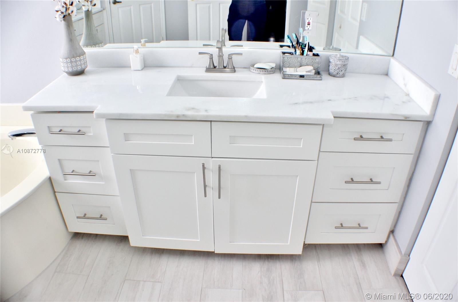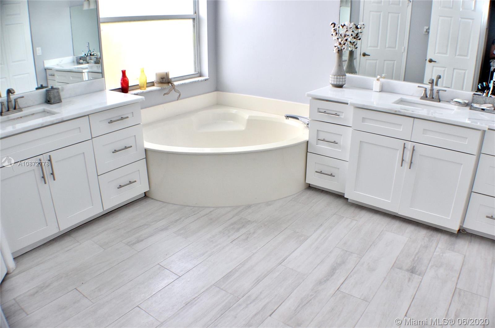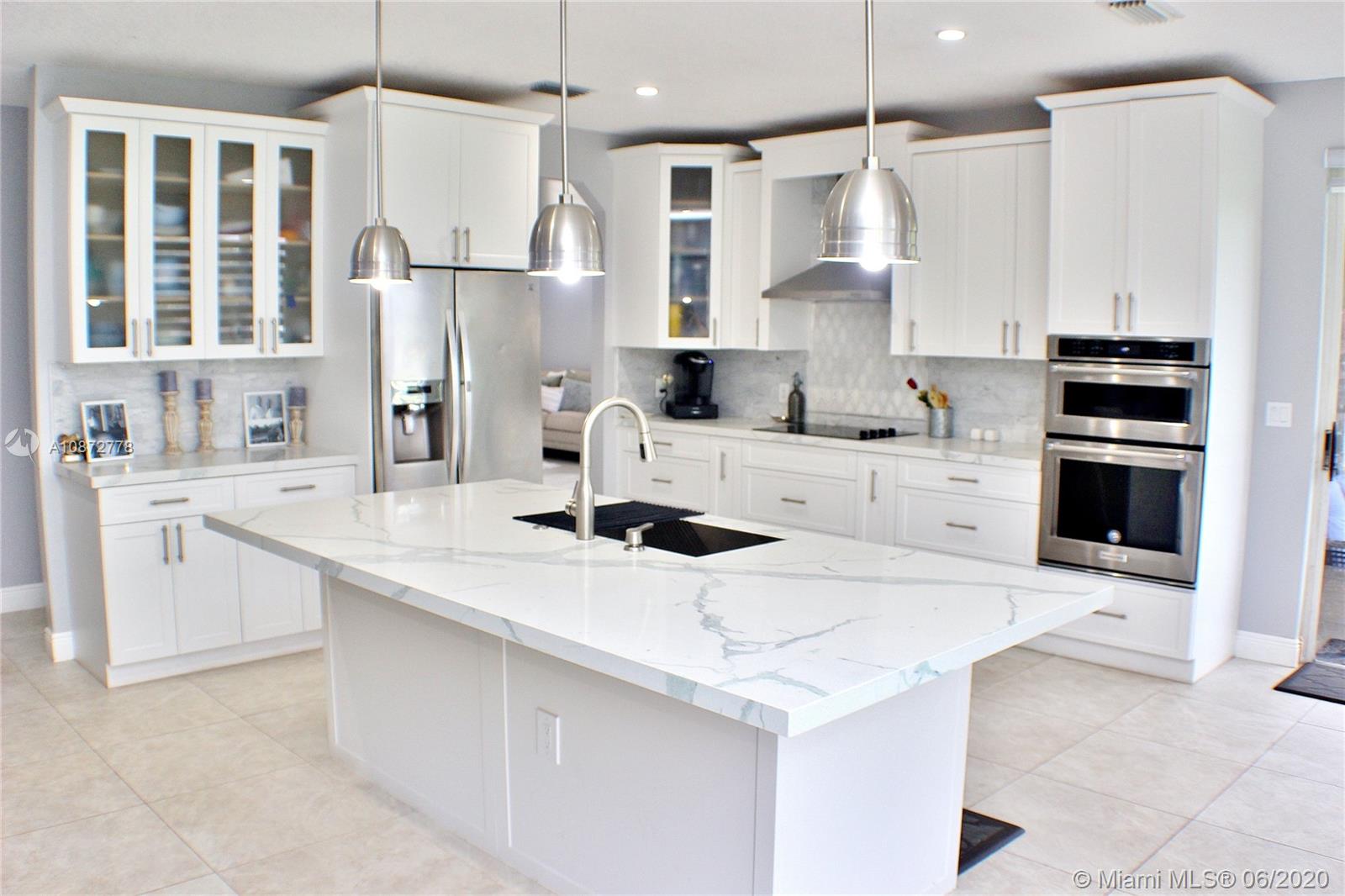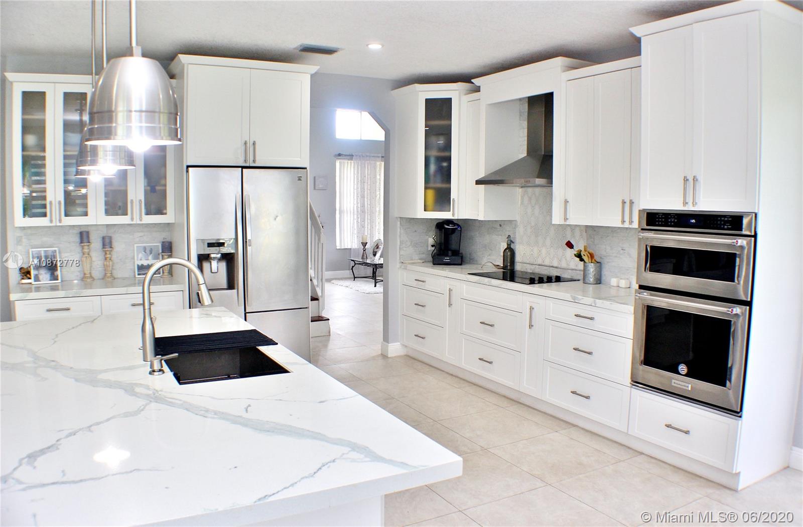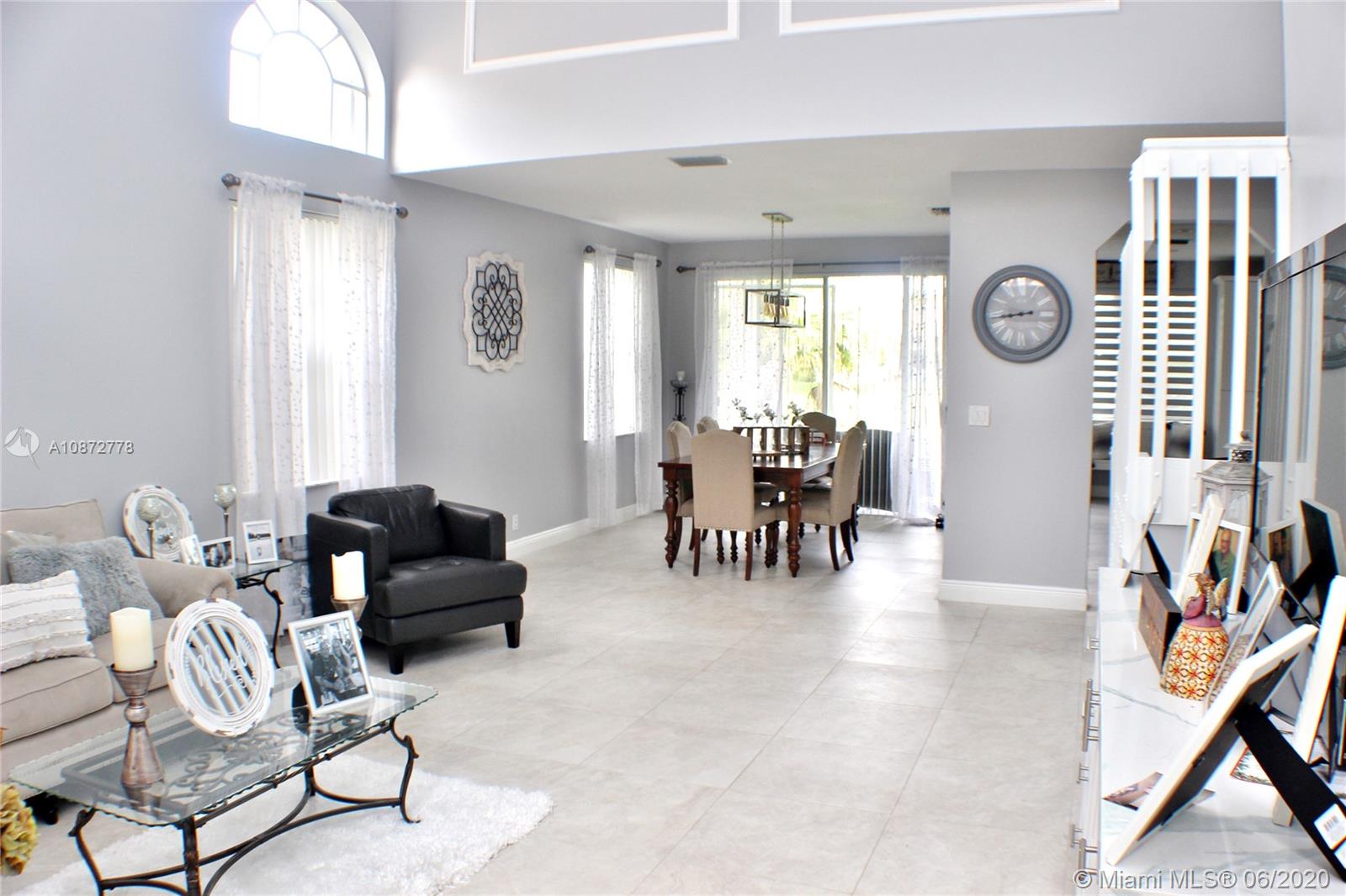 Beautifully upgraded & remodeled lakefront home with breathtaking views! This 2 story home features a spacious layout with volume ceilings, tile & wood flooring throughout, Living & Dining room combination. A stunning open concept kitchen with a center island, upgraded with Quartz counter tops, Marble back-splash, wood cabinets & SS appliances including a double wall oven. Indoor laundry/utility room. Upgraded guest bathrooms. Commodious Master bedroom with a lounging area, walk-in closet and an upgraded private bathroom with quartz counter tops, dual sinks, roman tub & separate stand-up shower. Over-sized backyard with tropical landscaping & a covered patio overlooking the gorgeous lake. Accordion Shutters throughout. Great location in a very well maintained community with a low HOA fee!