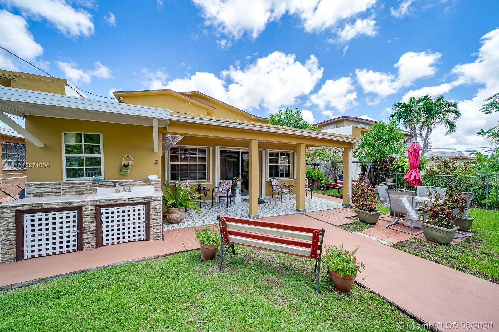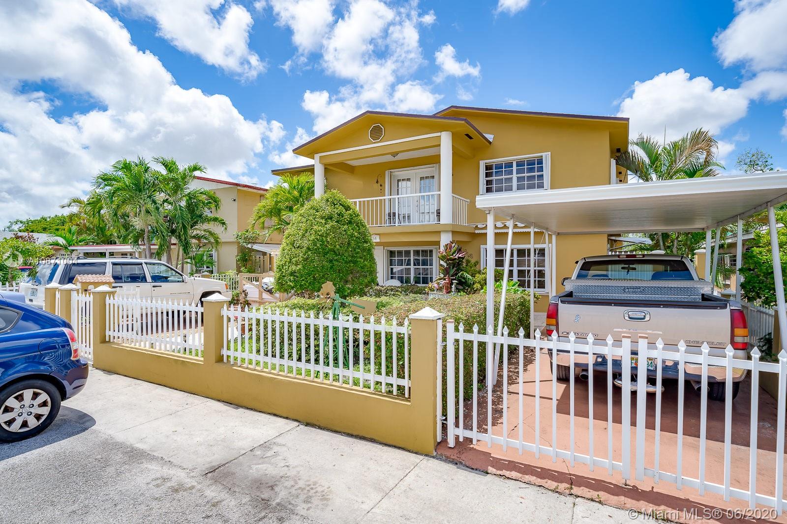 Welcome home to this meticulously maintained 4 bedroom 3 bath Spanish Mediterranean home. As you walk through the front gate you are welcomed by a beautifully landscaped small court yard with a sitting patio area. Tile throughout the entire home, eat in kitchen, huge walk in master closet and so much more. Comes complete with an upstairs in-law quarters, 3 bedrooms 1 bath, tile throughout and full kitchen. French doors from the in-law quarters living room opens up to a quaint open terrace Plenty of room for entertaining in your tropical oasis fenced in backyard. Fruit trees to include mango, avocado and a small fenced in garden ready for you plant seeds. Concrete and wrought iron fence enclosed property with automatic entry gate Roof replaced 2016 Both AC's replaced in 2014.