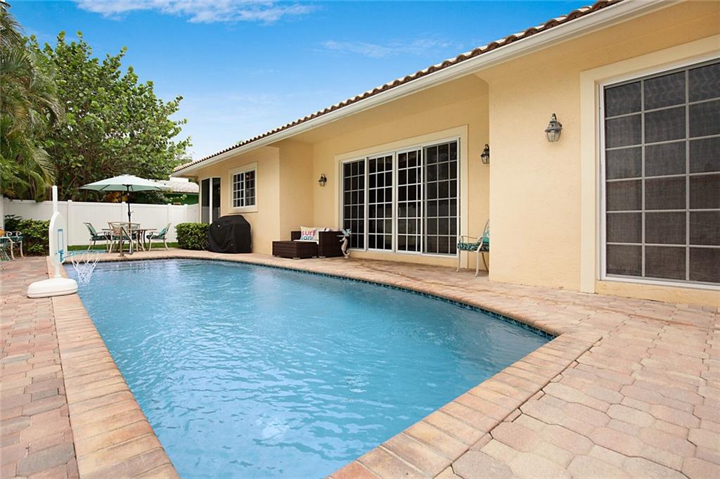 Incredible opportunity to own in Hillsboro Shores, where you have private beach access right around the corner. Whether this is for you or an investment, it checks all the boxes! Located on a quiet street, just south of the inlet, this home has great curb appeal. Enter into an expansive living area with high ceilings. There is an open office area tucked off to the left and a large formal dining space to the right. The home offers a desirable triple-split bedroom plan, each w/an en-suite bathroom, travertine floors, impact windows, eat-in kitchen, and interior laundry. The master has a large walk-in closet, double-sinks, jacuzzi tub, and spa-like rainfall shower. Other features include a 2 car garage, covered patio overlooking the pool w/new salt system & private fenced back yard.