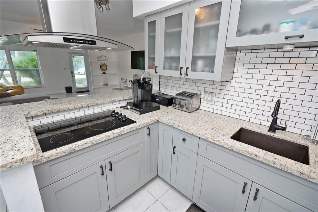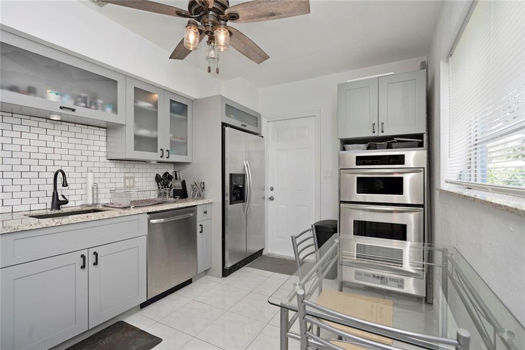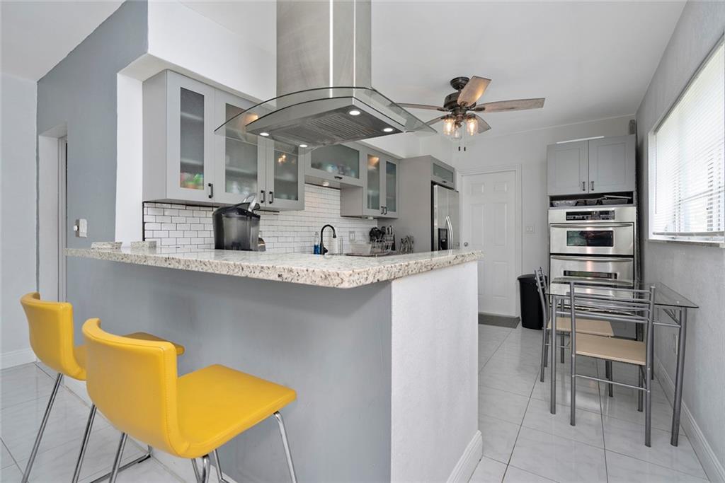 New kitchen and bath bring this house into the 21st century. Open-concept living and kitchen areas have polished granite bar top for eating or serving. Elegant stainless steel appliances that include a double oven and sleek exhaust hood over the radiant cooktop complemented by durable enameled cabinets for plenty of storage. Stress-free cleanup with ceramic tiles throughout, tankless water heater, and stacked front-load washer and dryer. Master bedroom includes bonus space that can be private sitting/media area or home office. Shopping and playtime are moments away at downtown Wilton Manors and Sunrise Boulevard—take a quick ride to the beach, to Las Olas, and to Downtown Fort Lauderdale. Furniture can be included for turnkey vacation rental! New roof being installed.