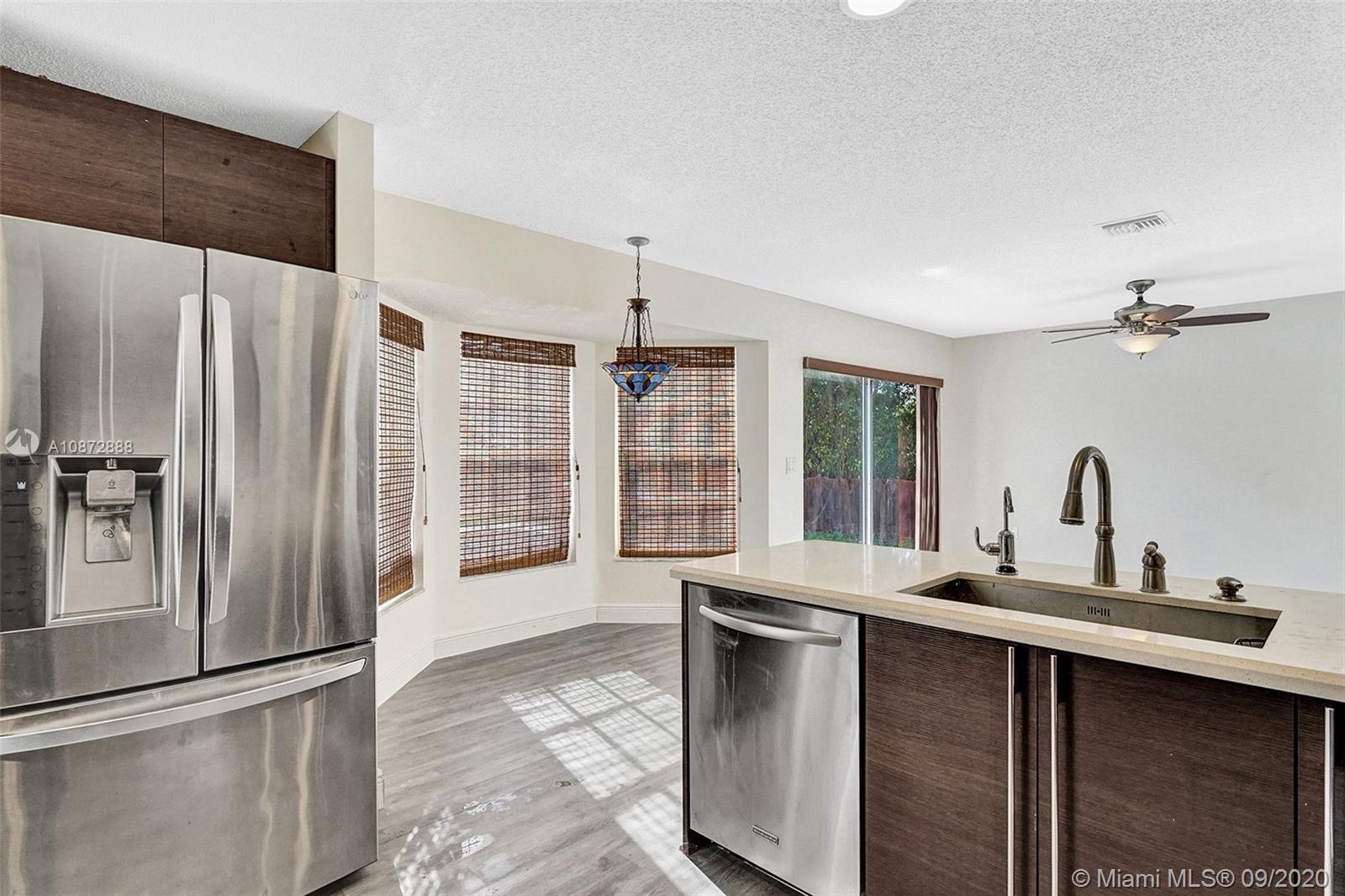 Single-family LAKEFRONT home, 4 bedrooms, 2.5 baths, a 2 car garage, and a SWIMMING POOL. The first floor features a spacious living room, dining room, family room & kitchen with new waterproof hardwood floors throughout and plenty of windows allowing for ample natural light. The eat-in kitchen includes updated cabinets, quartz countertops, and sliding doors leading to the backyard. In addition to this level is a powder room and laundry room. The second floor offers 4 generously sized, light and airy bedrooms, updated master bathrooms, updated shower, and vanities. "A" rated elementary school nearby and great location, easy access to Sawgrass Expressway, Ikea, 595, I-75, and close to Sawgrass Mall.