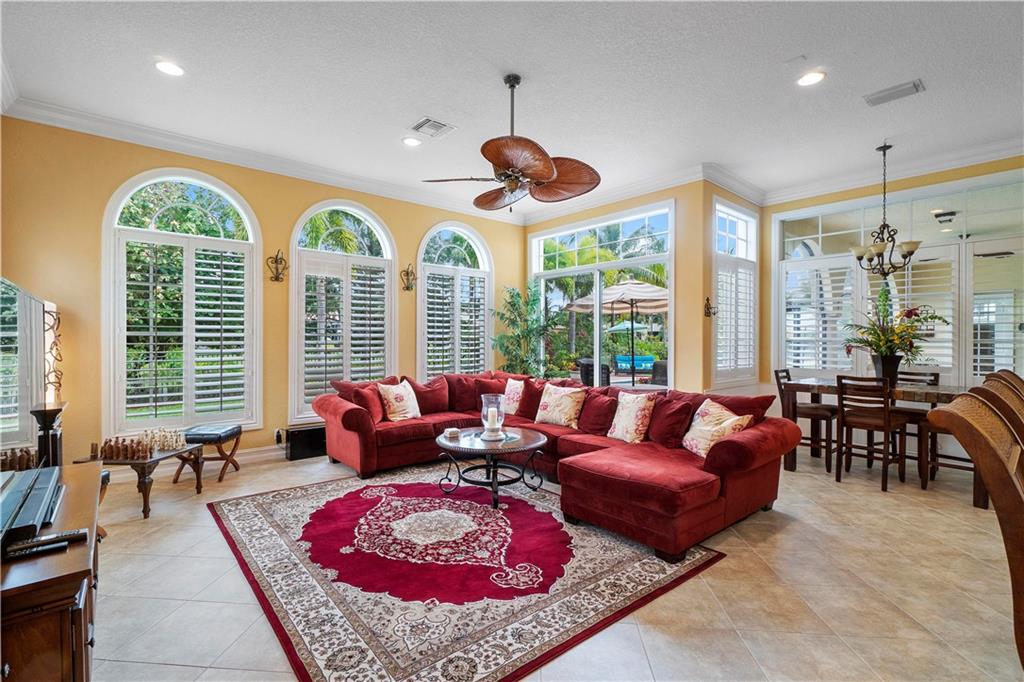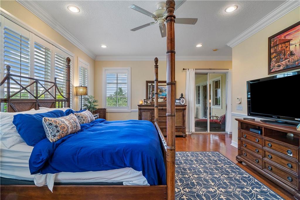 Beautiful Chesapeake Model with Five bedrooms Plus large Game Room with pool and lake views on an oversized water lot. This home is immaculate and upgraded throughout! Desirable floor-plan with High Soaring Ceilings & Beautiful Archways offering an abundance of natural light. Amazing Chefs kitchen with an enormous Center Island, Upgraded Cabinets, Granite Countertops, Stainless Steel Appliances & Snack Bar. Spacious Master Suite opens onto a private screened Veranda overlooking the Pool & Lake. Luxurious Master Bathroom features a Jacuzzi and a huge Glass Enclosed Shower. Additional Features include: Crown Molding Throughout, Plantation Shutters, Wet Bar, Wood Floors, French Doors & Built-in Closets. Beautiful Fenced In Lot with lots of Tropical Landscaping and Private Pool area!