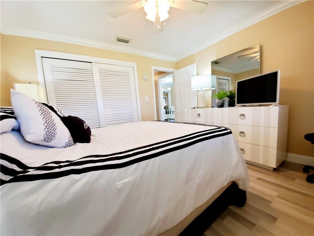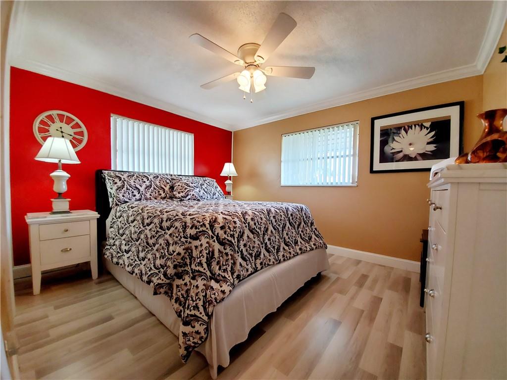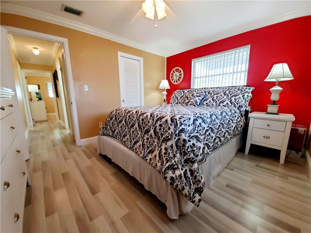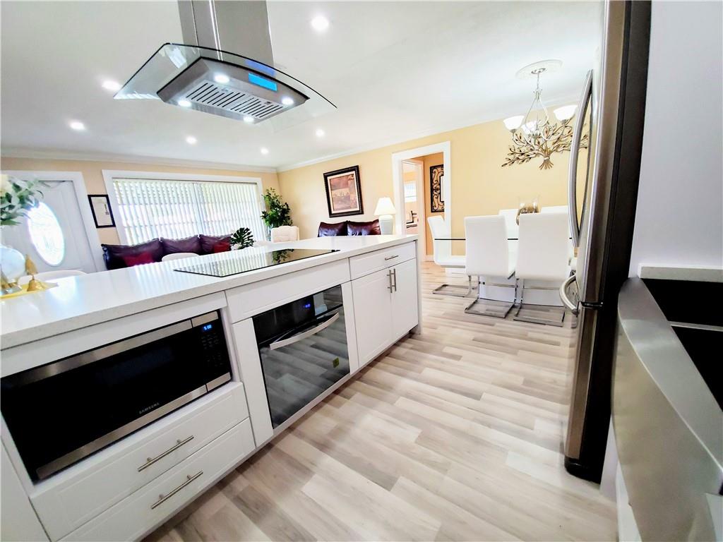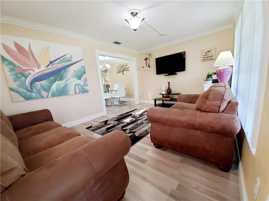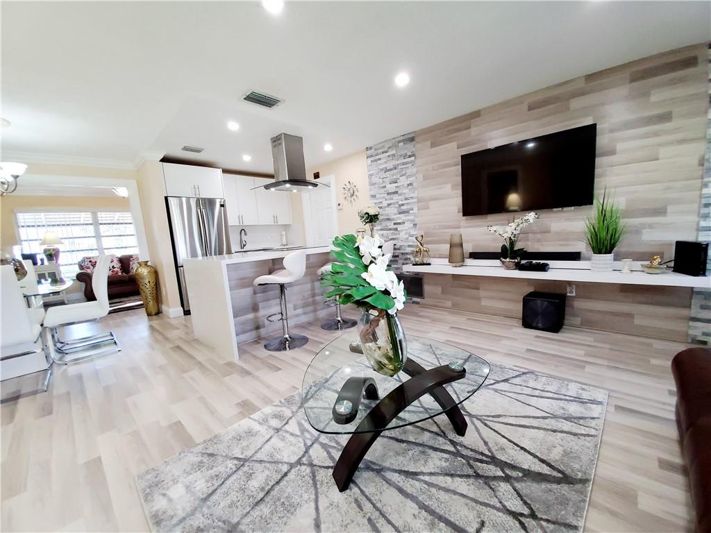 ALL updated 2/1 SFH w/1-car garage in desirable adult community of Leisureville. Great location-just across from the clubhouse/pool. You won't believe your eyes when you step inside this home! Beautifully, modern, stylish open-concept home, with lots of natural light, LR accent marble stone wall, LED high-hats, high-end finishes; SS farm sink, SS appliances & induction stovetop, wall oven, exhaust hood. Crown molding, 5 1/2in baseboards, laminate flooring in main living areas/bedrooms and ceramic tile in bathroom. Upgraded home incl. NEW kitchen with slow-close cabinetry, quartz countertops w/waterfall bkfst bar. Separate family room, outdoor covered patio, fruit trees. Permitted elec panel 2018, AC 2012, full size W/D. HOA incl;water, amenities, ext paint & pressure wash/painting of roof
