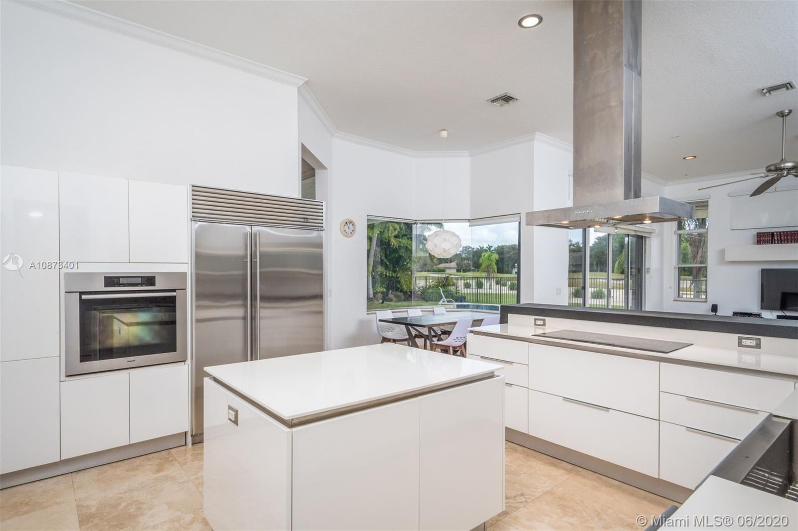 Beautiful home at desire Montclaire Sub-division, located on a Cul-de-Sac lot with spectacular golf course views, 6 Bedrooms and 4.5 Baths, custom gourmet kitchen with top of the line appliances (Sub-Zero fridge, 36" Thermador cooktop not included, dishwasher, oven & microwave all by Miele) Huge master bedroom with seating area, master bath with freestanding tub and steam room, 3 A/C units, pool, Accordion shutters, **Save $$$$ on your FPL account, solar panels system installed**.