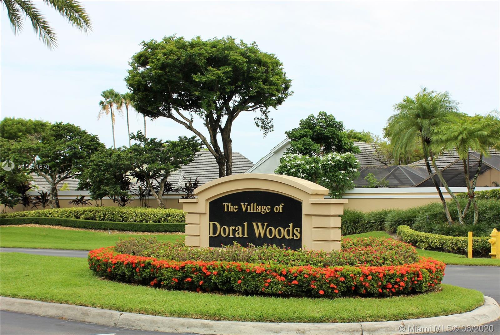A fantastic opportunity to own a beautiful town home in the prestigious golfing community of Doral Woods. This Mediterranean style villa features 2 bedroom, 2 full baths, a kitchen with stainless steel appliances, eat in counter that opens up to the dining room, a screened back patio with accordian shutters. The second floor has french doors that open to the large master suit. The home has an attached one car garage with courtyard entry and paved driveway for two vehicles. This quiet gated community has 24 hr security, club house, play ground, pool, fitness center, dining area, etc. This property qualifies for an FHA Loan.