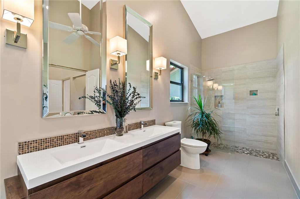 Located on a quiet cul-de-sac, this stunning four-bedroom, two-and-a-half-bathroom, and three-car garage home sit on an oversized pie-shaped lot in the prestigious gated community of Mystique Estates. This expansive property features an open concept floor plan and a split bedroom design. Recently updated throughout, this property boasts a newer roof, newer a/c unit and handler, new water lines, upgraded floors, newer electrical panel, newer water heater, and impact windows and doors. The master bedroom overlooks the pool and features a renovated bathroom with double vanity, a freestanding tub, and a shower. Perfect for entertaining, this home offers a covered patio, a beautiful pool, and an oversized yard.