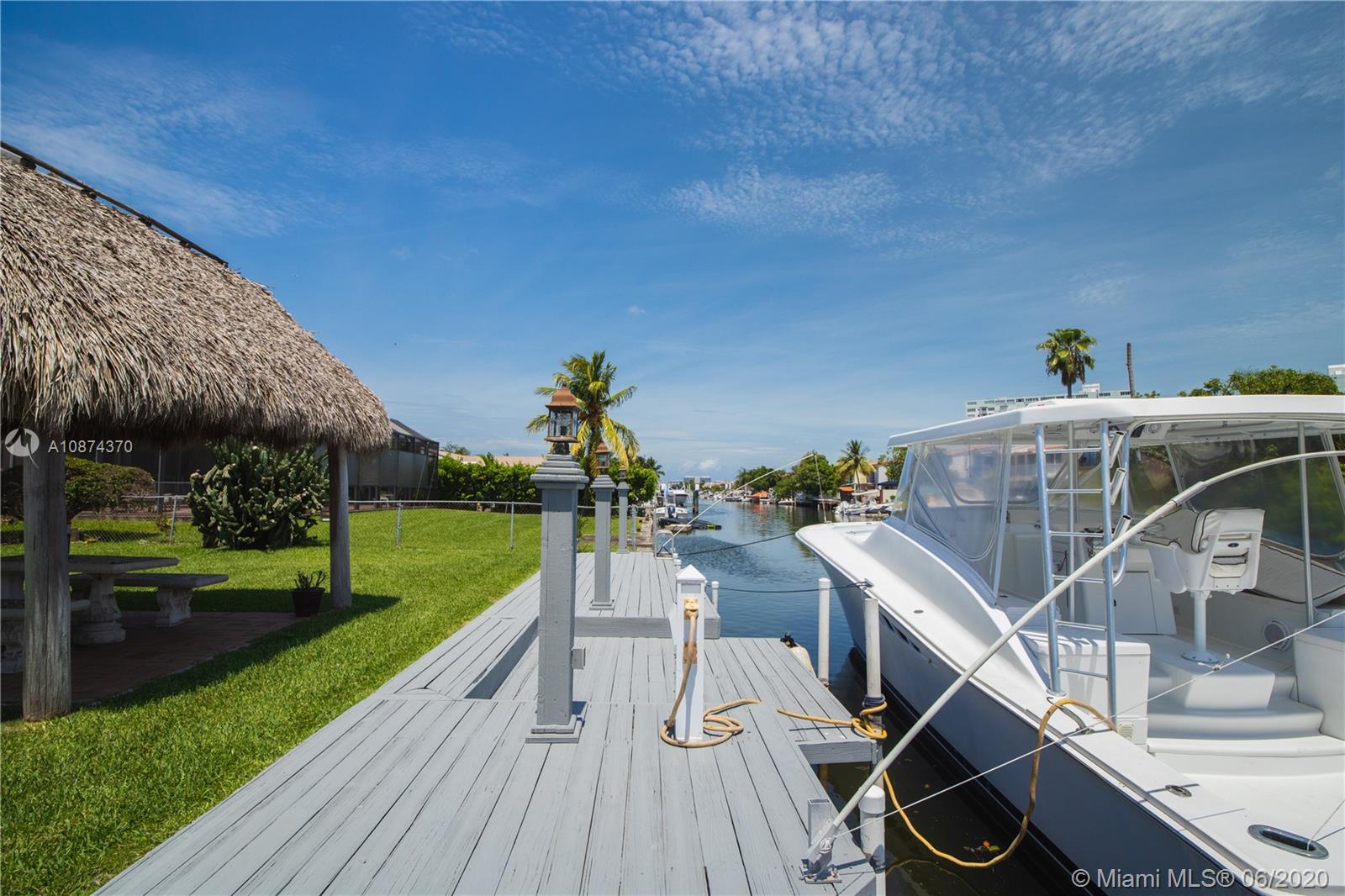 Located in Keystone Point, this 3 bedroom 2 bath 1950's styled waterfront home is on one of the larger lots in the community of 11,250 sq ft and can be remodeled to buyer's taste. This home has tons of natural light, 12 ft high ceilings, with a nice open floor plan featuring large kitchen with breakfast bar, electric fireplace, and open living/dining room. Both front and backyard are beautifully landscaped. You can dock your boat behind your home on this 75 ft dock and be at Haulover sandbar/outlet in minutes. Very close to Bal Harbor shops, restaurants and much more. No association fees, on a quiet street, and 24 hour guard gated community! This property is ideal for a buyer looking to move in, tear down, or remodel.