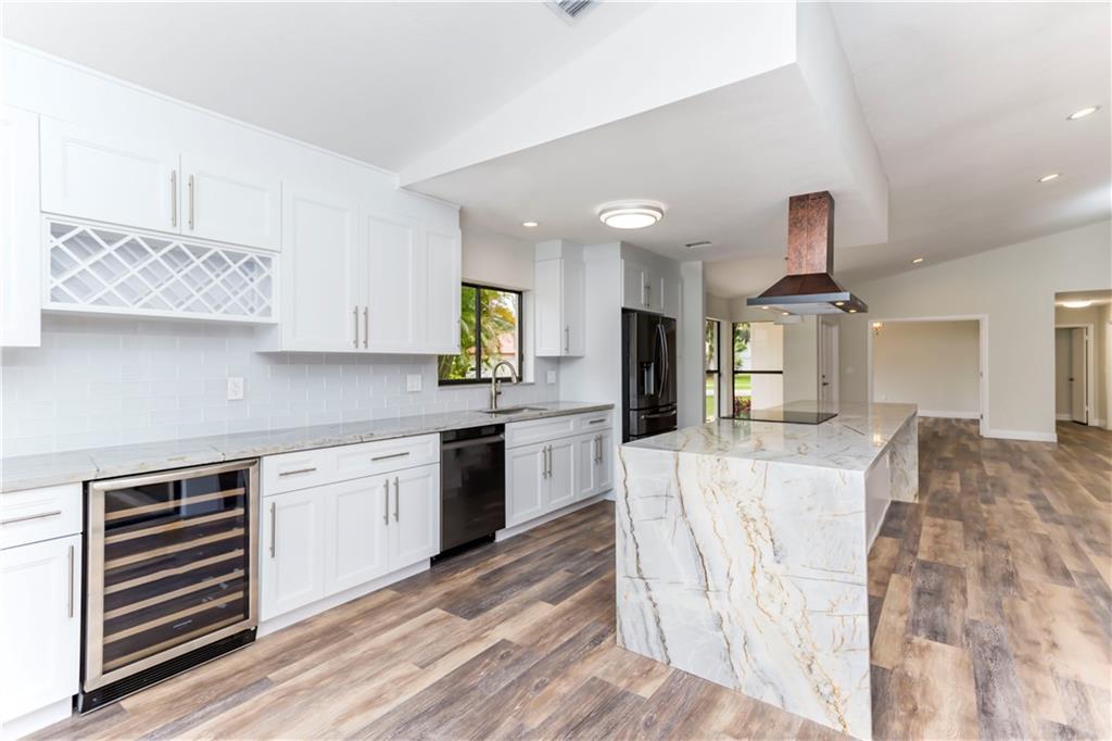 Completely remodeled 3/2 Single family pool home with all the bells and whistles. Property features include: All new features include, custom wood cabinets, quartzite counter tops w/waterfall island, all black stainless steel appliances, copper island hood, complete wood look waterproof plank flooring, custom baths w/quartzite tops, 100% LED lighting throughout, totally remodeled salt system pool, travertine patio, walkway & driveway, new A/C, 2009 newer roof, hurricane garage door, laundry room/new washer/dryer, new fence and freshly landscaped and painted int/ext.