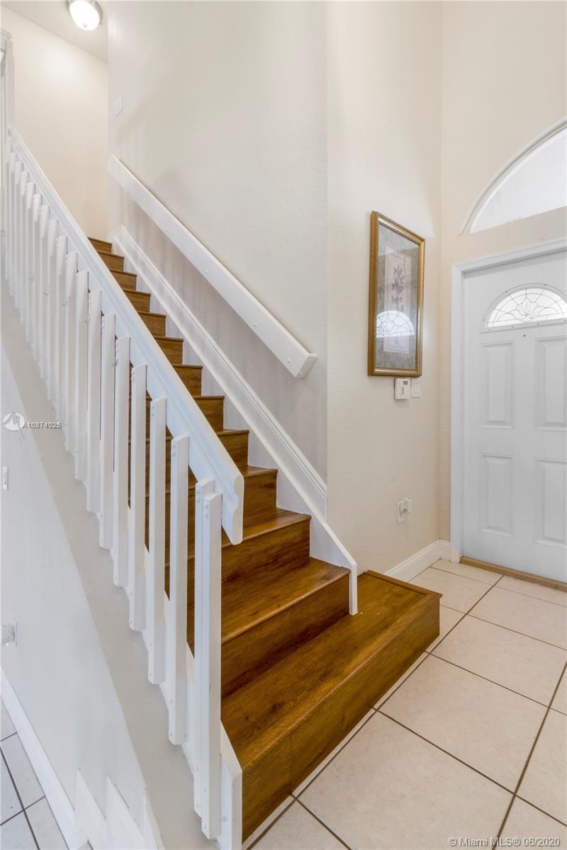 Recently renovated Single Family home that offers kitchen with Granite Countertops, including a bar with a built-in wine fridge. Expanded kitchen area with an island and extensive storage. Spacious Backyard With tiled patio with new awning for entertaining. Tiled downstairs with new waterproof wood laminate floors upstairs and stairway. Master bedroom has double entry doors and cathedral ceiling , custom built walk-in his and hers closet. Master bathroom with roman tub & shower. This home has plenty of natural light and a open concept . Hurricane shutters throughout , tankless water heater. Costa Verde a family oriented neighborhood close to Doral Academy Charter Schools. Low HOA fee of $219 includes 24 hour security, cable, pool and children's playground.