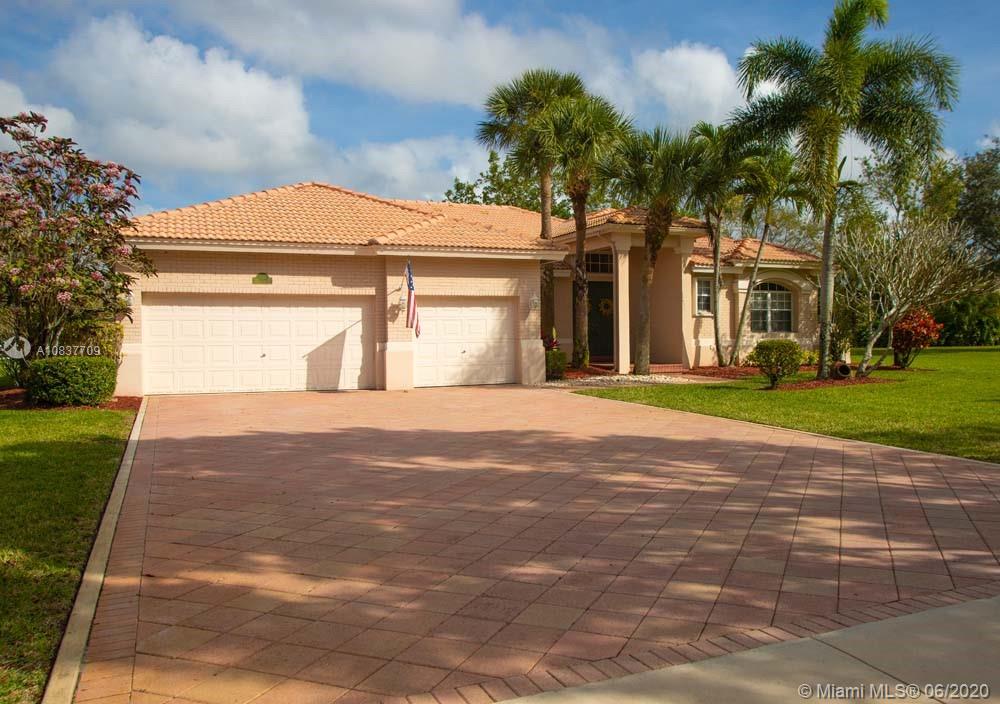 Welcome to the exclusive gated community of Country Glen one of the best kept secrets in Cooper City. This impeccably maintained 5/3/1 home with three car garage situated on a builders acre lot is a rare find indeed. Tiled throughout with separate living, dining and family room areas that flow nicely from one space to another. The neutral palette brings in a lot of natural light into all of the rooms. Large updated open kitchen with an expansive bar area, breakfast nook and island that makes it perfect for entertaining within this great space. Triple split bedrooms with a cabana bath. A large master bedroom with French doors lead you out to a nicely landscaped very private back yard. Located close to 75 and 595. A rated schools, 24 hour guard, newly painted.