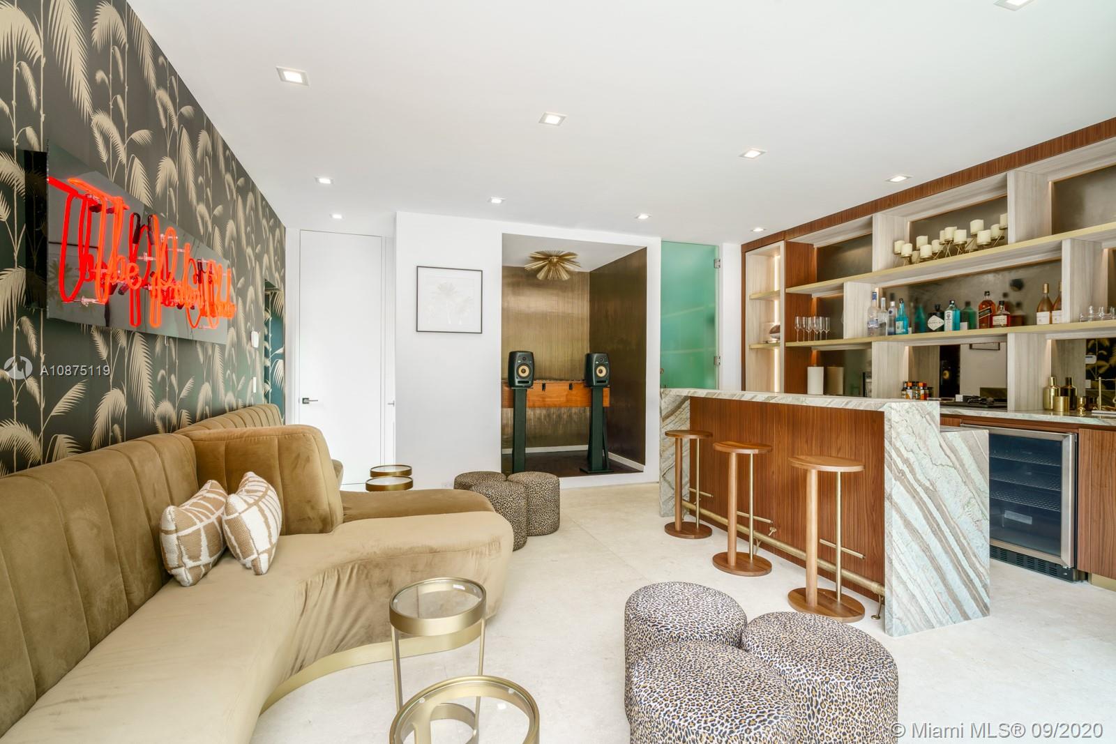 Newly gut renovated by Shear Construction. A gem in the heart of the most desired area in Miami Beach. Over 4,000 SF of lavish living space allows to fabulous entertainment areas, top of the line open format kitchen space, wood wall paneling throughout, a “showcase” glass enclosed garage and a special outdoor/indoor feel. 3 suites upstairs including an oversized master bed/bath with terrace and access to the furnished rooftop deck. Continue outside to the separate guest quarters featuring a large bedroom suite on second level complete with its own kitchen. Below, slide open the “day lounge/nightclub” outfitted with a massive wet bar, DJ booth and full bathroom. This space fully integrates with the outdoor lounge area and heated oversized pool and built in BBQ area.