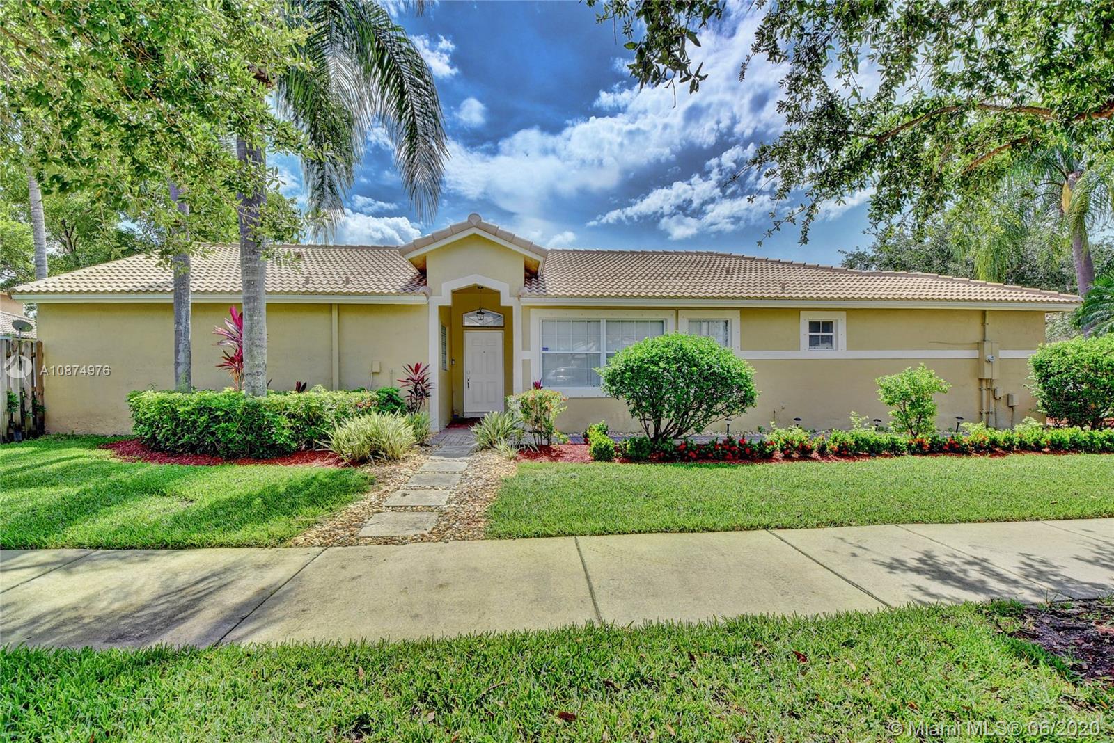 Gorgeous single-story home in highly desirable guard gated community of Emerald Estates! Brand New Roof in 2019!!! Large eat-in kitchen features white cabinetry, stone countertops, and new stainless steel appliances. Split bedrooms with an open layout, knockdown textured vaulted ceilings, deep baseboards. Tons of natural light. Hurricane shutters & impact garage door. Rheem Water Heater 2017. New lighting fixtures. Freshly painted interior/exterior. Tile flooring. Oversized corner lot. Fully fenced yard. Updated landscaping. HOA includes cable, internet, lawn/sprinkler, security, community pool, playground, and fitness center. Fantastic School system.