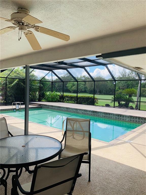 Lovely 3 bedroom, 2-1/2 bath home with large screened in patio with pool overlooking the golf course and furniture is included. Perfect as is....or ready for some TLC. Bright and in a great area of the development. Easy walking distance to the clubhouse. Priced to sell!!!! Located in prestigious all age guard gated community of Boca Woods Country Club. Boca Woods Country Club has two 18-hole championship golf courses, tennis facilities, pickle ball courts, bocce court, state of the art fitness center and fine dining. Mandatory membership required $35,000 nonrefundable initiation fee and $30,000 equity refundable when you sell your home.