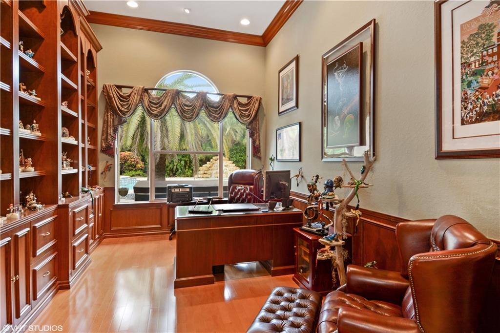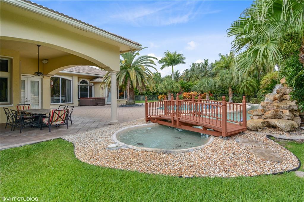 Spectacular 5 Bed 5 Bath Two Story Home With Large Office & Custom Media Room On A 3/4 Acre Private Professionally Landscaped Cul-De-Sac Lot. First Floor Master Suite With Sitting Area, 4 Closets, His & Her Toilets, Bidet, Jacuzzi & Wood Cabinets With Stone Counters. Open Kitchen With Stainless & Panel Appliances, Double Wall Ovens, 42" Glass & Wood Cabinets, Granite Counters, Center Island, Pantry & Door To Large Dining Room. Resort Styled Pool With Raised Spa, Rock Waterfall, Bridge & Lazy River. Additional Features: Professional Home Office With Built-in Shelving & Wood Floors, Loft, Plantation Shutters, Central Vac, Marble Floors, Crown Moldings, Family Room With Wet Bar, Accordion Shutters, Circular Driveway, Fenced Yard, Immaculate Garage, Propane Tank & Much More!