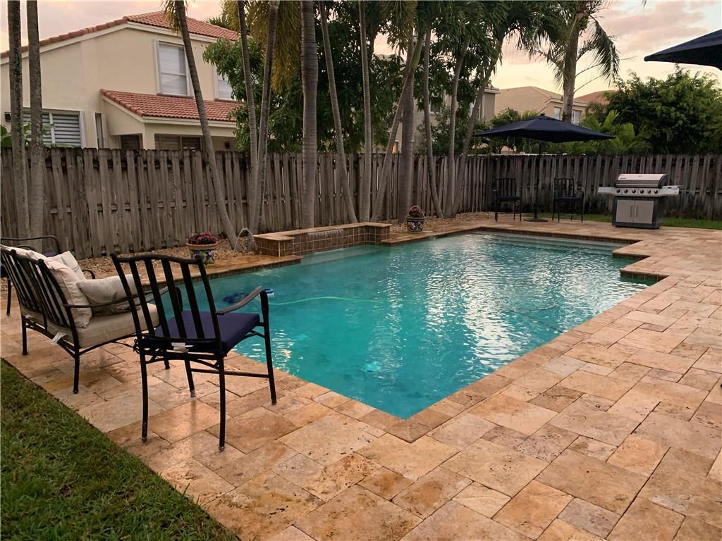 Open concept 4 bedroom, 3 bathroom home in the prestigious gated community of Riviera Isles. First floor French Doors in every room lead to your backyard oasis with large pool and spacious stone pool deck. Perfect for entertaining family and friends! Full bathroom and one bedroom on ground floor currently used as a home office. The kitchen features granite countertops, a large island with extra storage and stainless appliances. Updated master bathroom suite with quartz counters and extra storage. 24 hour security and resort amenities including gym, tennis court and clubhouse. Three top rated schools in walking distance that are perfect for your family.