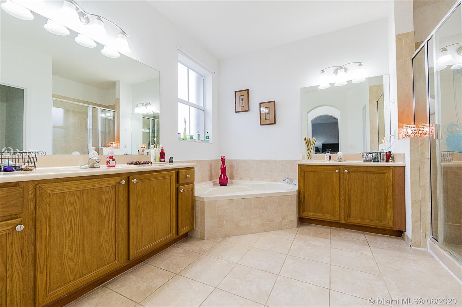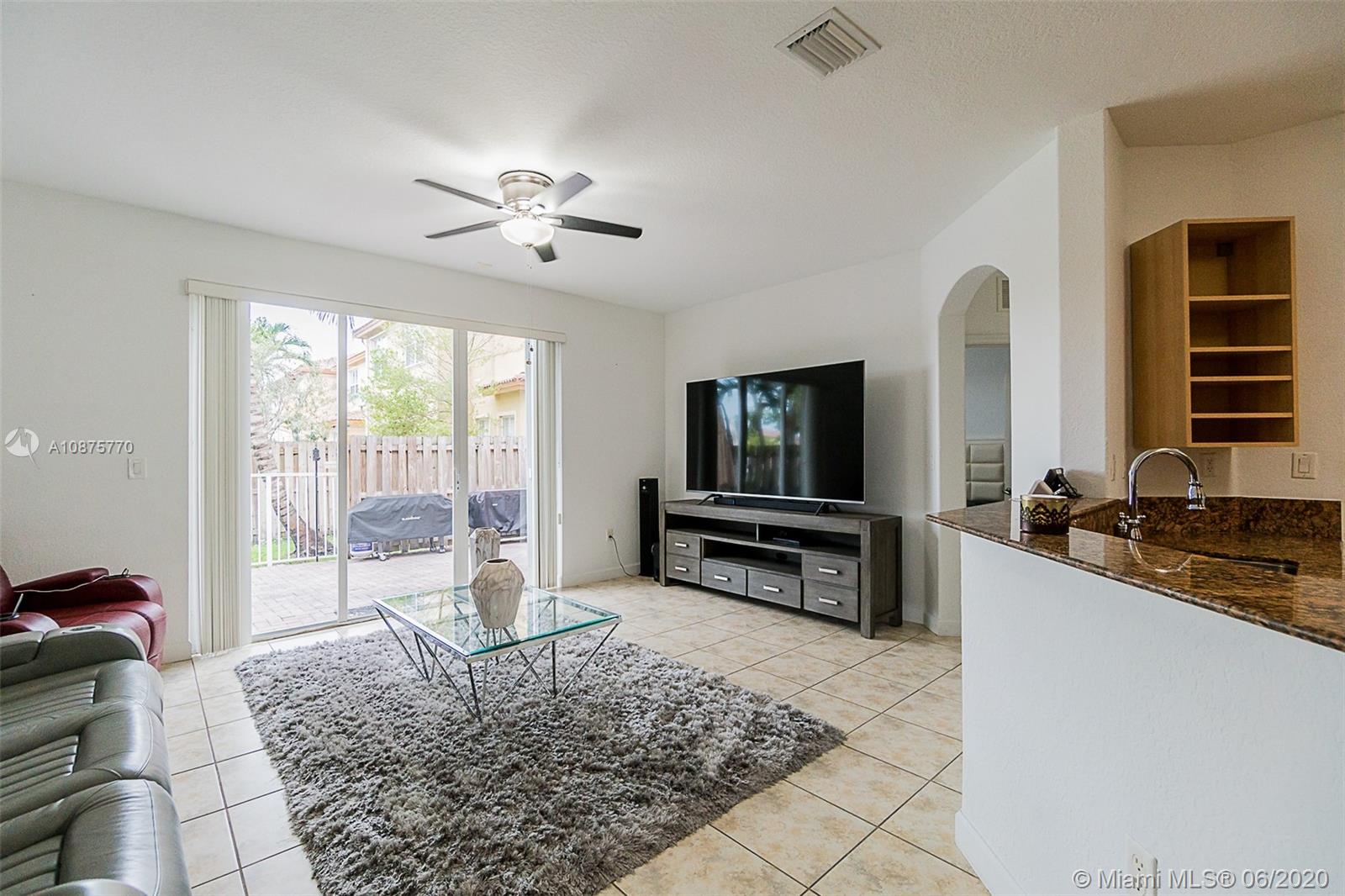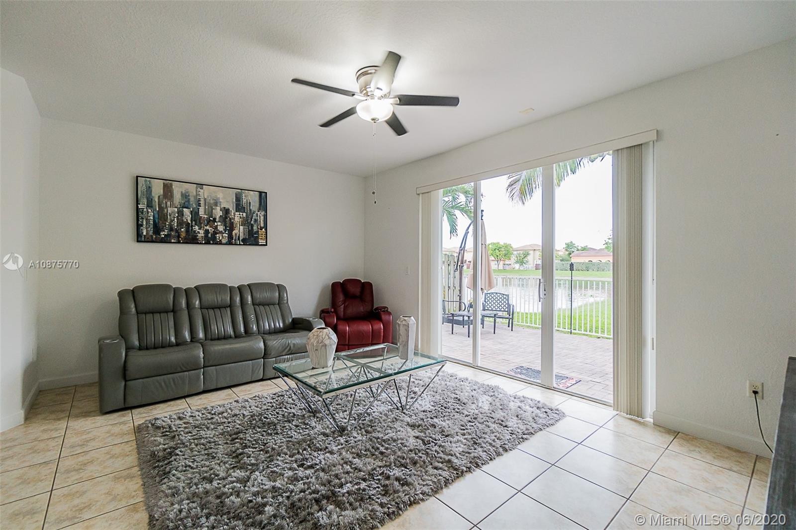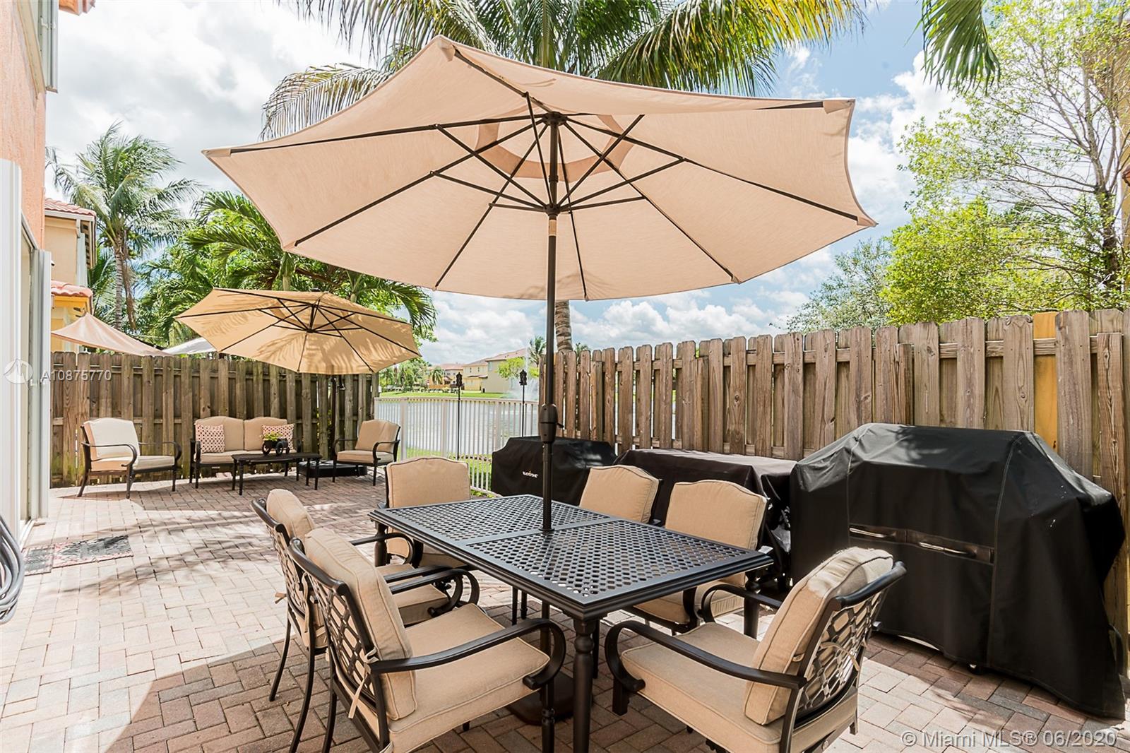 Relax in this backyard oasis with the sound of the lake waterfall back drop and fresh coconuts hanging from your palm tree! Best Location in Doral min from Turnpike exit and Dolphin Mall. Enjoy clubhouse with pool. The best Doral parks down the street and A+ Schools. This home is immaculate with NEW epoxy garage floors, large open space, full bath and bedroom on the first floor. Enjoy soaking tub and large master bedroom with a second floor laundry complete with NEW TOP of the line appliances. Security camaras included. This is the home you've been waiting for.