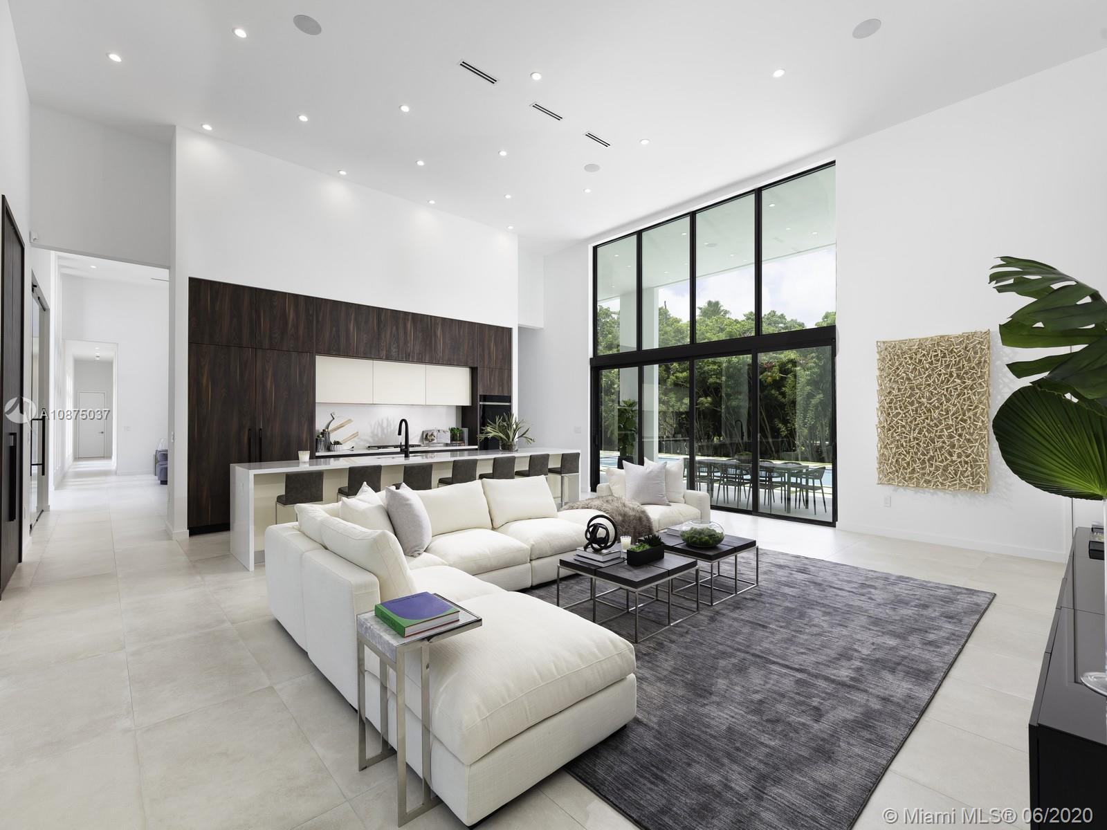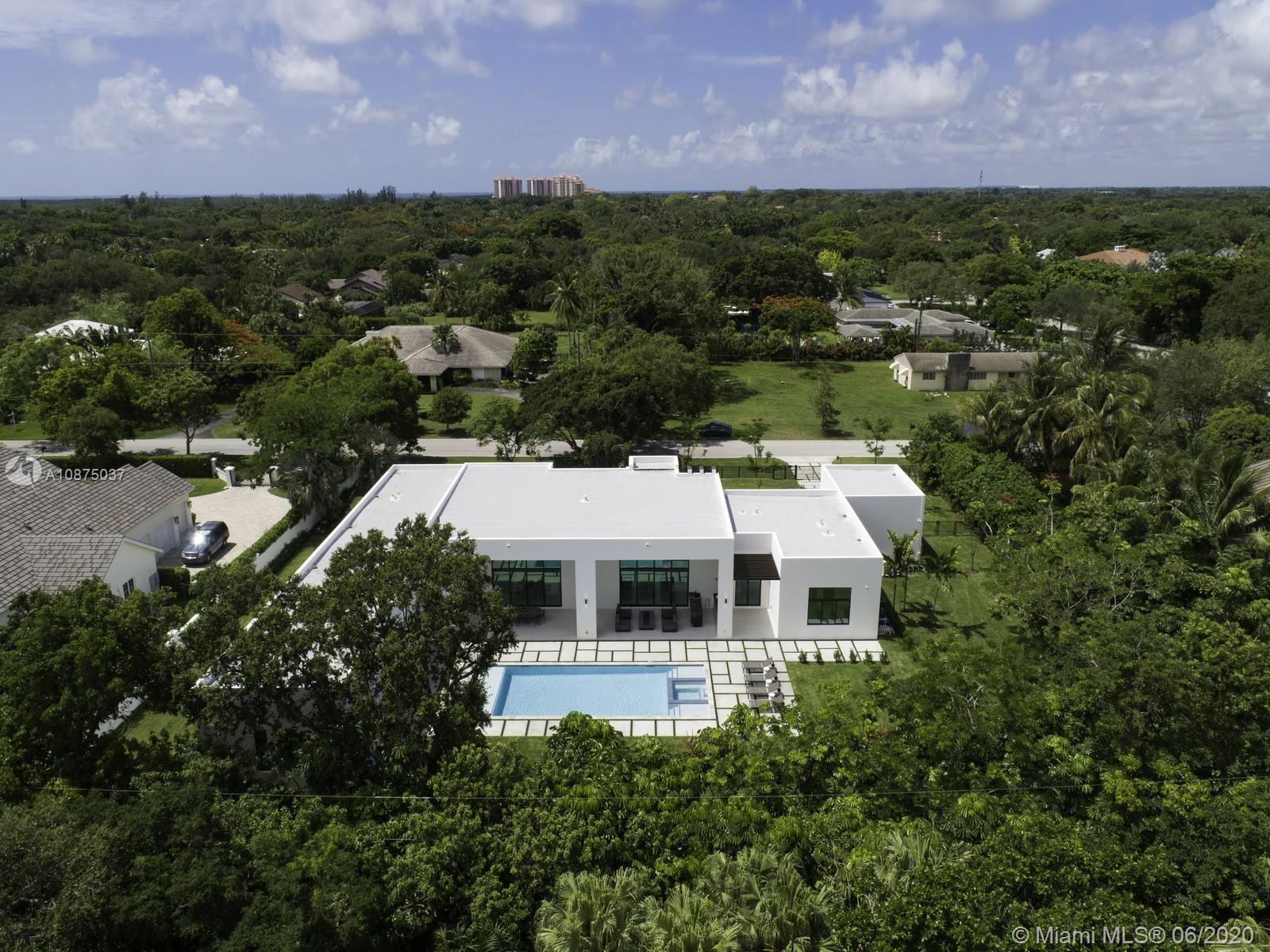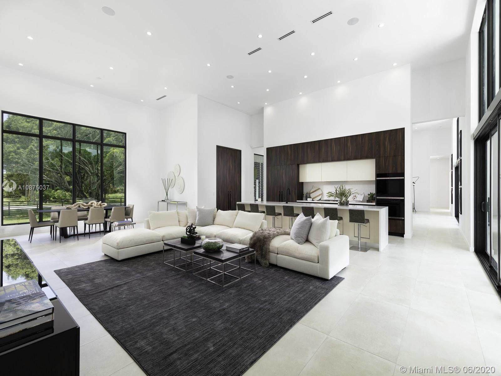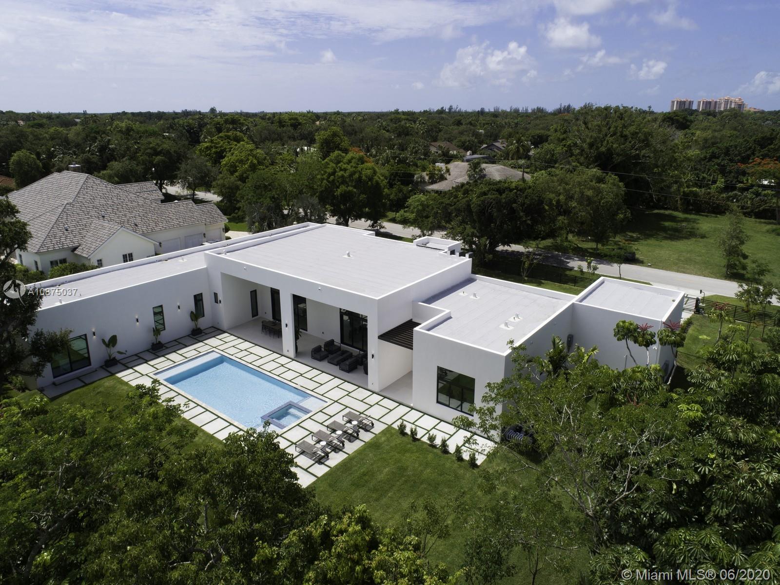 Brand-New One-story Modern Estate built with the finest finishes. Welcomed by enormous windows and doors offering plenty of natural light making this floorplan spectacular. Modern Italian Kitchen cabinets, Quartz counters, Wolf and SubZero Appliances. Picture-perfect entertaining Kitchen and Family room area while enjoying flow through yard views. Estate offers 6 en-suite bedrooms with finished closets, den/office space. Lavish master Suite with spa like bath, double vanities and water closets, floating tub, and grand shower. Find an extravagant resort style pool with expansive green grounds. LED Lighting and porcelain floors throughout. Other features: high ceilings, large covered terrace, summer kitchen, 2 car garage. Premier Pinecrest Schools nearby. 1-year builder’s warranty.