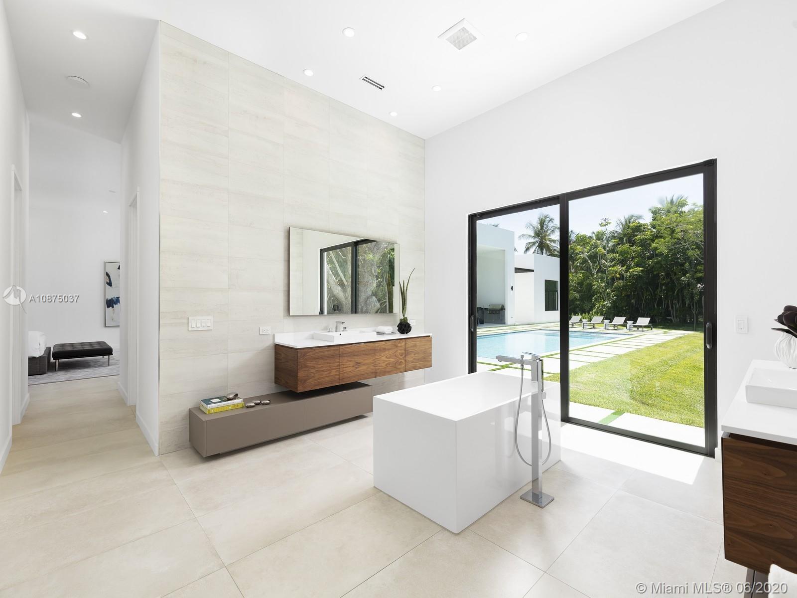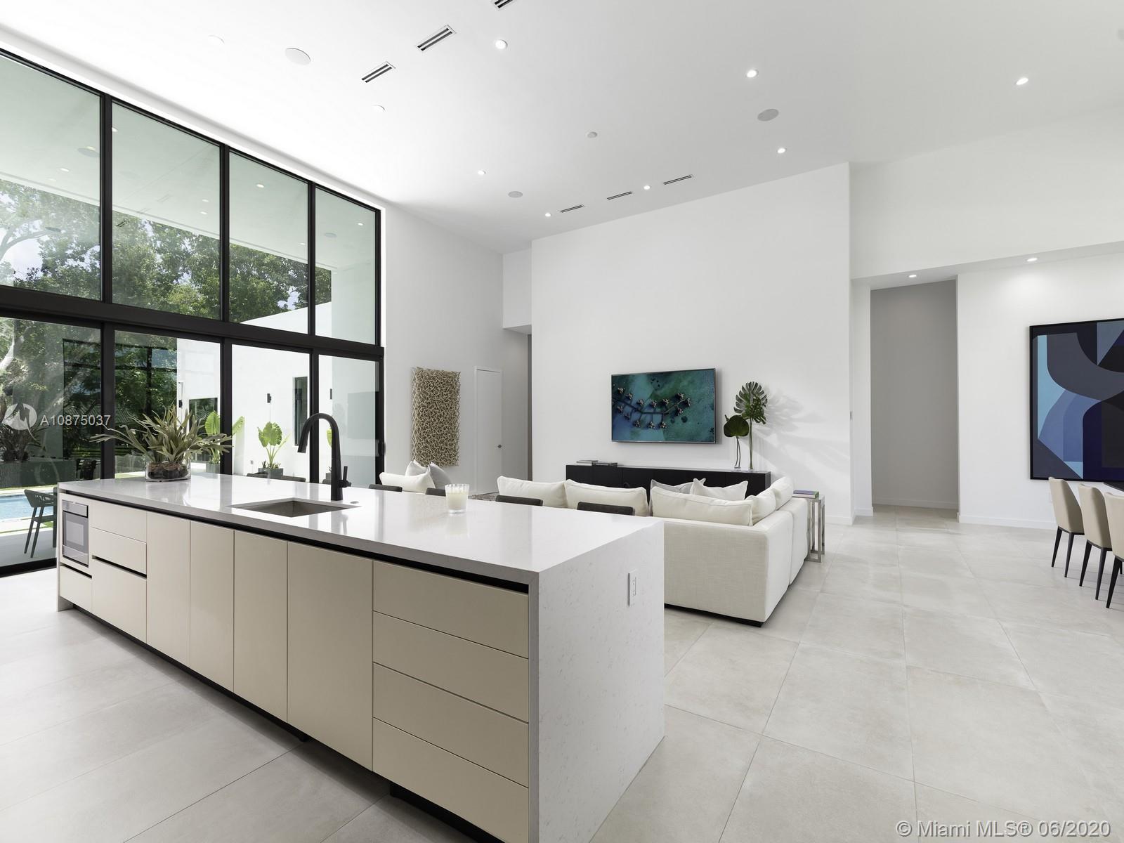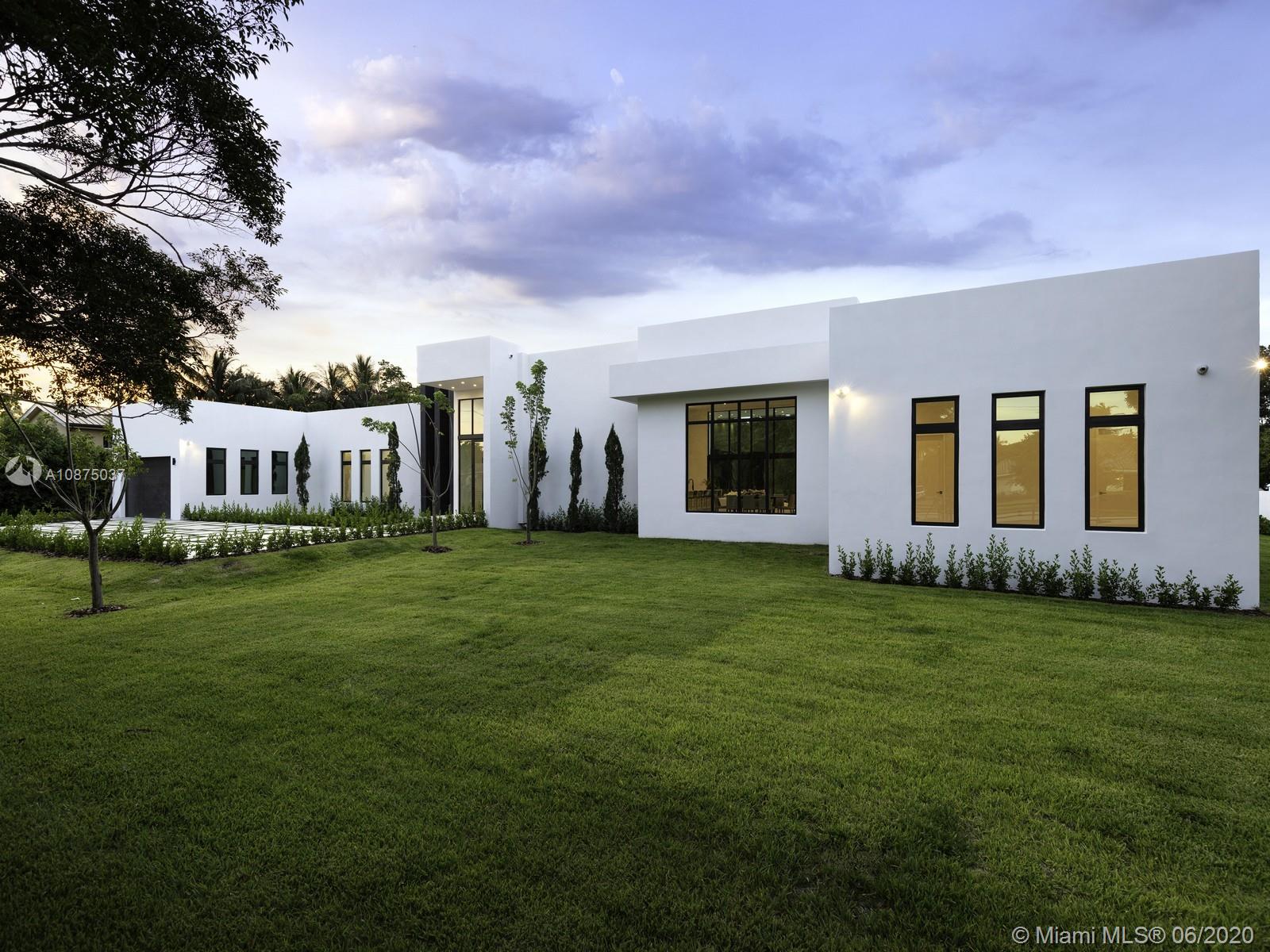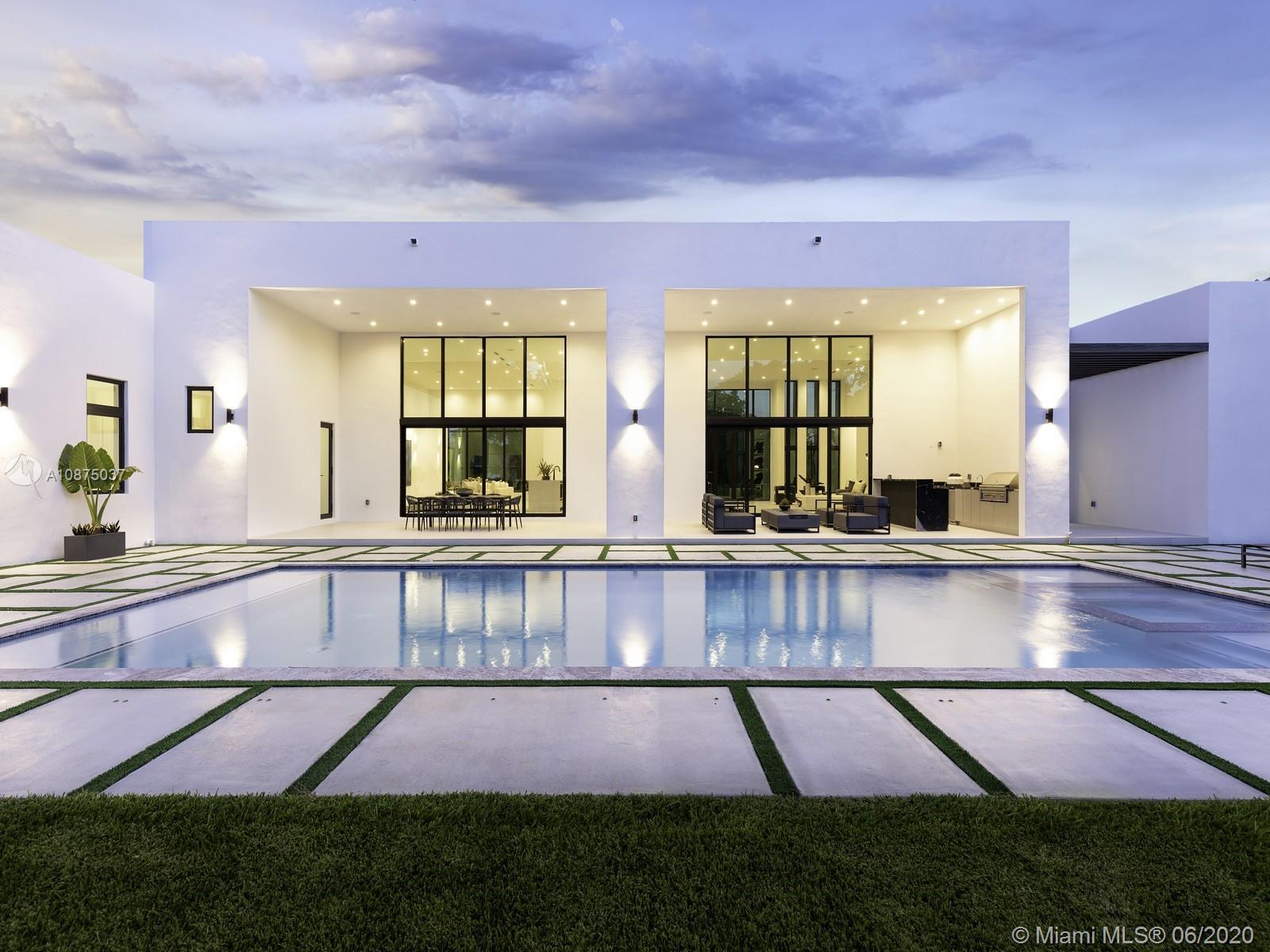 Brand-New One-story Modern Estate built with the finest finishes. Welcomed by enormous windows and doors offering plenty of natural light making this floorplan spectacular. Modern Italian Kitchen cabinets, Quartz counters, Wolf and SubZero Appliances. Picture-perfect entertaining Kitchen and Family room area while enjoying flow through yard views. Estate offers 6 en-suite bedrooms with finished closets, den/office space. Lavish master Suite with spa like bath, double vanities and water closets, floating tub, and grand shower. Find an extravagant resort style pool with expansive green grounds. LED Lighting and porcelain floors throughout. Other features: high ceilings, large covered terrace, summer kitchen, 2 car garage. Premier Pinecrest Schools nearby. 1-year builder’s warranty.
