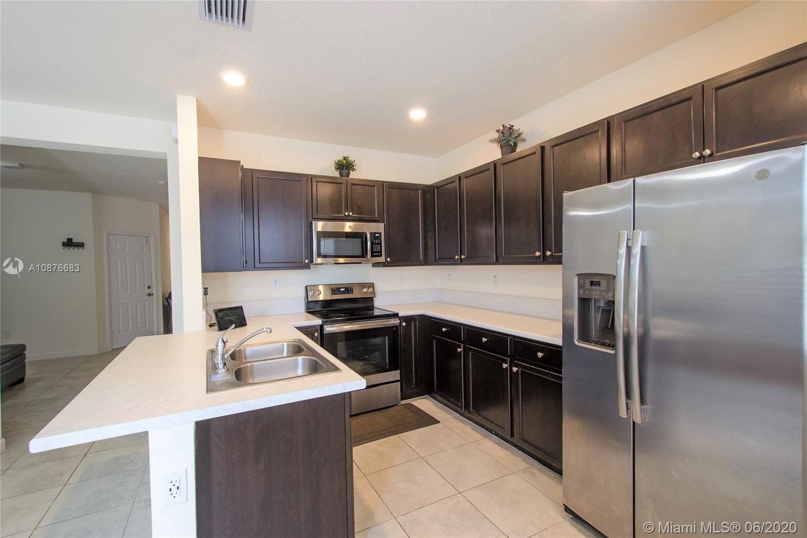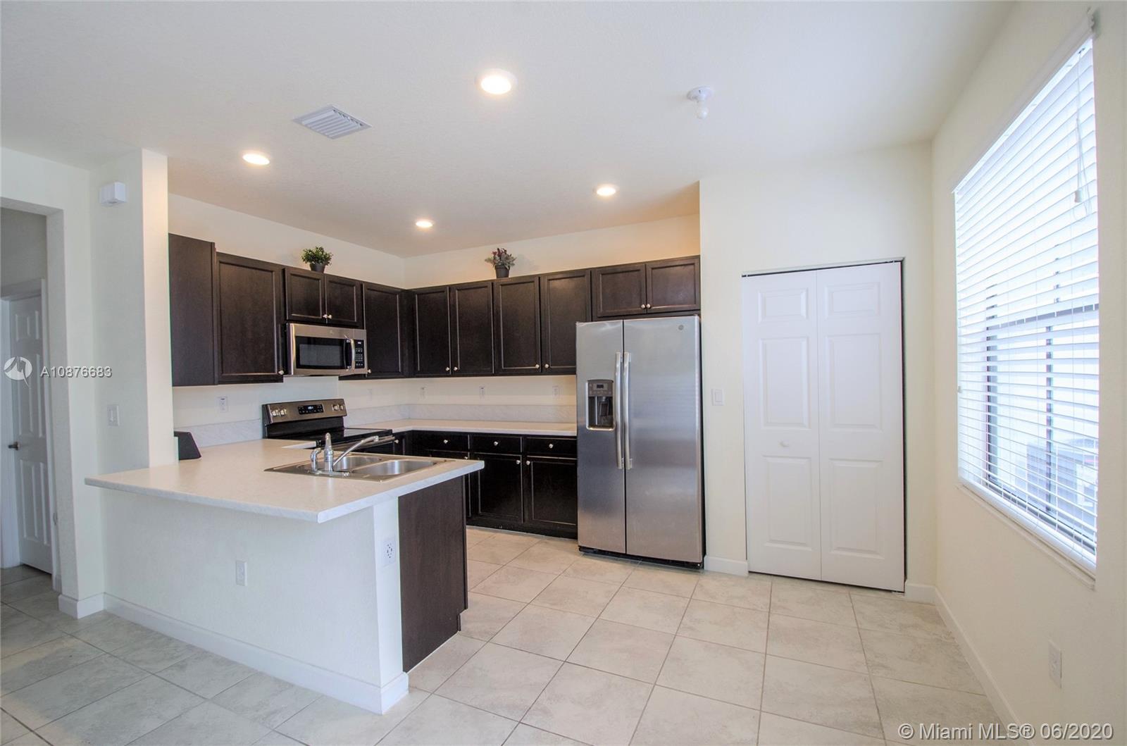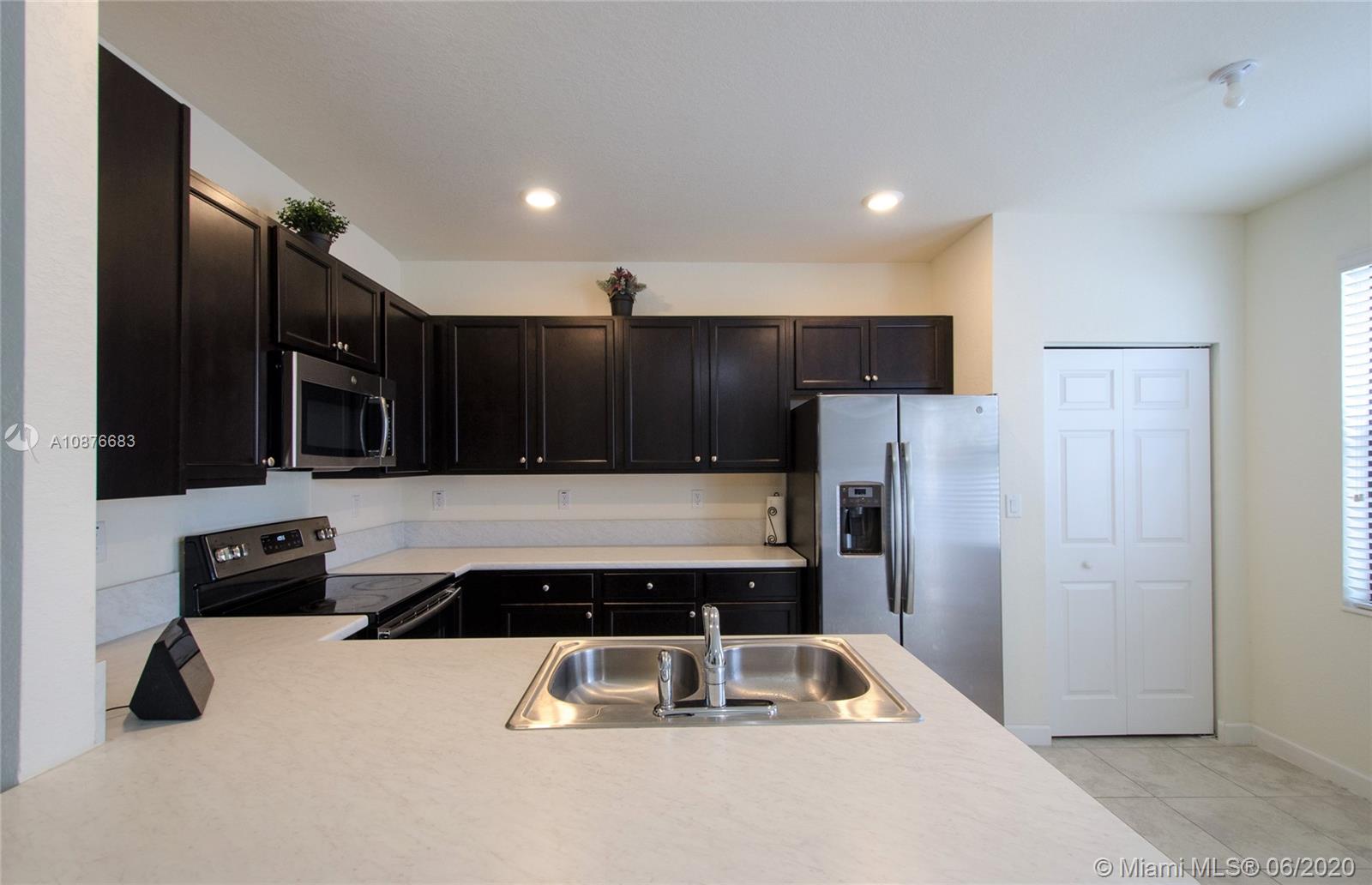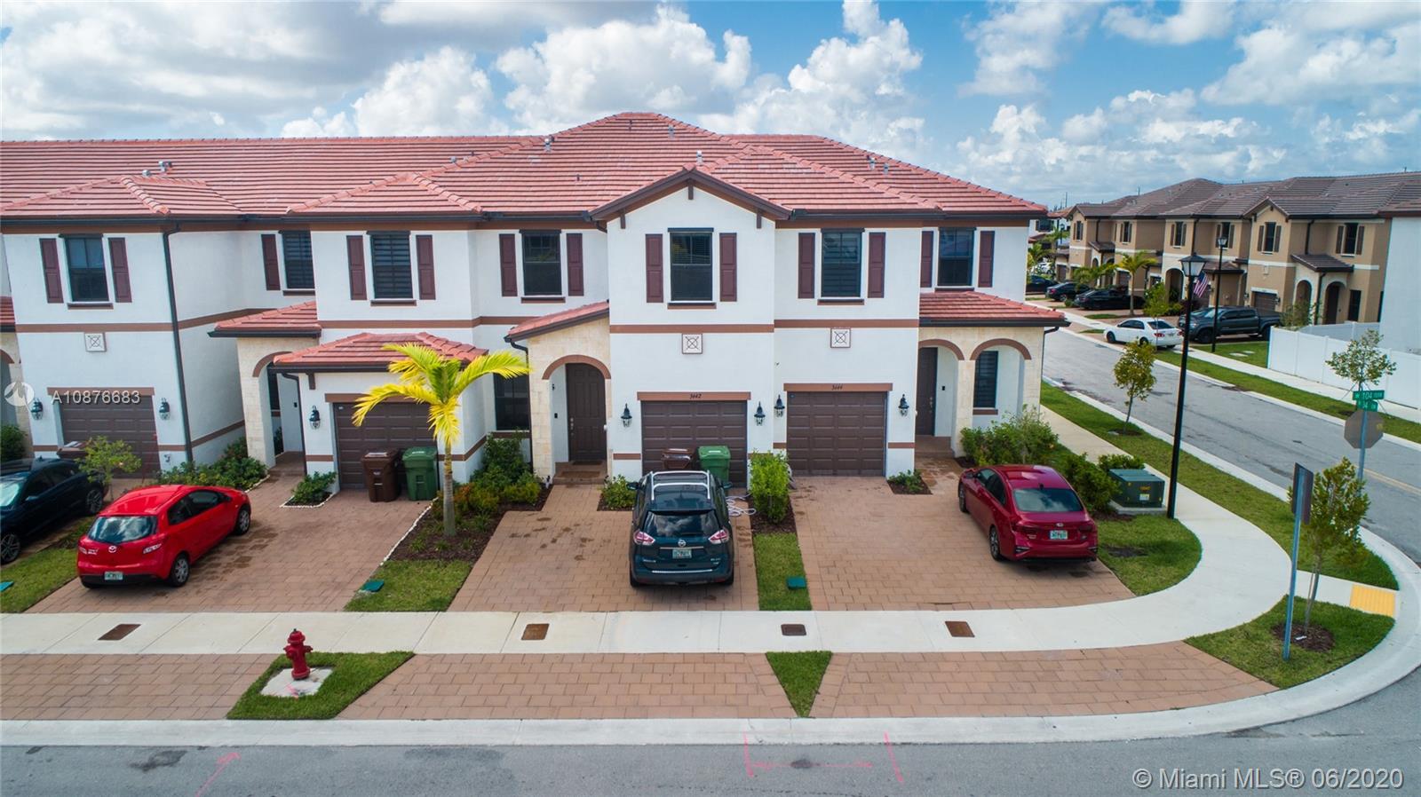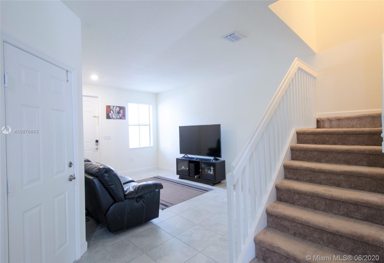 Price to sell! One of the biggest townhouses in this new gated community. This home features 4 bedrooms, 2.5 baths in 1,914 Sqf with a modern kitchen, stainless steel appliances, double-door refrigerator, easy-care mica countertop. Spacious Master Bedroom. Modern tile downstairs and carpet upstairs. Lots of natural light. Full size Washer & Dryer. One car garage and parking for up to 3 more cars on the driveway. Nice paved patio for outdoor entertainment. Residents will enjoy a great lakefront Clubhouse with children's playground, resort-style pool and state of the art gym. Excellent location, close to Miami Lakes’s excellent schools, shopping, restaurants and easy access to the main highways. Close to what pretends to be the largest shopping mall in North America, American Dream Mall.