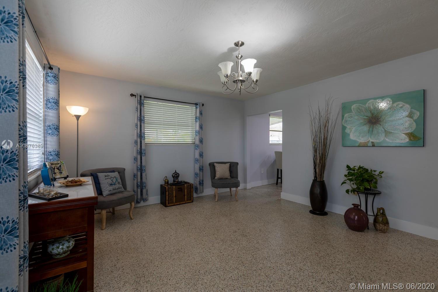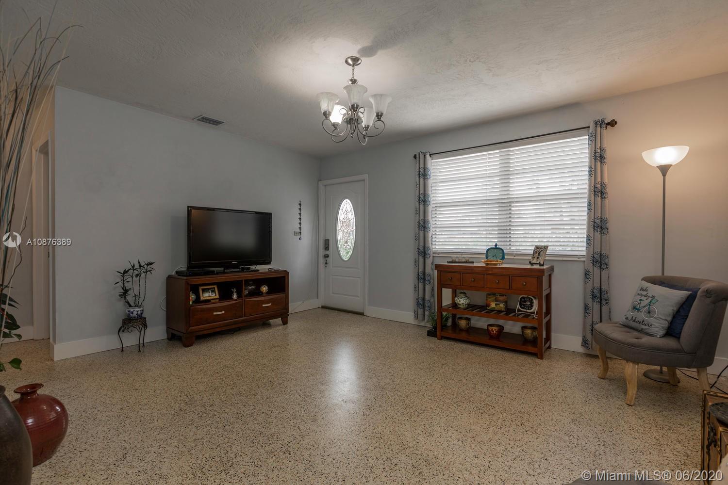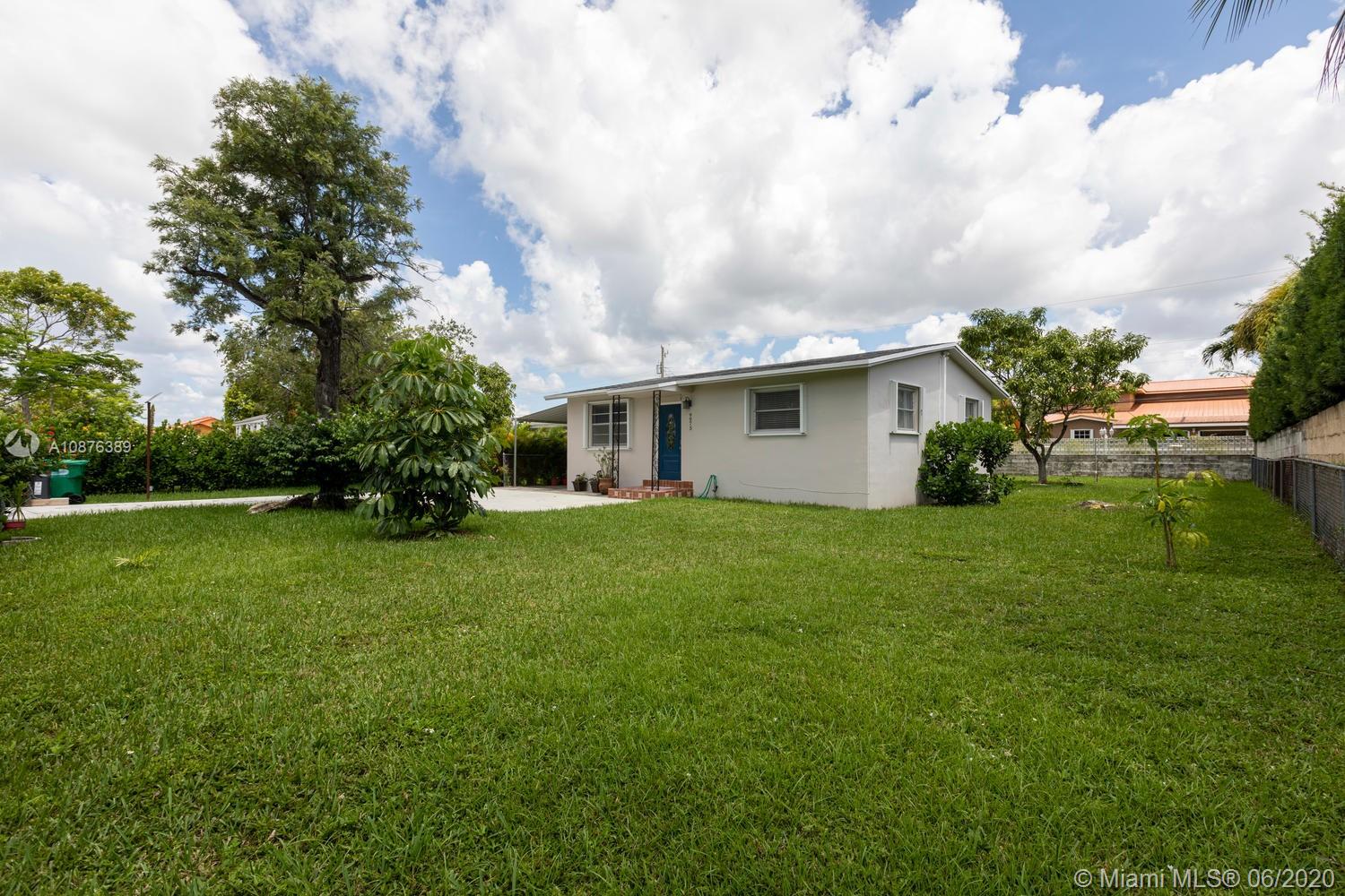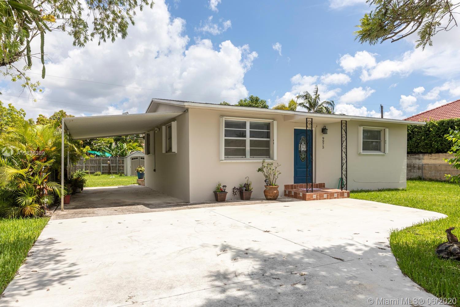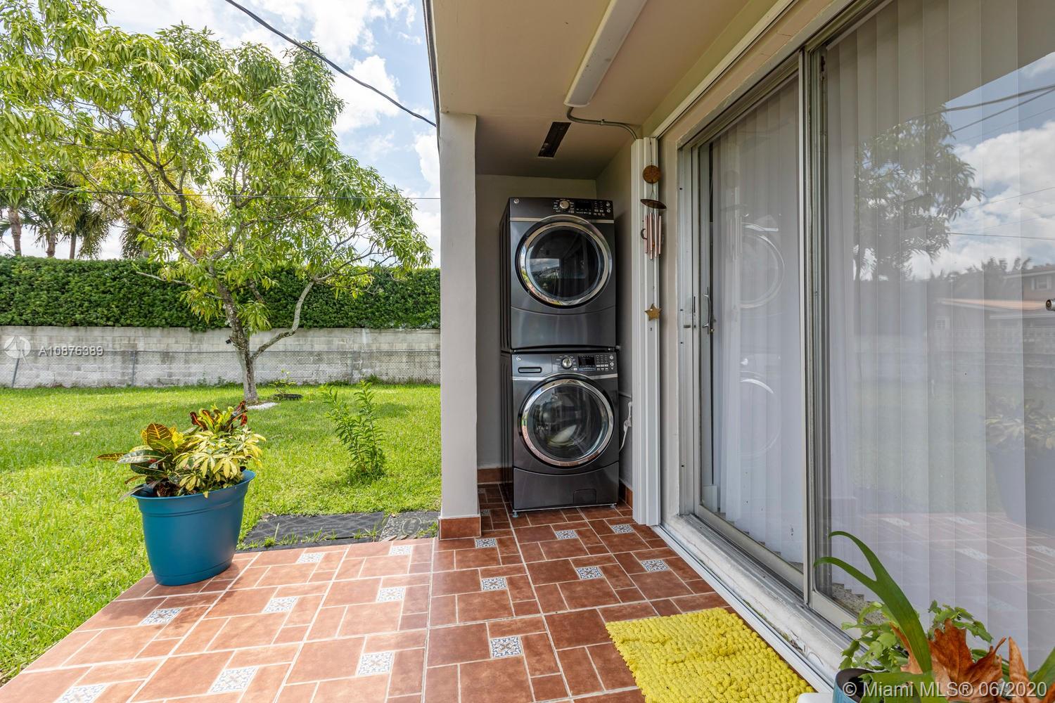 1-story single family home in Doral AND NO association! This lovingly cared for home further boasts: Permitted accordions, driveway, privacy gate, solar motor system and expanded back porch; upgraded 5-1/2 baseboards; NEW: window treatments, kitchen cabinets with quartz countertop with glass and ceramic tiled backsplash, stainless steel appliances (like the 5 burner range with warmer, microwave/convection oven and top/bottom refrigerator), disposal, washer and dryer, and upgraded kitchen lighting; freshly painted interior and exterior; also NEW: bathroom vanity, mirror, lighting fixture and more; NO carpet (all terrazzo floors); very large yard with driveway and very deep carport accommodates 2 vehicles. Home is in move in condition and centrally located to everything!