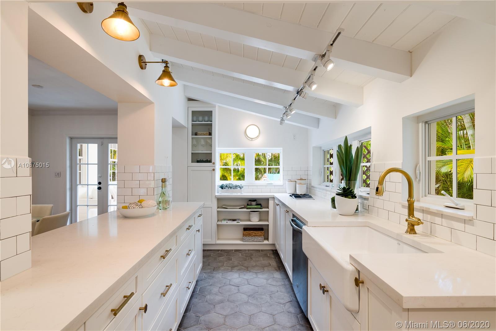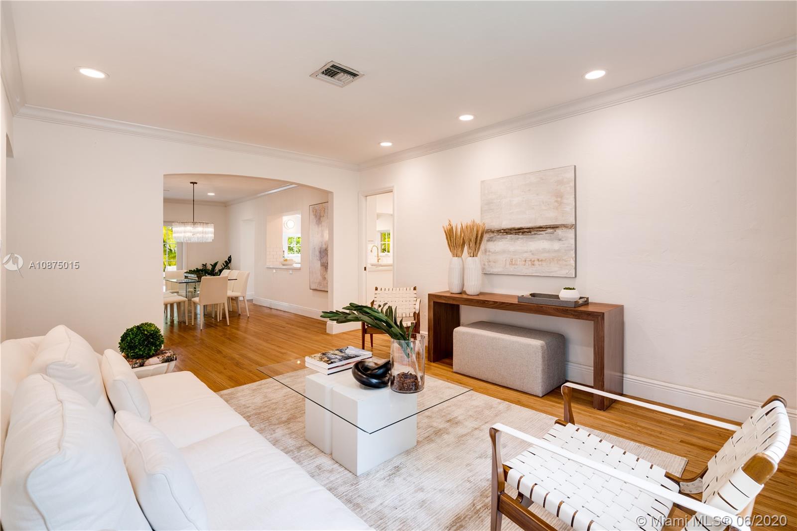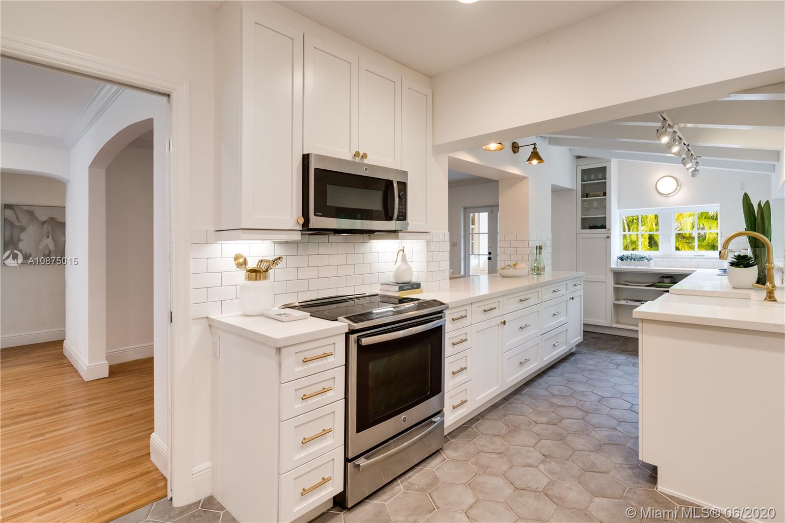 Absolutely charming one-story, 3 bedroom/3 bath home on quiet, low traffic Coral Gables street is now available for some lucky new owner. The beautiful kitchen was remodeled by the current owners and is a showplace with its sleek cabinets, white quartz counter-tops and stainless-steel appliances. Separate family room is perfect for snuggling with a bowl of popcorn and a good movie. Updated bath and large walk-in closet are ideal for this sophisticated and restful master bedroom. There is hurricane protection for the entire home. Inviting covered back porch overlooks an easy-to-maintain backyard. A Very Special Home.