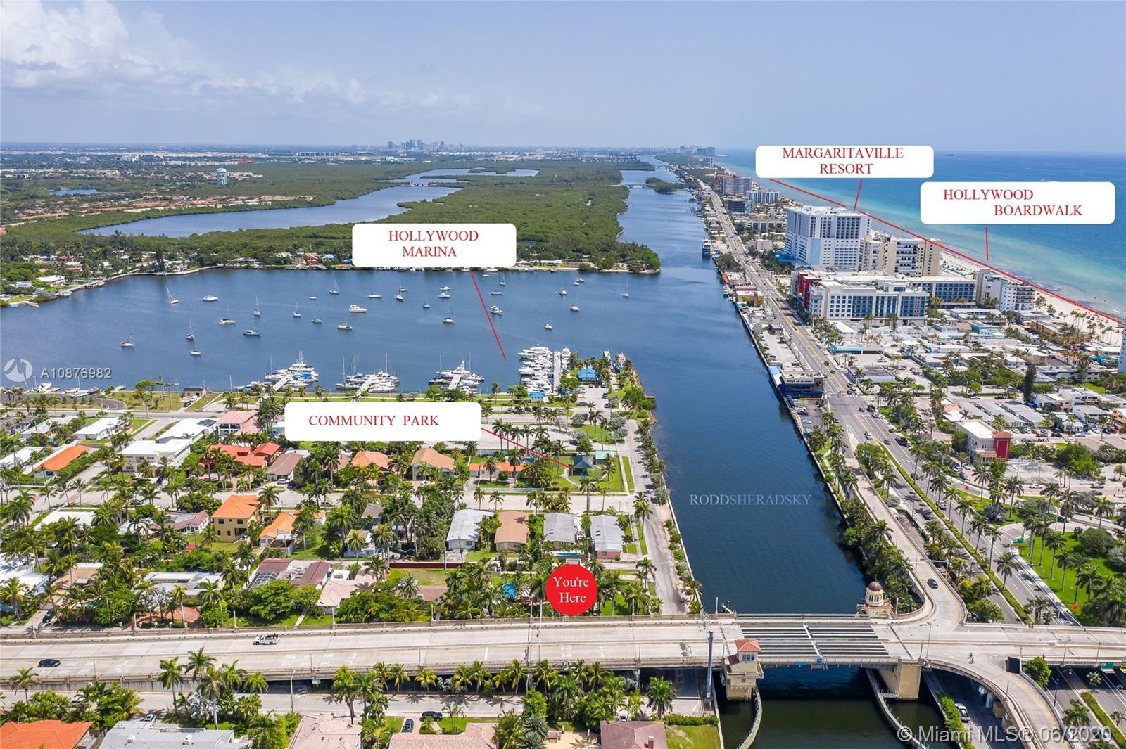 South Florida's best hidden affordable gem! ** one of the most unique homes along Intercoastal, corner half-acre lot = 3 times normal lot in the area. Mixed tranquil water views/entertainment options. Seller’s investments show some upgrades-Kitchen, to modern bathroom, front impact window, fireplace, plantation shutters, wood/terrazzo floors, crown moldings, newer equipment, newer plumbing and electrical. Boasts separate entry in-law guest suite w/ kitchen accessible from private entry, north wing. Enjoy family barbecues surrounding the expansive backyard pool patio deck area, tropical gardens, roof sundeck views of the waterfront coast. Other bonuses- walk to Hollywood beach, shoppes, Margaritaville, fishing within a few steps reach, community playground area within a block.
