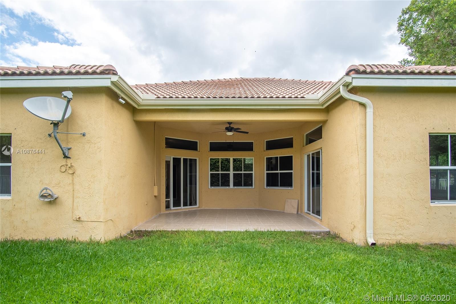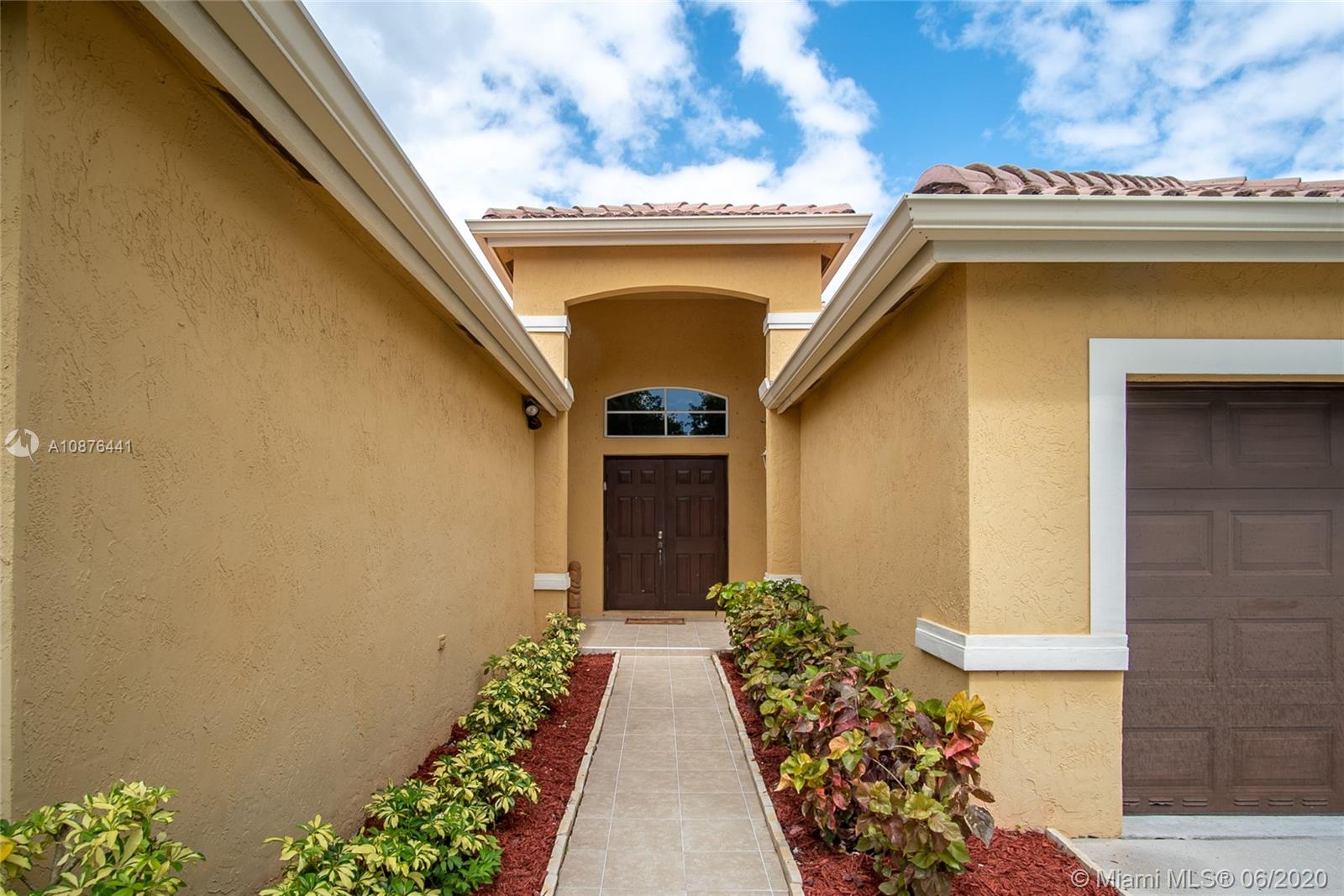 This comfortably spacious split floor plan 4 bed 2.5 bath 2 car garage,corner lot home sits across from a peaceful park in the desirable gated community of Savanna in Weston. Master suite includes lrg walkn closet, roman tub, separate frameless shwr, dual sinks. Stainless-steel kitchen appliances, solar power water heater, epoxy garage floor, paved walkway & rear covered patio. Large yard w/mature foliage. Exceptional amenities include clubhouse, resort pool & water-slide. Residents also enjoy access to miniature golf course, multi-purpose field, roller hockey rink, playground, & basketball court. Top rated schools & shopping/dining are all just a few minutes away. Everything is here! This happy home is filled with wonderful memories & is now ready for YOUR family to make it their own.