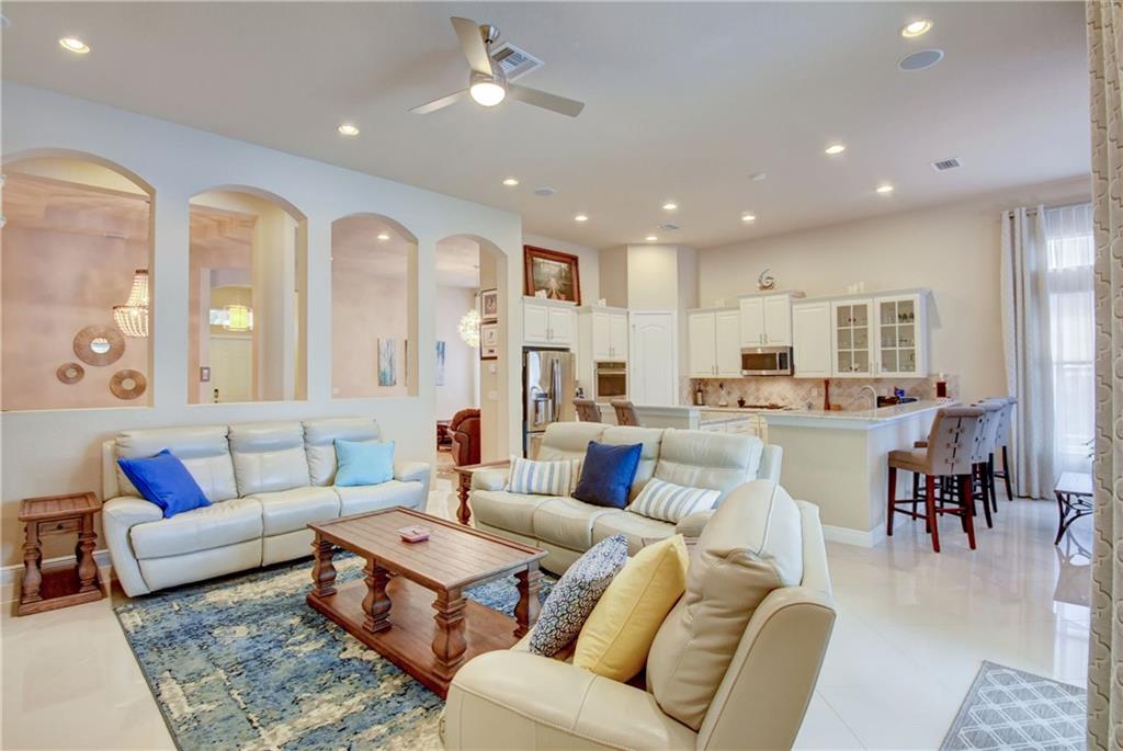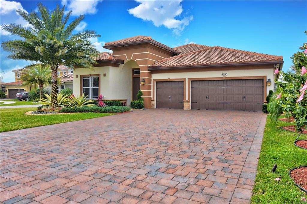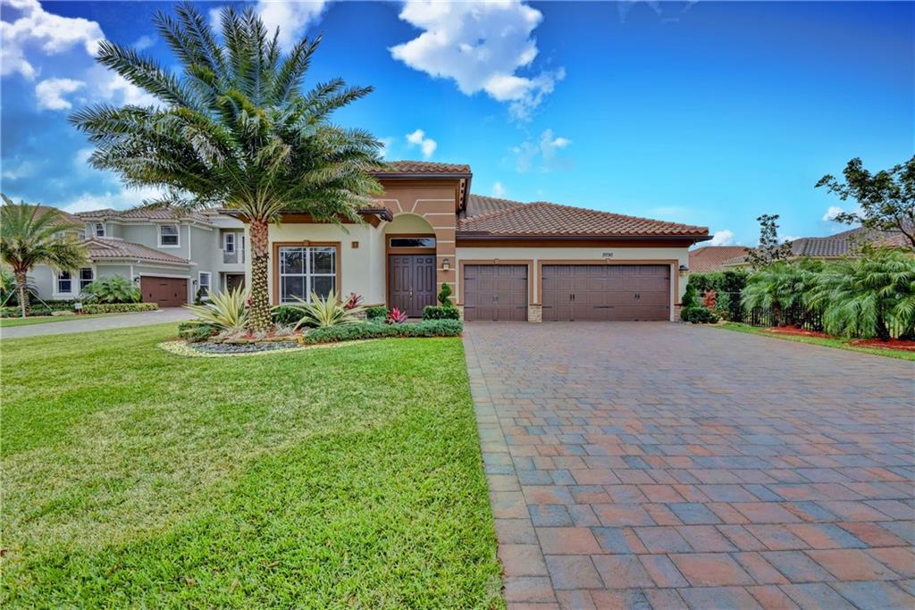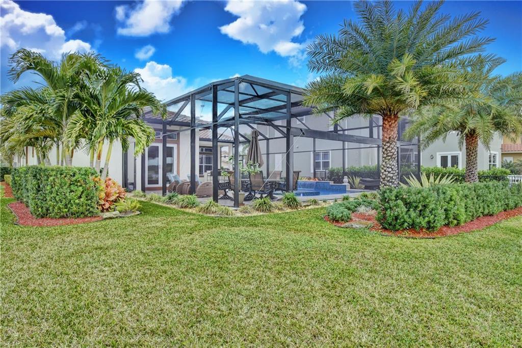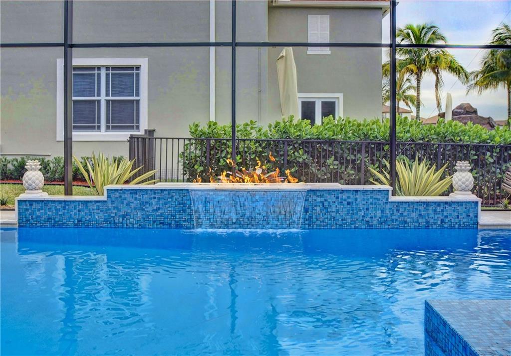 5 Bedroom, 4 Bath, 3 car garage on wide water with incredible view! Over $200K in upgrades. Hurricane impact windows & doors. Whole house generator also for pool. Extended screened in patio with summer kitchen, gas heated salt water chlorinated pool, built in fire pit, water features, & magnificent spa. Picture window screen enclosure for beautiful unobstructed lake views. New flooring in all bedrooms. Custom closets. Hunter Douglas window treatments. Customizable Vitex security system. Pre-wired for whole house surround sound. French doors. Reverse osmosis drinking water system. Air purifier system. Gas cook top, tankless water heater, dryer, & outside grill hookup. Exterior landscape lighting. Extended driveway. Cul-de-Sac Gated community with lots of amenities.