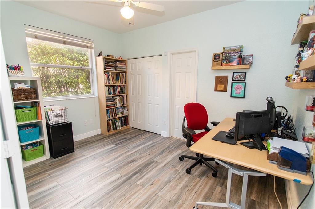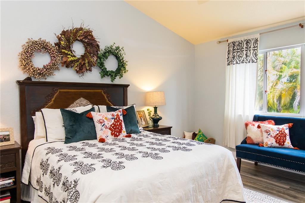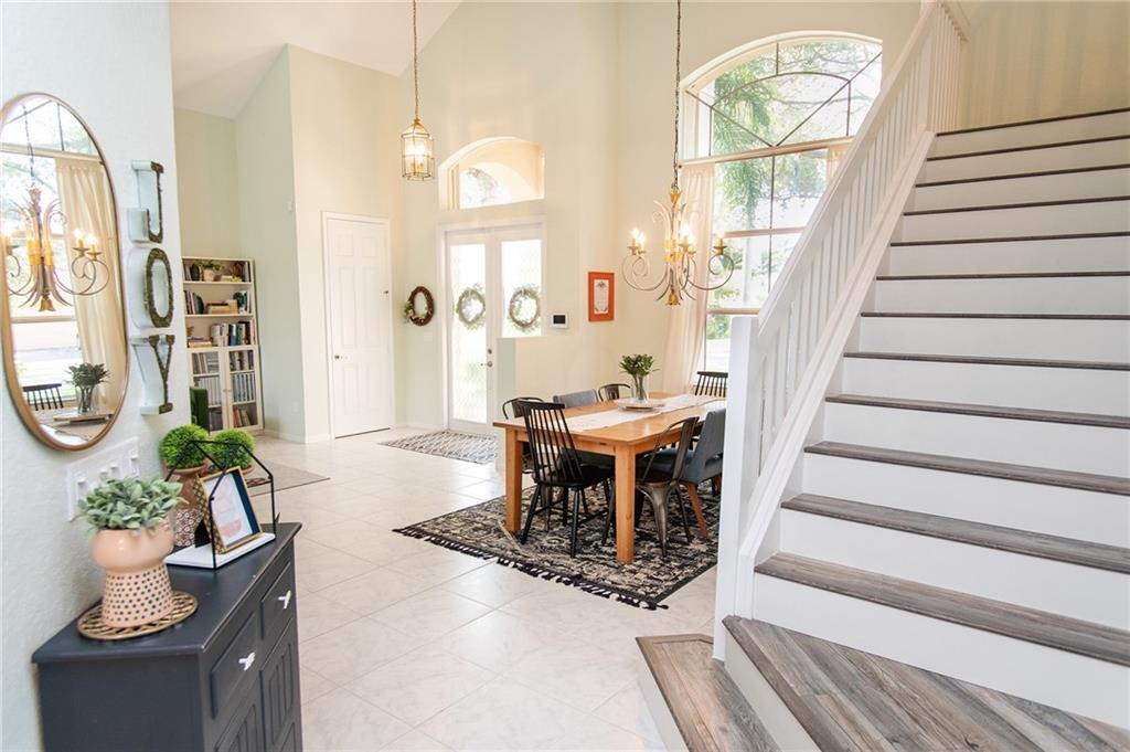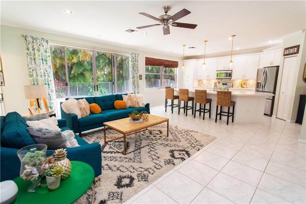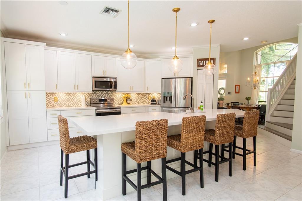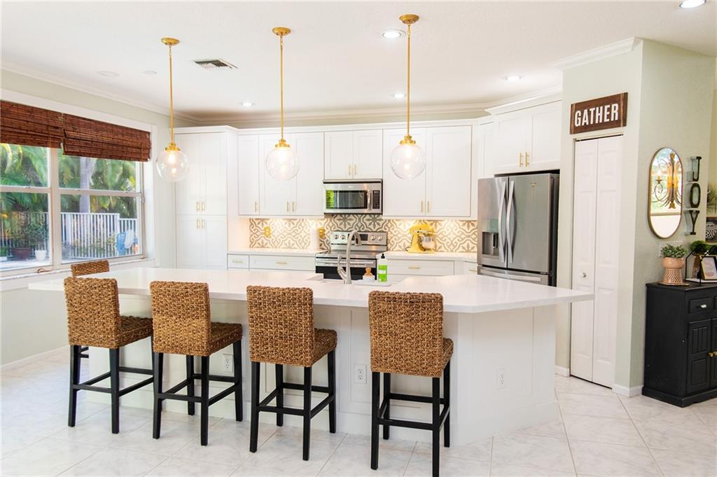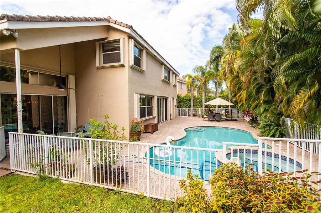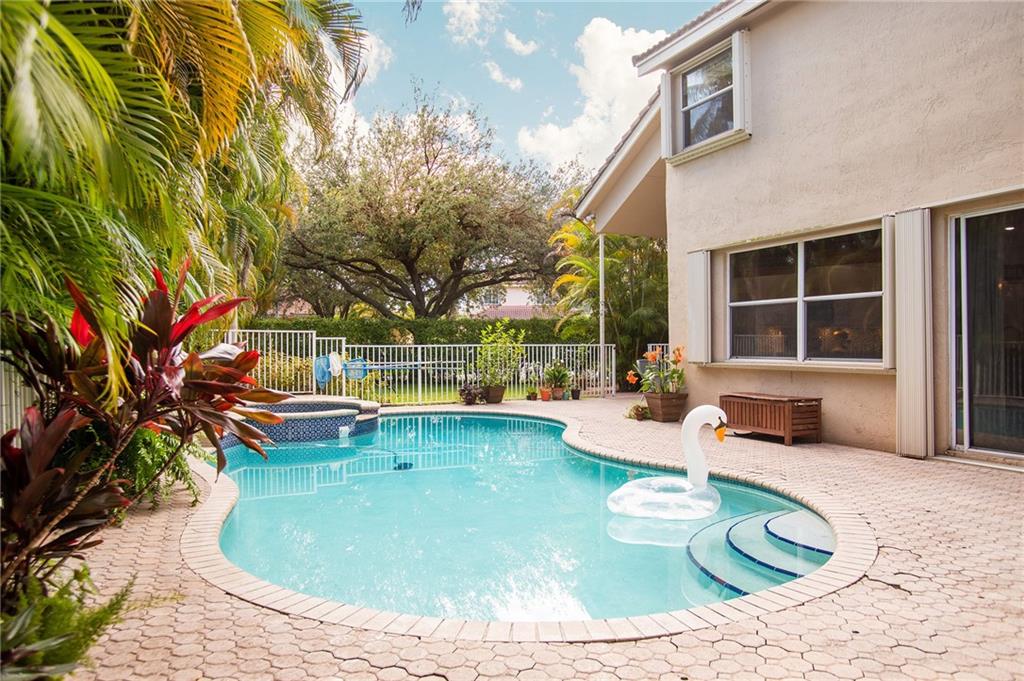 Finest Yardley Estates pool home offers privacy, lifestyle, open ample spaces & comfort. Enter double glass doors, to light-filled generous formal living & dining rooms viewing private pool/spa/yard. High volume ceilings pops the impressive grand staircase with new wide plank grey/beige laminate flooring throughout 2nd-floor. White Birchwood Shaker soft-close cabinets with pull out drawers, trash drawer & 2 pantries, featuring hottest "new look" brass hand pulls, imported Moroccan tile backsplash, huge quartz counter prep space w/under-mount farm sink, finished with matching brass accent glass pendant lighting. Stainless steel appliances. Spacious family room leads to pool/yard, true bedroom or office with full cabana bath & laundry room nearby. Private lot has side yard with rock firepit.