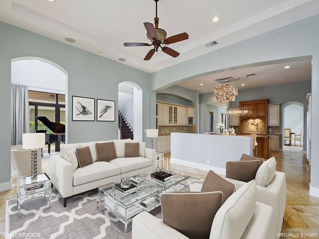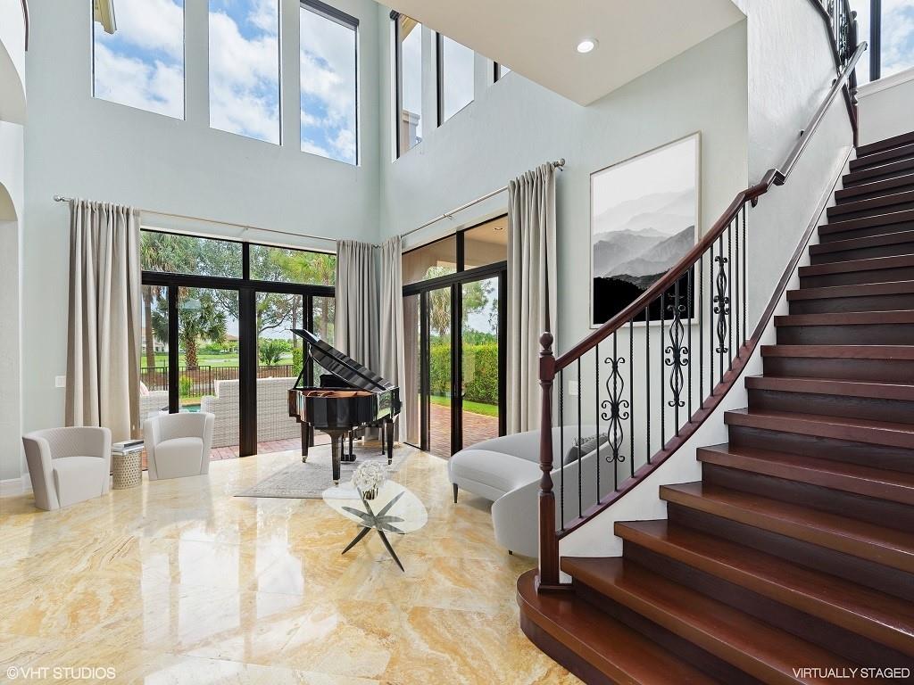 PRICE REDUCED!! ELEGANT & EXPANDED SANSAVINO GEM MAJESTICALLY SITUATED OVERLOOKING PG&CC's REMARKABLE GOLF COURSE. STUNNING LAKE VIEWS. DRAMATIC DOUBLE DOOR ENTRY FOYER WELCOMES YOU INTO THE FORMAL LR W/ 30FT VAULTED CEILINGS. FINELY APPOINTED KITCHEN BOASTS HIGH END APPLIANCES AND A STATE OF THE ART KINETICO WATER SOFTENING SYSTEM ADJOINING OVERSIZED FAMILY ROOM LEADING TO MAGNIFICENT POOL DECK WITH SPA. 1ST FLOOR INCLUDES FULL GUEST SUITE & SUPERLATIVE MARBLE FLOORING. SECOND FLOOR UNIQUELY REMODELED TO INCLUDE A CENTRALIZED FAMILY ROOM/LOUNGE, TRIPLE SPLIT BEDR PLAN, OVERSIZED MASTER SUITE AND SPECTACULAR VIEWS FROM A 200 SQ FT TERRACE! IMPACT WINDOWS/DOORS & MOTORIZED SUN SCREENS. GUARD GATED COMMUNITY: LUXURIOUS CLUBHOUSE W/ TENNIS, GOLF, POOL, GYM, RESTAURANT & SOCIAL ACTIVITIES!
