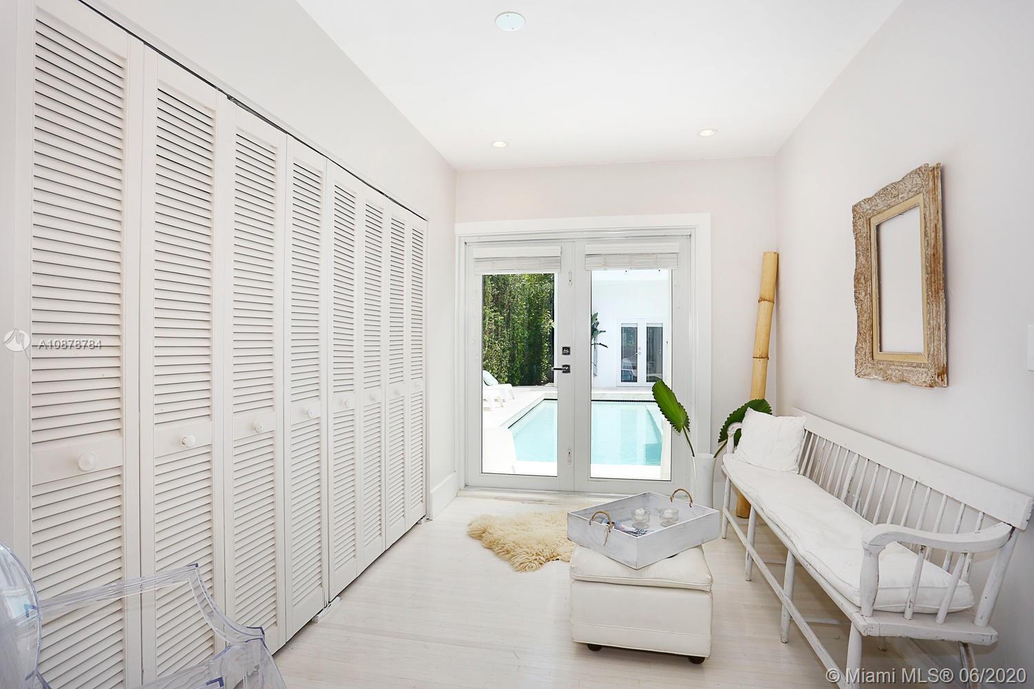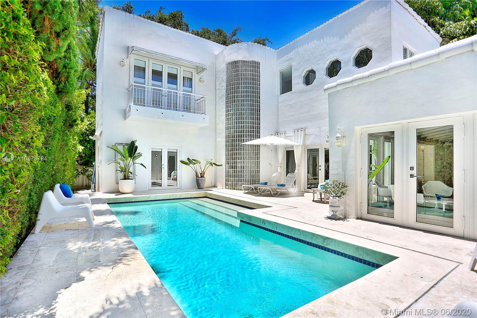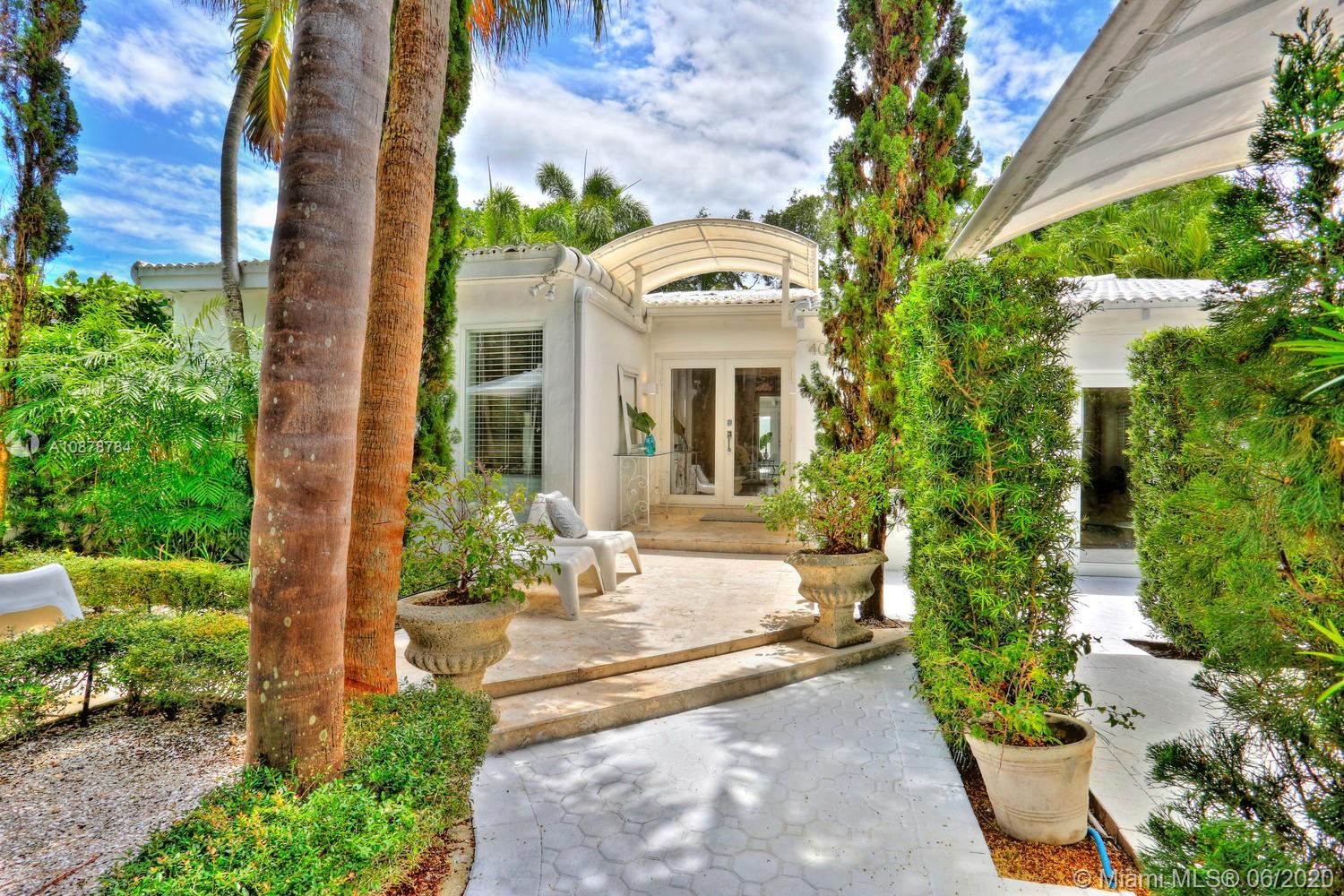 Ultra-private & serene retreat on a quiet tree-lined street in prime South Grove location. Stunning, light-filled living spaces w/ high ceilings & white-washed oak flooring. French doors throughout, overlook tranquil pool & lush tropical gardens & terraces that surround the home. A white color-palette provides the ideal backdrop for art collections. Renovated, custom kitchen opens to adjacent breakfast area. Formal living, dining & family rooms as well as two master suites (one up & one down) each w/ private sitting areas and luxurious baths w/ soaking tubs. Gated, covered parking for 2 cars + guest parking for 3+ cars. Walk to the Grove village center’s, boutiques, cafes and bayfront parks & marinas. Also just minutes to downtown Coral Gables & South Miami world-class shopping & dining.