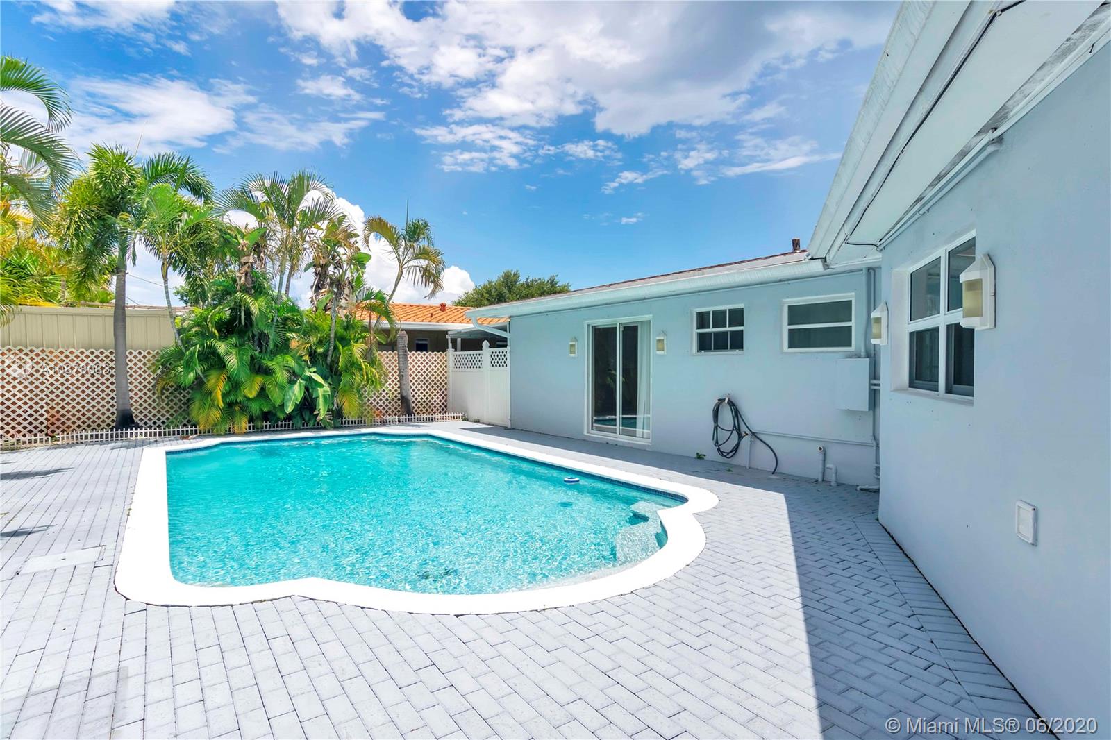 MUST SEE Large Pool Home with over 2400 SF. This beautiful home features 4 Bedrooms, 3.5 Baths. Large Updated Kitchen with breakfast seating area, perfect for entertaining, granite countertops and Stainless Steel appliances. Two master bedrooms. Walk in closets. Two full baths have Marble, Tile Wood and Granite Finishes. Tile and Wood Floors throughout, Spacious living area features living room & Family Room with Wet Bar Leads out to the large Pool area w/Service Bar perfect for entertaining. Laundry room. Lots of closet space. Fully Fenced in Yard, French Doors, Hurricane Panels. Oversized paver driveway perfect to park RV, boat, large trucks or other entertainment vehicles, Freshly Painted Exterior. Conveniently located on the East Side and not far from the beach.