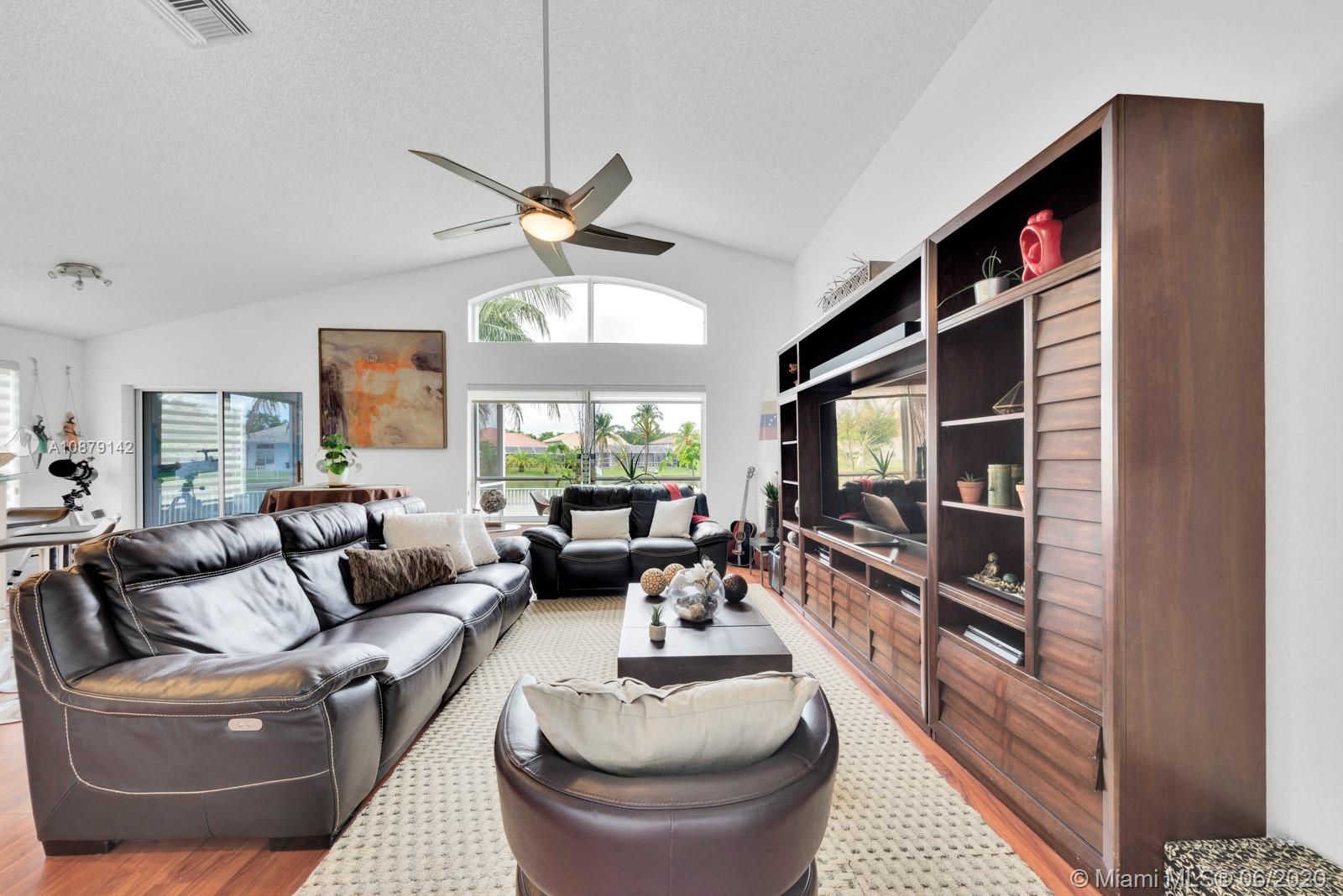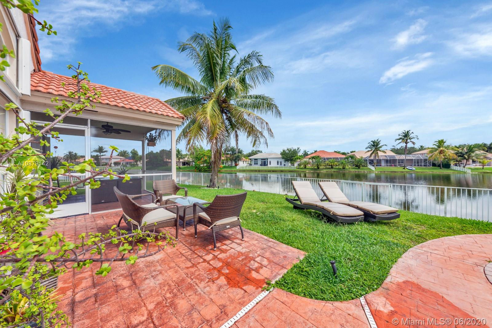 Back on the market. Clean inspection report. MUST SEE! Private cul-de-sac home located in the highly sought after Pembroke Falls gated community. This gorgeous 4b/2.5b waterfront home lies on an oversized lot with screened enclosed patio, fenced yard & salt water pool. Upgrades abound throughout. Kitchen features 42" wood cabinets, corian counters and stainless appliances. Tile floors in spacious social areas and laminate floors in bedrooms. Huge main level Master Bedroom with exceptional water views. Ensuite bath w/ dual sink vanity, separate tub and walk-in shower. Resort Style Community with access to first-class amenities including fitness center, clubhouse,pool and tennis court. HOA includes cable, security, internet and more. Accordion shutters.Close to highway. Excellent Schools!