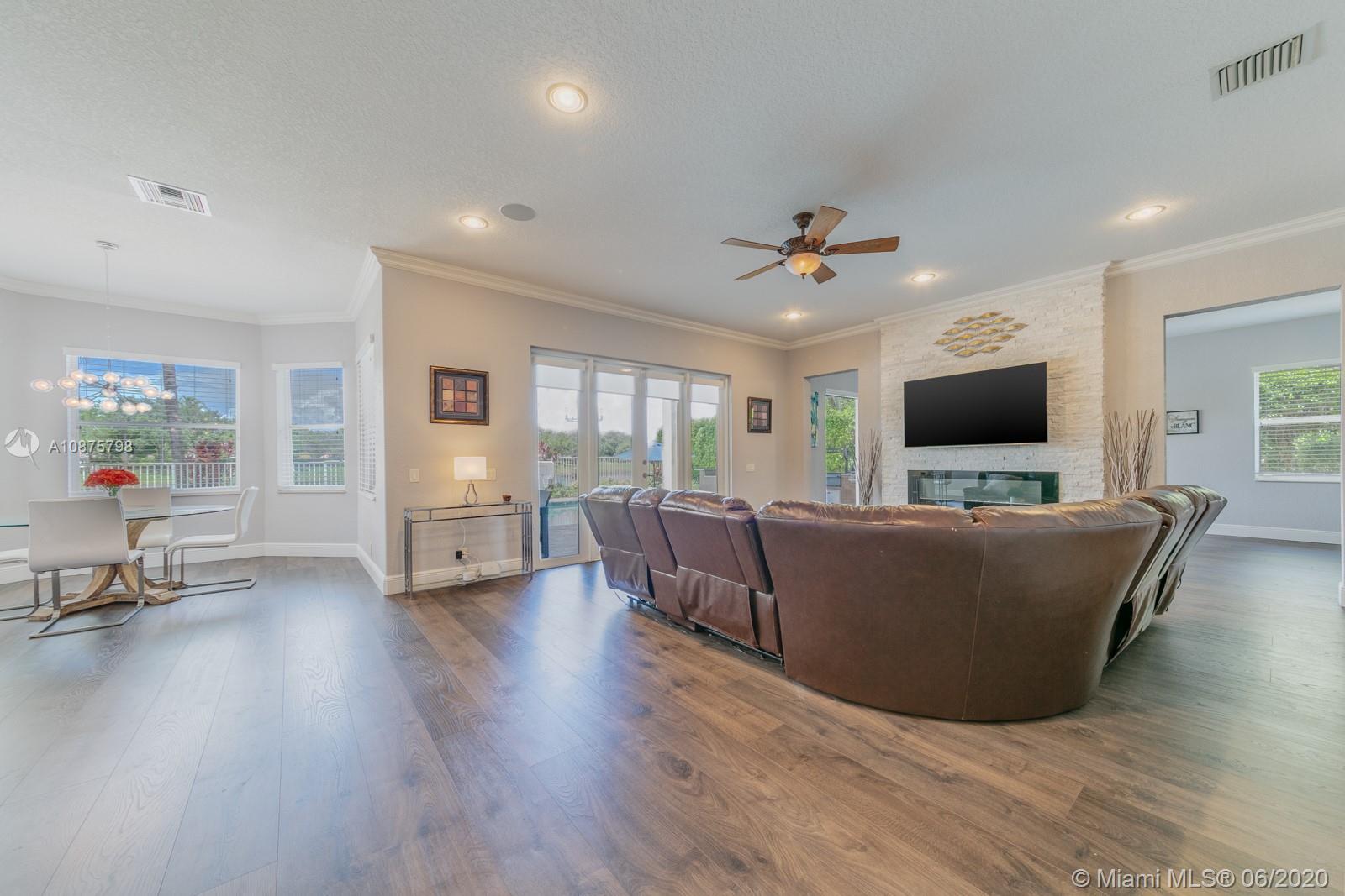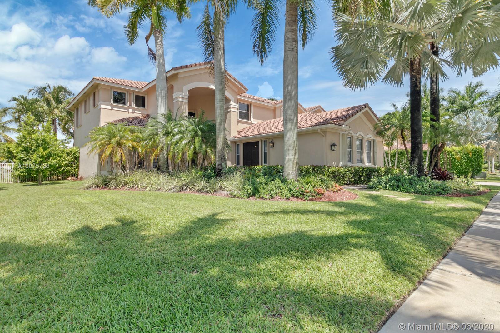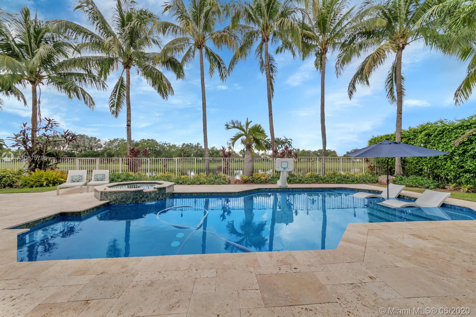 WoW! Big, Bold & Beautiful! Tastefully updated with a contemporary flair, this lakefront home is perfect for enjoying the Florida lifestyle. 5 bedrooms, 5.5 bathrooms + office, 20x14 playroom and loft spans 5365 sq ft (inclusive of 1/1 guest house). Grand entry with volume ceiling and elegant custom staircase welcome you home! Center island kitchen w/breakfast nook overlooks the family room. Luxurious master wing w/sitting area features 300 sq ft balcony allowing you to experience breathtaking sunsets from your private suite. The resort-style backyard features a travertine marble patio and summer kitchen w/built in grill+Argentinian BBQ, perfect for outdoor chef. Heated and salt freeform pool+spa is surrounded by lush tropical landscaping. Guard gated community w/pools, ballfields etc.