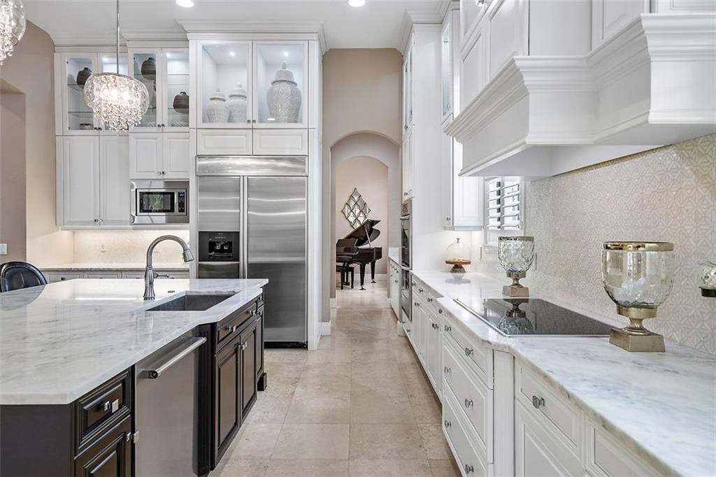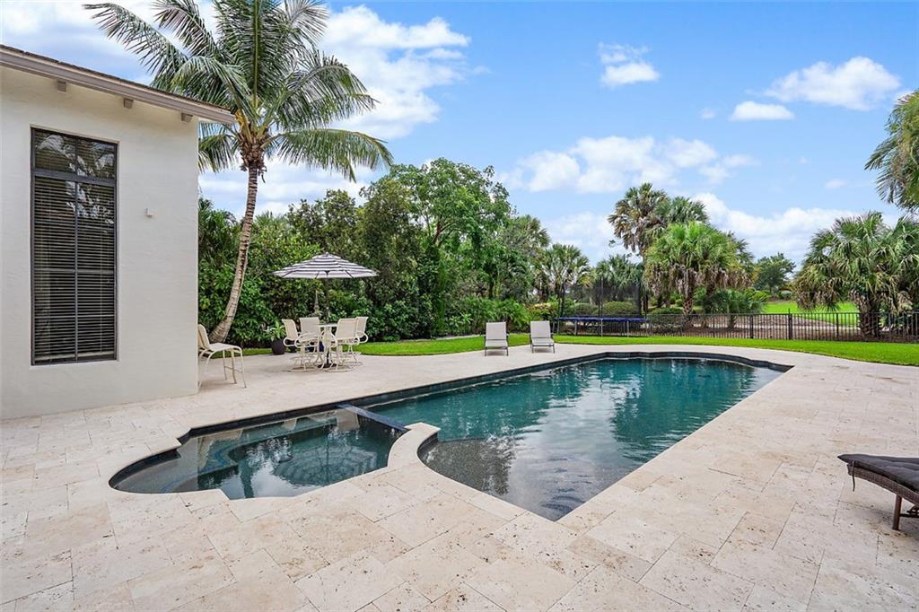 This totally Updated Beauty is the former home of New York Yankee Coach Joe Girardi & is situated on the golf course. Impressive curb appeal w/stack stone accents, perfectly manicured landscape, balconies, & a courtyard. The New Crisp White Kitchen is constructed with the finest materials, features a large island, & is truly gorgeous. Soaring ceilings & Expansive windows create a light/airy home & allow for serene views. The open great room/kitchen area offers a bar, glass doors leading to the loggia & is perfect for indoor/outdoor living. The luxurious master suite features a spa like bath. Newly remodeled pool & porch area w/a heated salt water pool, spa, marble pavers, under roof porches w/remote control roll up screens & beautiful frontage of the golf course. 5th bedroom is an office.