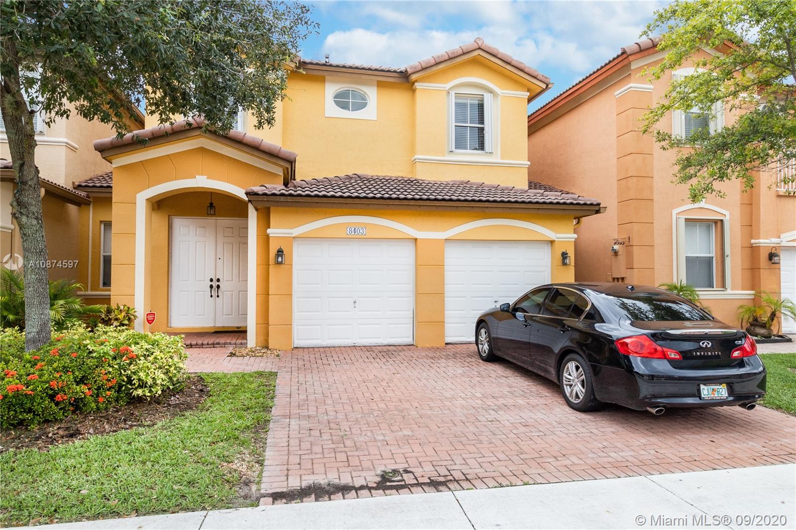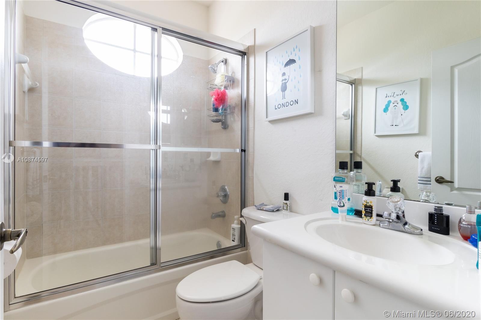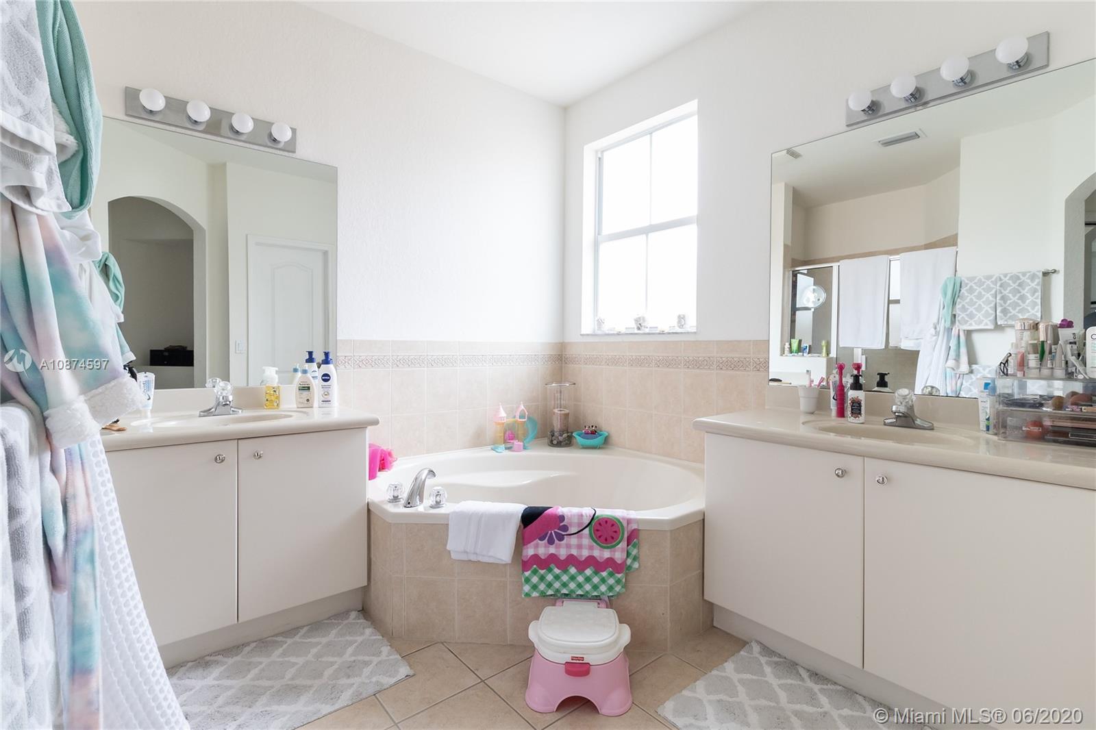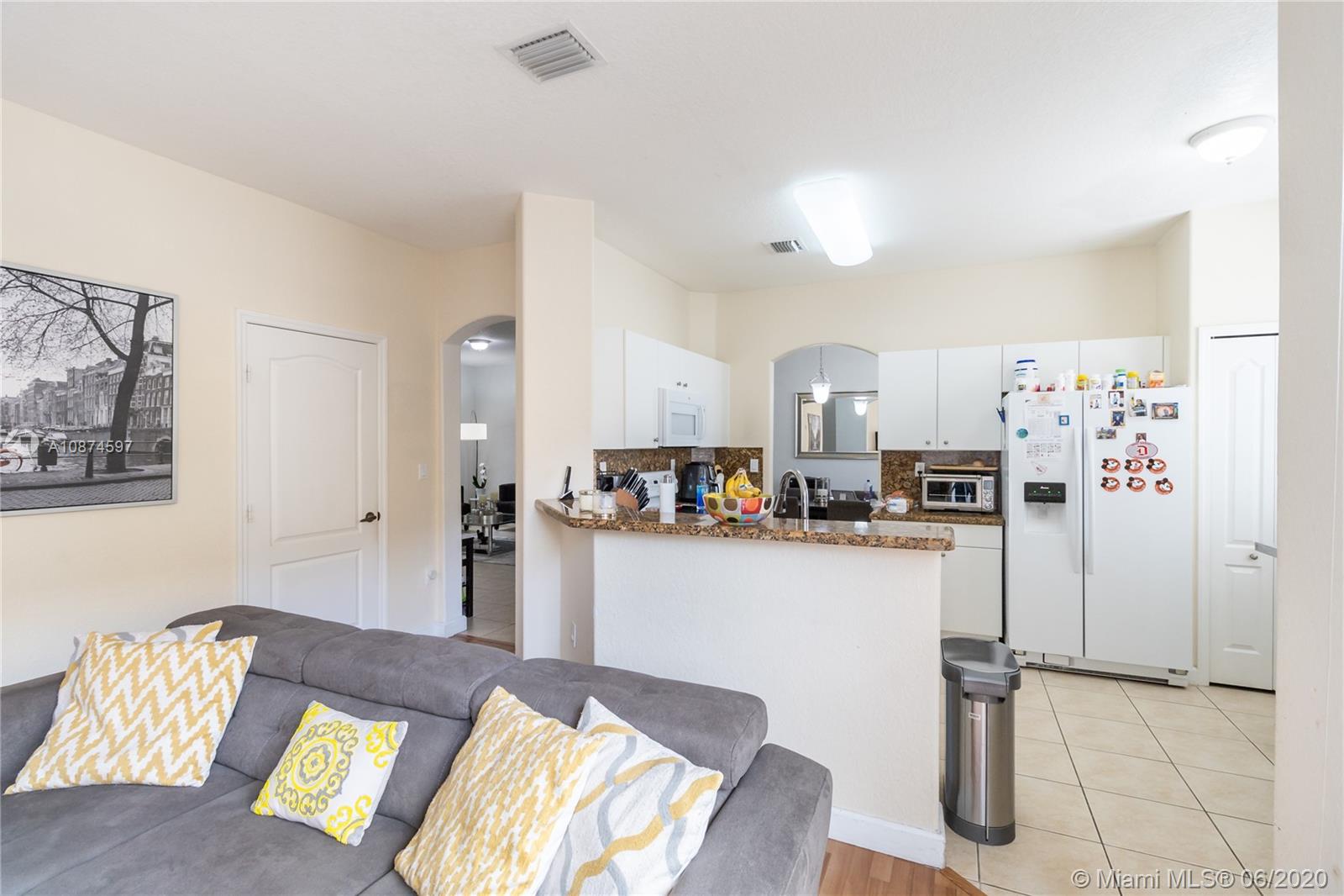 Welcome to the Islands of Doral. This 2-story Single-Family home is located just a couple blocks away from the famous Legacy Park. Centrally located to major expressways, transportation, restaurants, shops, groceries and health care facilities. Double entry door to open living area featuring high ceilings, ceramic 12 X 12 tiles and laminate wood flooring. Separate living room and dining room. Half bath for your guests. Open kitchen with granite countertops and white appliances. Full size washer/dryer in its own laundry room. Fenced backyard is the perfect place for gatherings and BBQ. Second story features 3-bedrooms and 2-bathrooms. Master bath features double sink, separate shower and roman soaking tub. 2-car garage with electric lift. A lovely home and great place to live. VERY NICE!