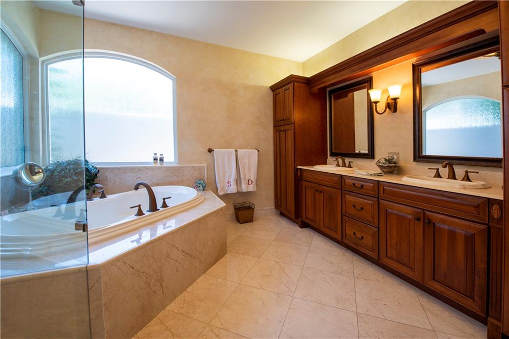 Your Maple Island Resort Awaits! This custom 1 story 5 bedroom/3-SPLIT (PLAYROOM OR WORKOUT ROOM) Office/3 full bath/3 car Garage home is elegantly remodeled! Completely New Kitchen w/gorgeous custom cabinets, Stainless Steel Appliances, Center Island, marble and granite counters, Remodeled Butler's Pantry w/Wine cooler, separate laundry room w/ sink+ folding counter. Master Bath w/Spa Tub. Newly installed wood look tile floors throughout main living areas, Wood Floors in All Bedrooms and Office, NEW IMPACT WINDOWS, DOORS and GARAGE DOORS. Newer Roof. This open floor plan views a Huge Beautifully landscaped 17,173 S/F Lot. Your Secluded tropical Paradise w/stunning salt water pool and spa, and oversized covered outdoor room w/custom outdoor gas fireplace. Newer AC units w/ UV light system