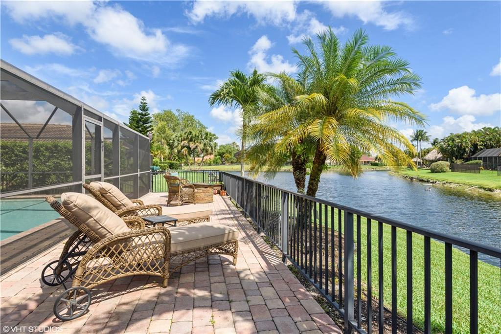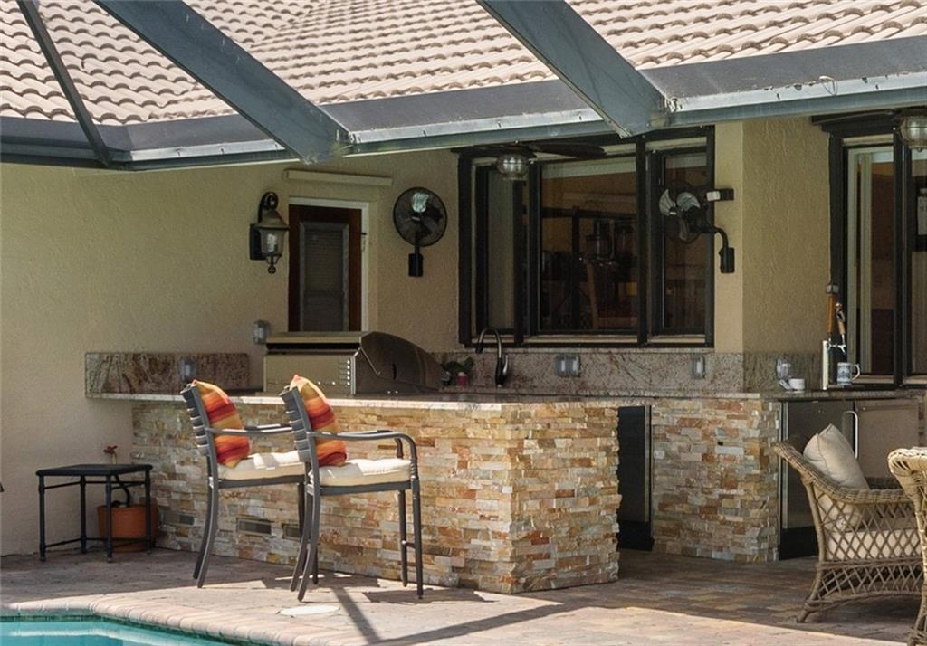 Spacious 2600+ sf waterfront home is where your Florida living begins: A $30,000 stacked stone summer kitchen/bar with built in Fisher & Paykel BBQ, 2 Burners, 2 Refrigerators, Storage & a Kegerator. Patio with long overhang for serene entertaining in all weather conditions, Screened, custom pool, w/ paver patio extending out into the fenced backyard to the wide, intersecting canals. Rolladen & Accordion shutters + impact garage door, New HWT & 2014 5 Ton A/C with Nest, water filtration & central vacuum systems. Landscaped, circular driveway pavers w/ space for at 6+ cars. Inside boasts: wood burning Coral FP, game room, laundry room, extra half bath, split floor plan, tile flooring, elevated kitchen/dr w/ neutral interior. See Supplemental Remarks.Low HOA: $60/mo.