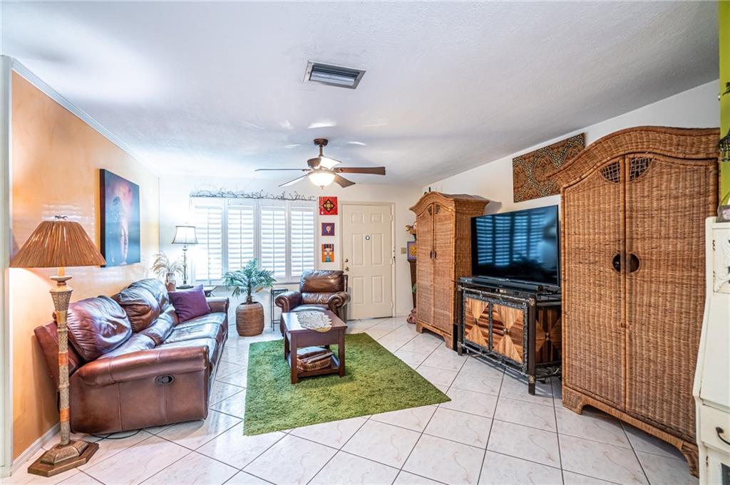 Well maintained 2/2 single family home w/enclosed Florida room. Bohemian decor throughout is warm and inviting.Home offers updated kitchen with cabinets and countertops, along with both baths. New electrical panel and water heater 2020. Relax on front porch enjoying your perfectly landscaped yard or privacy on your back patio. One of the most desired locations in Leisureville a 55+ community. No land lease