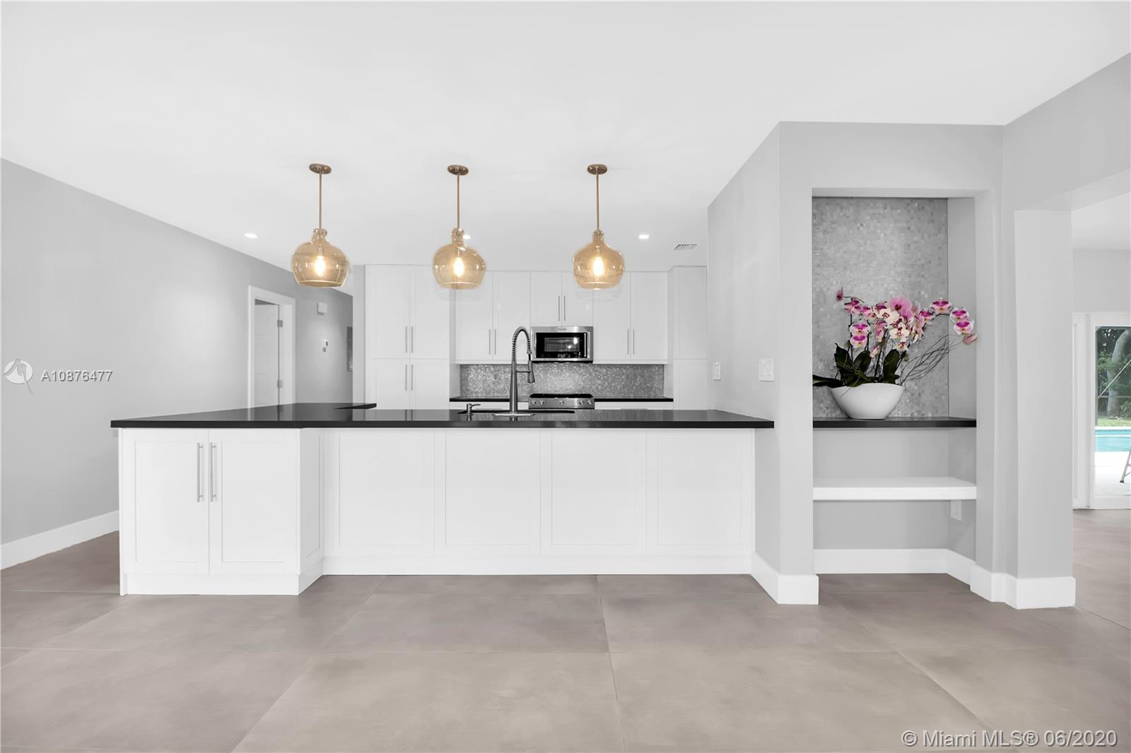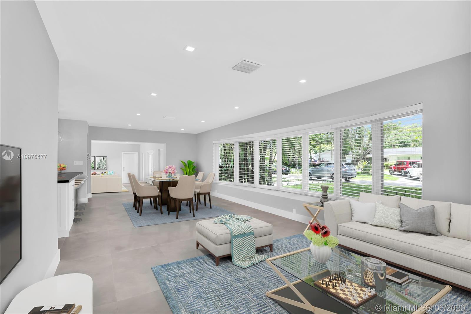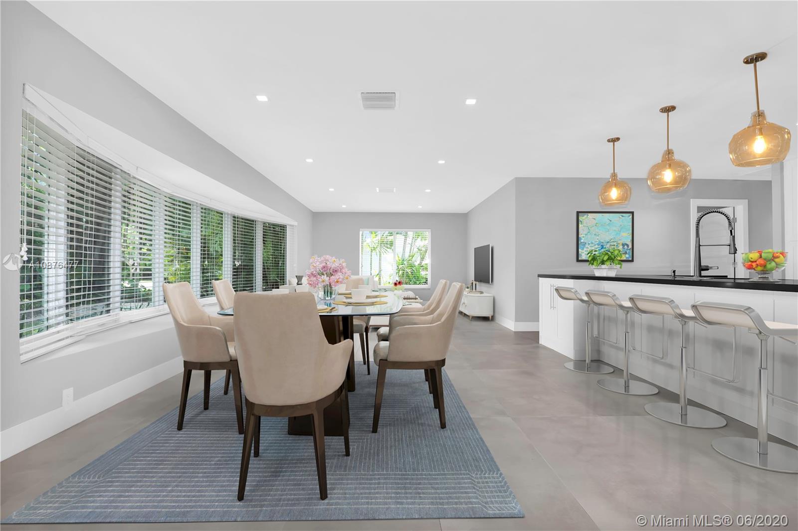 Stunning and beautifully remodeled waterfront 4 Bedroom 2 full bathroom home offering 3,257 total square feet on a private cul-de-sac street in Pinecrest, Florida. This house has it all! Enjoy the beautiful panoramic views from the bedrooms, formal living, dining, and covered terrace of the water. New porcelain floors, new bathrooms & bathroom fixtures, new A/C, Hurricane Impact resistant windows & doors, newly refinished pool with new pool equipment, luscious tropical landscaping & mature trees. New kitchen and bathroom cabinetry throughout, new stainless-steel KitchenAid Appliances with gas stovetop. A great open floor plan that flows harmoniously. This home has not been lived in post-renovation. Be the first one!