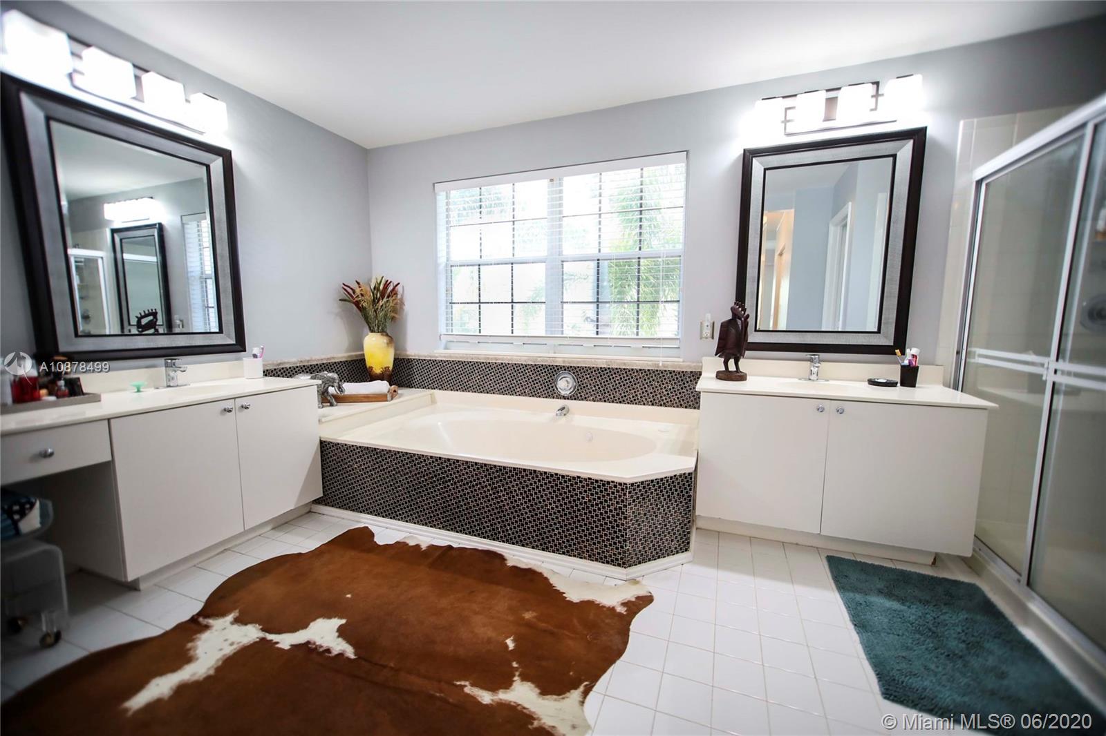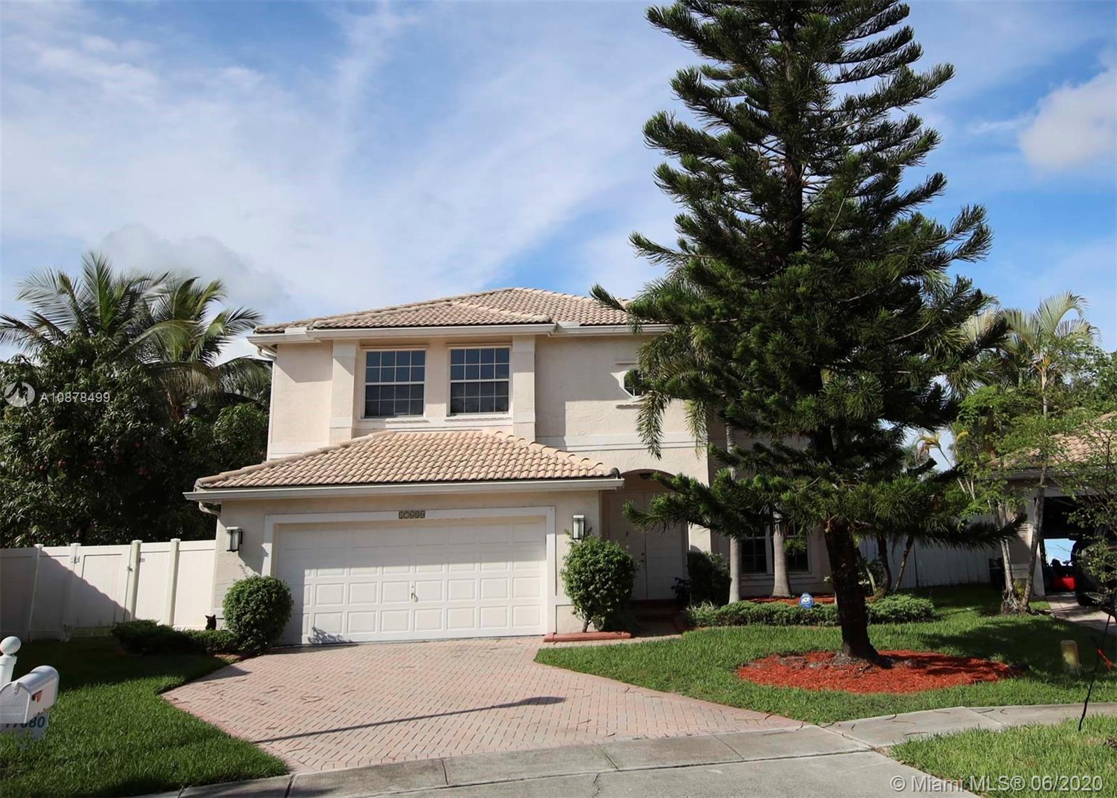 A Lovely & spacious two story home with 4 beds/2.5 baths in the neighborhood of Marina Pointe, Silver Lakes, in West Miramar. The 1st level features open space living with a formal dining, eat-in kitchen, large family room, equipped laundry room with sink, & guest half bathroom. An Upgraded kitchen with granite counter tops, SS appliances & 42" wood cabinets. Tile throughout on the 1st floor & wood on the 2nd floor. All bedrooms are located upstairs. Large master bedroom with a great den, office or nursery area so convenient for these times & two walk-in closets. Freshly painted inside. Ample fenced in backyard with room for a pool. 2 AC units, the 1st floor unit is new & the upstairs unit is around 5 years old. New water heather & sprinkler pump. Walking distance to the community pool.