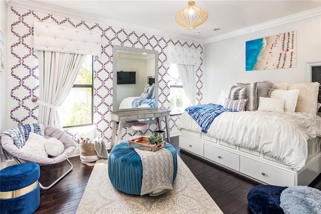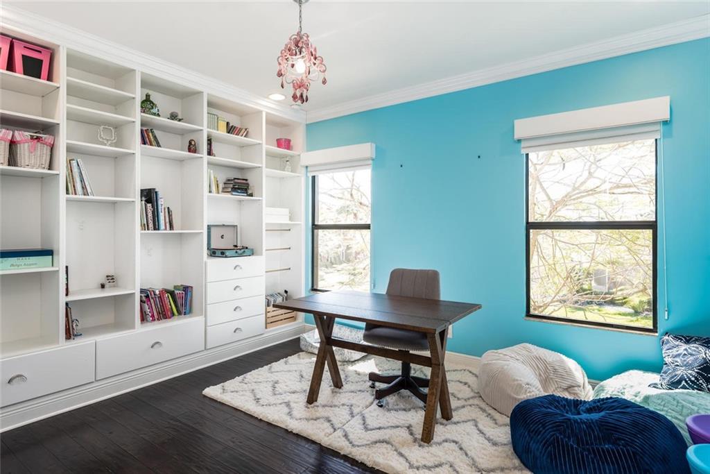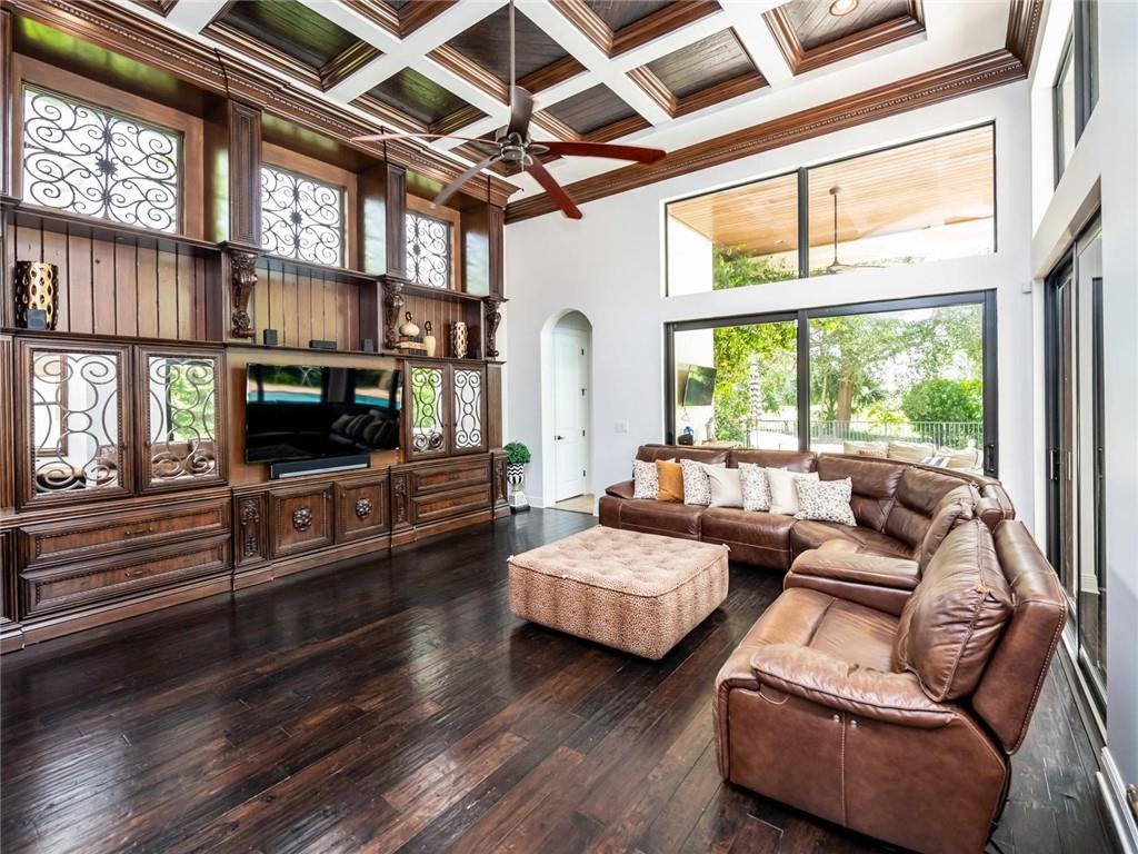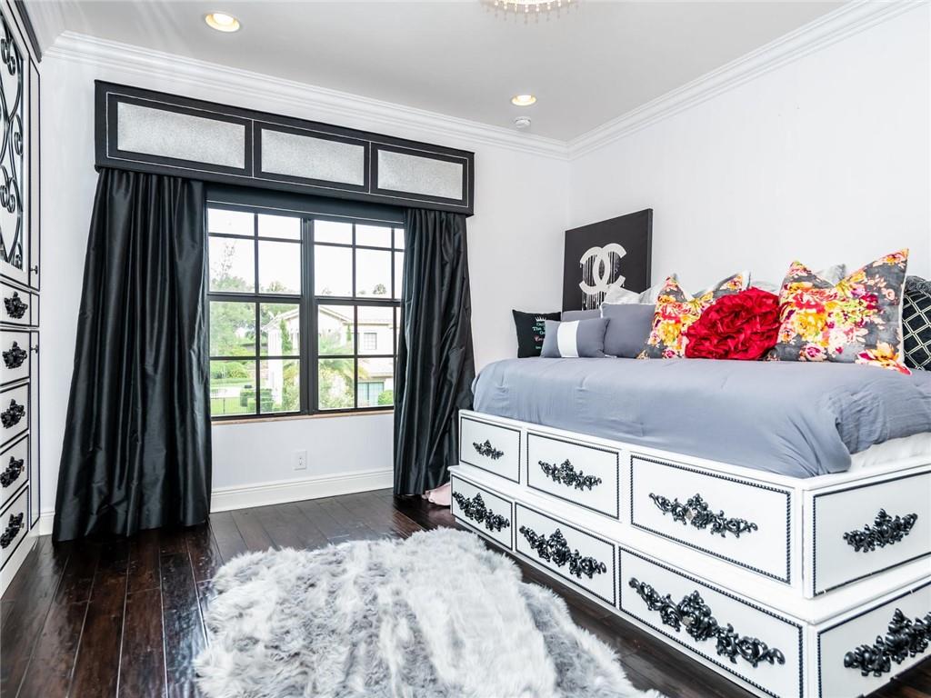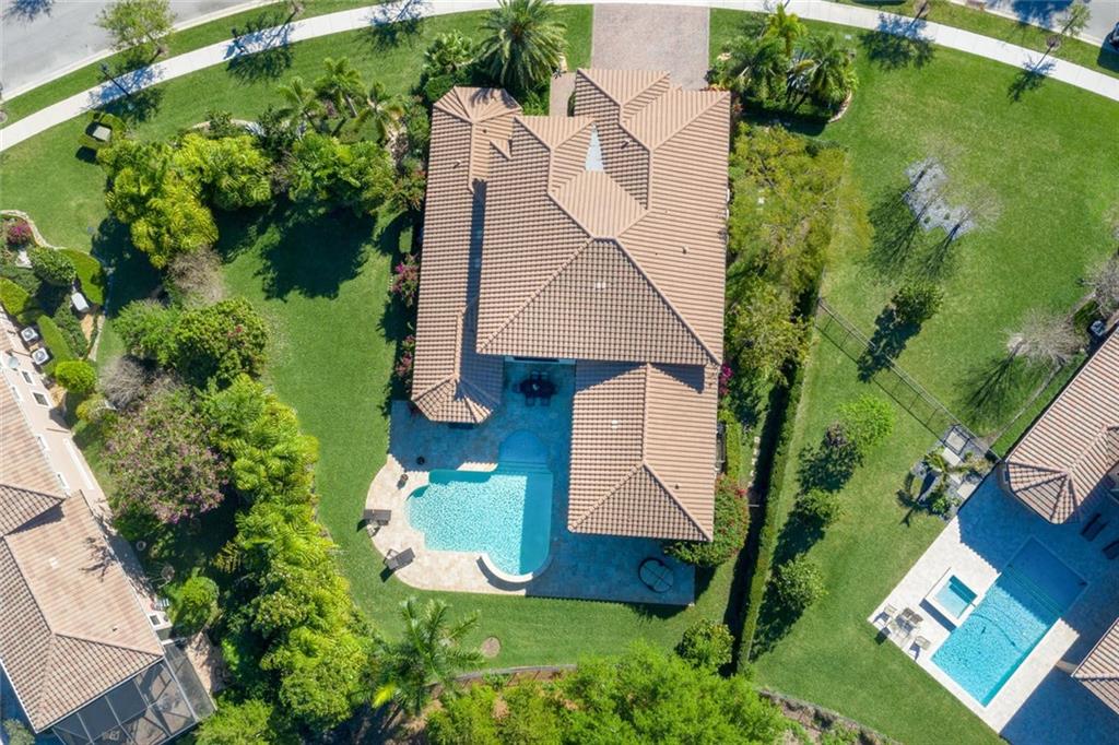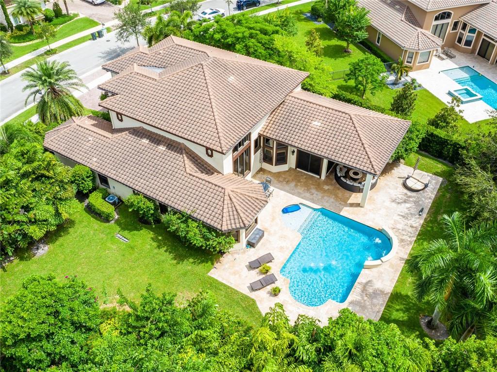 AMAZING HUGE LOT ON THE 5TH GREEN! Fine Details and Upgrades throughout the entire home. 6 Bedrooms (Master Downstairs) + Office + Loft + 4 Bathrooms +2 powder bathrooms + 3 car garage. GOURMET Kitchen with double ovens, stainless steel appliances, Island with extra sink, Custom hood range & 2 custom built in pantries. Wood floors, custom wood work and molding on ceilings, archways & windows. Backyard Paradise overlooking the 5th Green features waterfalls, lights, saltwater system, pool heater, outdoor shower, covered large Lanai with Mosquito mister system & HUGE Private side yard completely fenced. This house has it all! Additional features include hurricane impact windows, custom decorative built ins in every room including a Purse display/dressing area in Master Bedroom! MUST SEE!!
