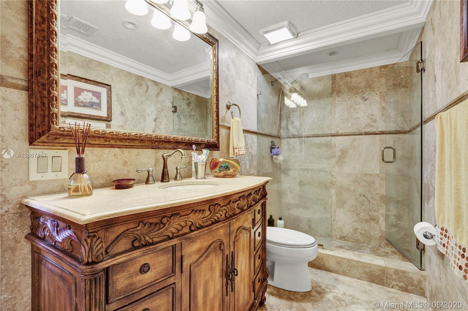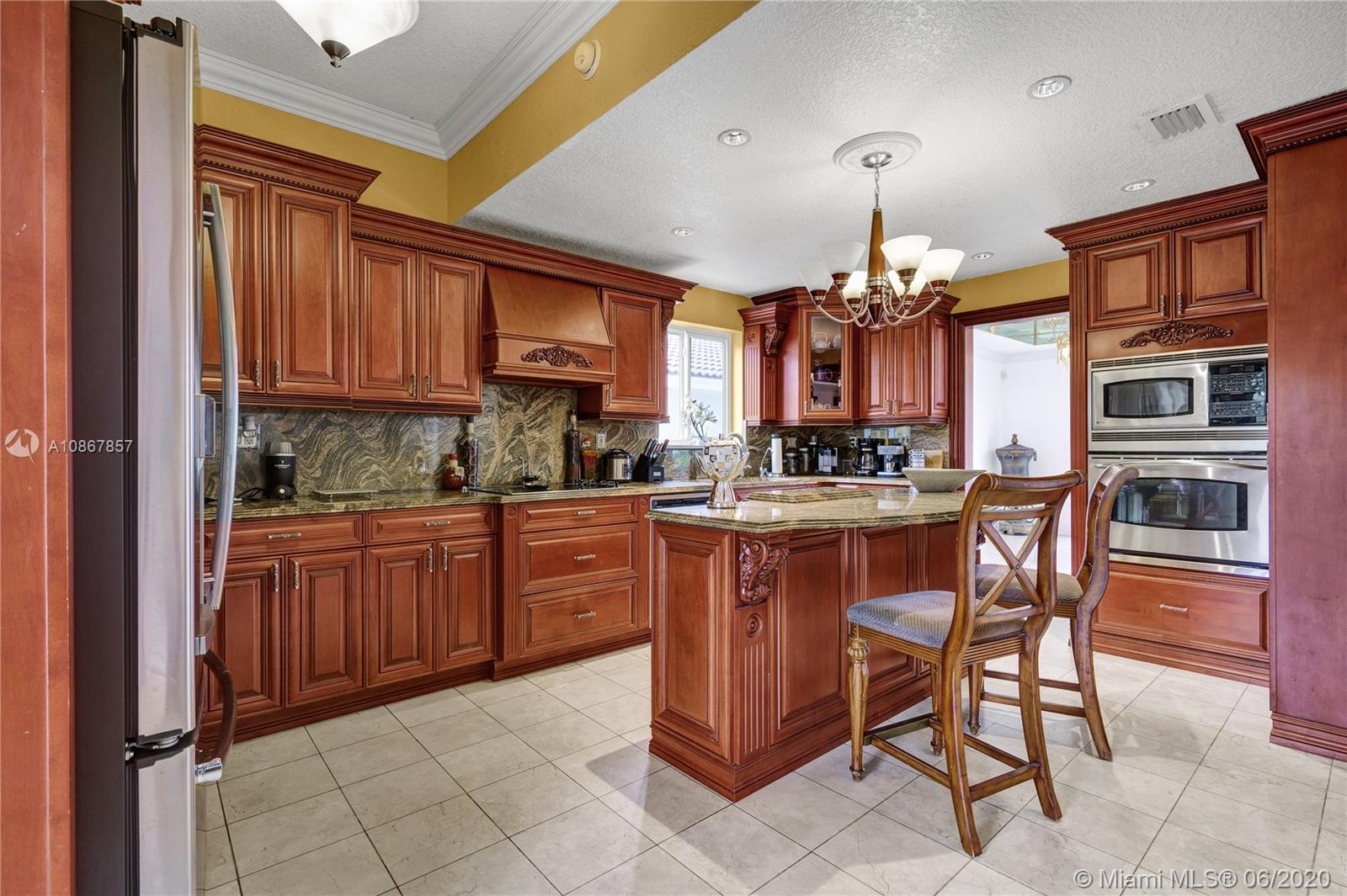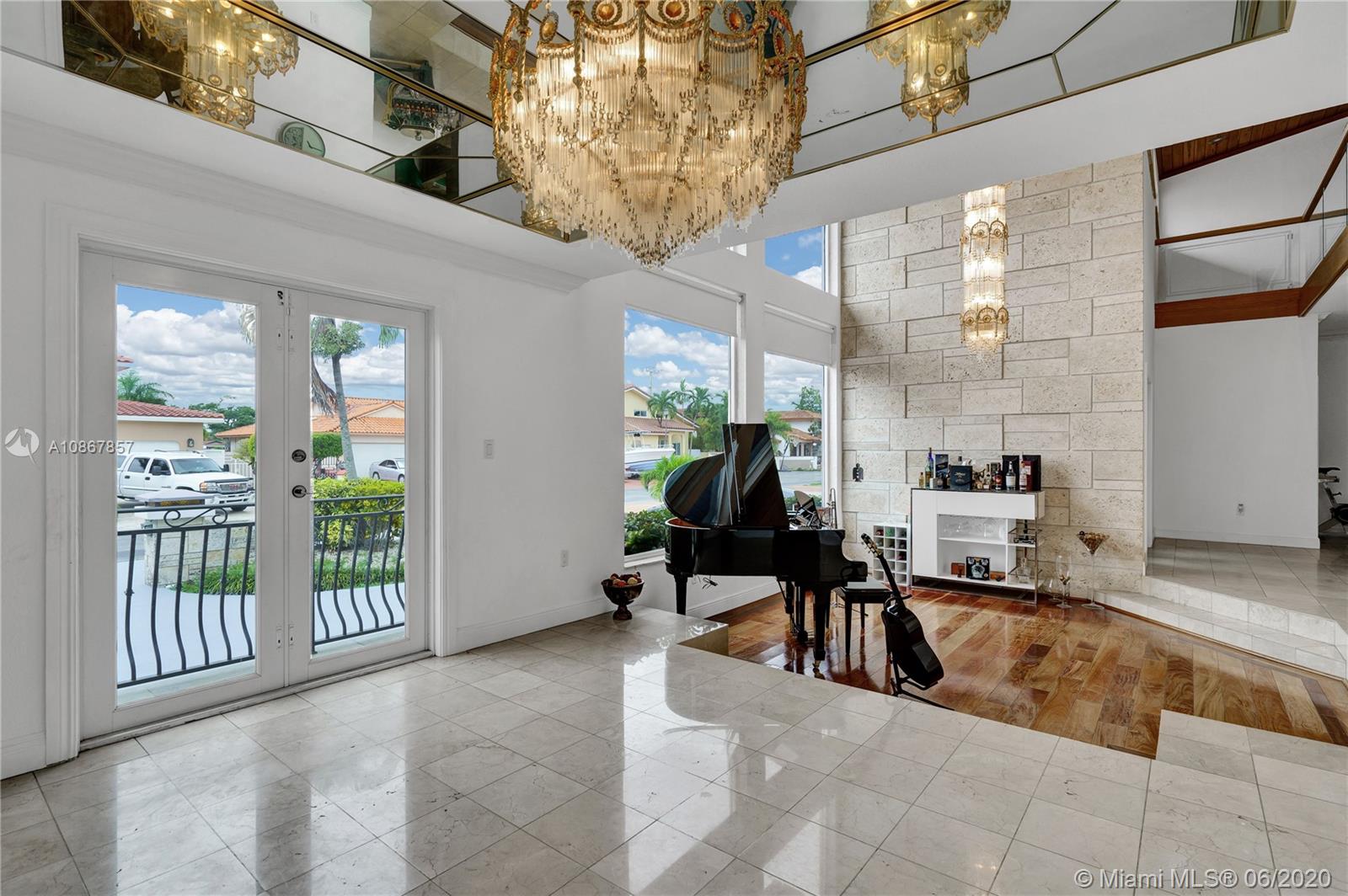Marivi Gardens is a secluded Cul de Sac, limited to only 12 residences that are rarely seen on the market. Even more exclusive, is the opportunity to own this amount of land & luxury at such a low cost per foot. There is plenty of parking to go around for your whole family’s cars, boats & commercial vehicles. Carefully tread up the travertine floors as you are saluted by a stone wall and a spacious veranda suitable for safe & small gatherings. A few steps into your new home provides a view of timeless finishing including crown molding, wooden stairs with glazed railing, real wood flooring, and high grade (level 3) granite sitting on every cabinetry. Downstairs is a guest bedroom with private bathroom. Pick pool or jacuzzi & enjoy the breeze as the palm trees protect your privacy.