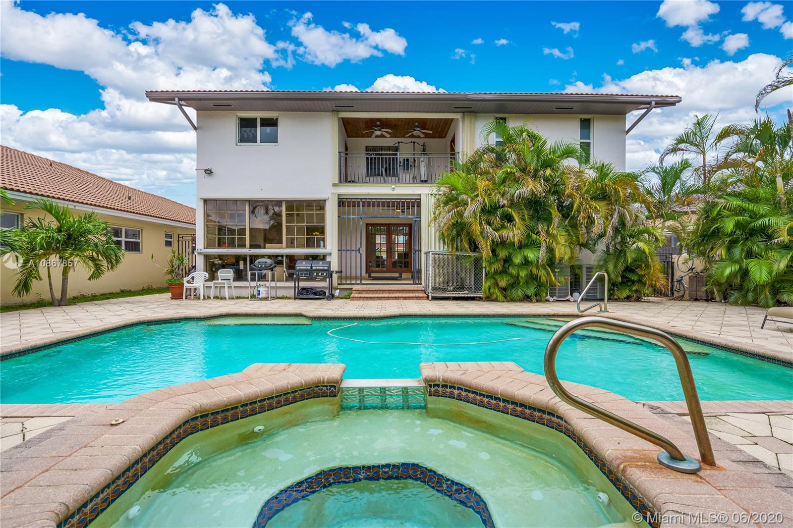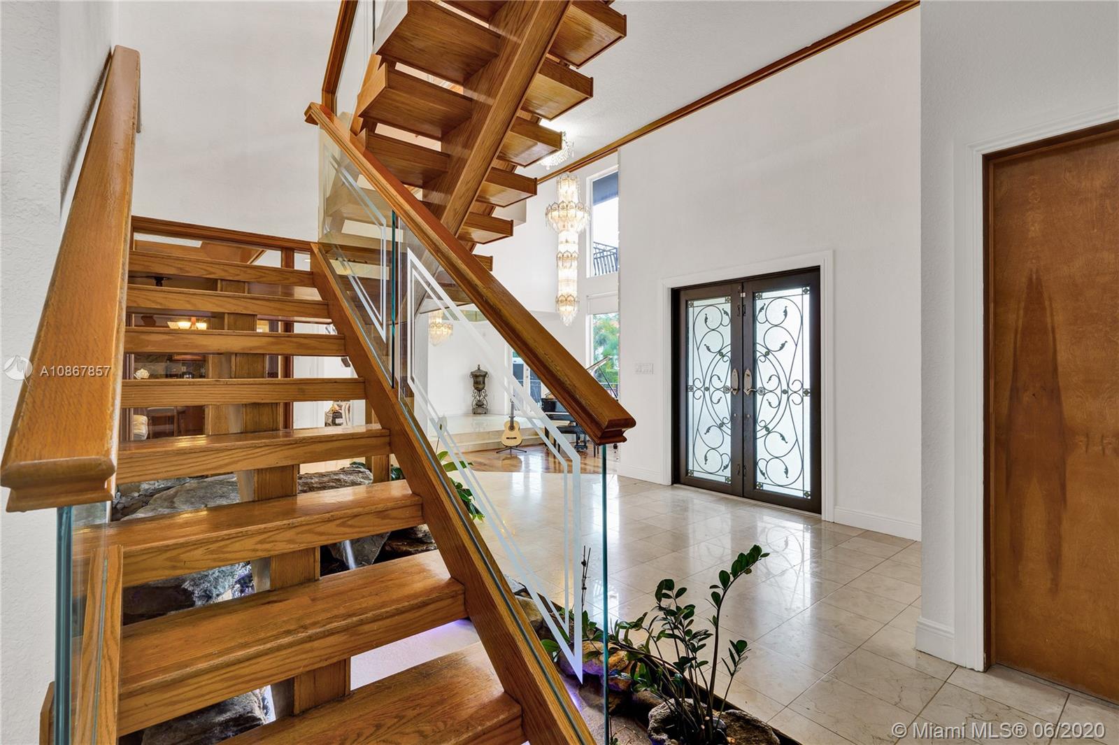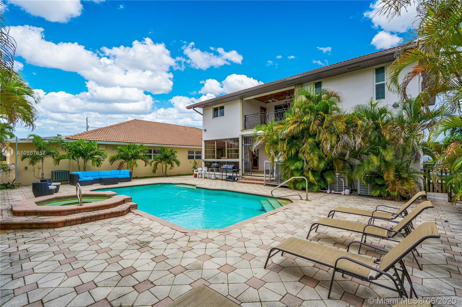 Marivi Gardens is a secluded Cul de Sac, limited to only 12 residences that are rarely seen on the market. Even more exclusive, is the opportunity to own this amount of land & luxury at such a low cost per foot. There is plenty of parking to go around for your whole family’s cars, boats & commercial vehicles. Carefully tread up the travertine floors as you are saluted by a stone wall and a spacious veranda suitable for safe & small gatherings. A few steps into your new home provides a view of timeless finishing including crown molding, wooden stairs with glazed railing, real wood flooring, and high grade (level 3) granite sitting on every cabinetry. Downstairs is a guest bedroom with private bathroom. Pick pool or jacuzzi & enjoy the breeze as the palm trees protect your privacy.