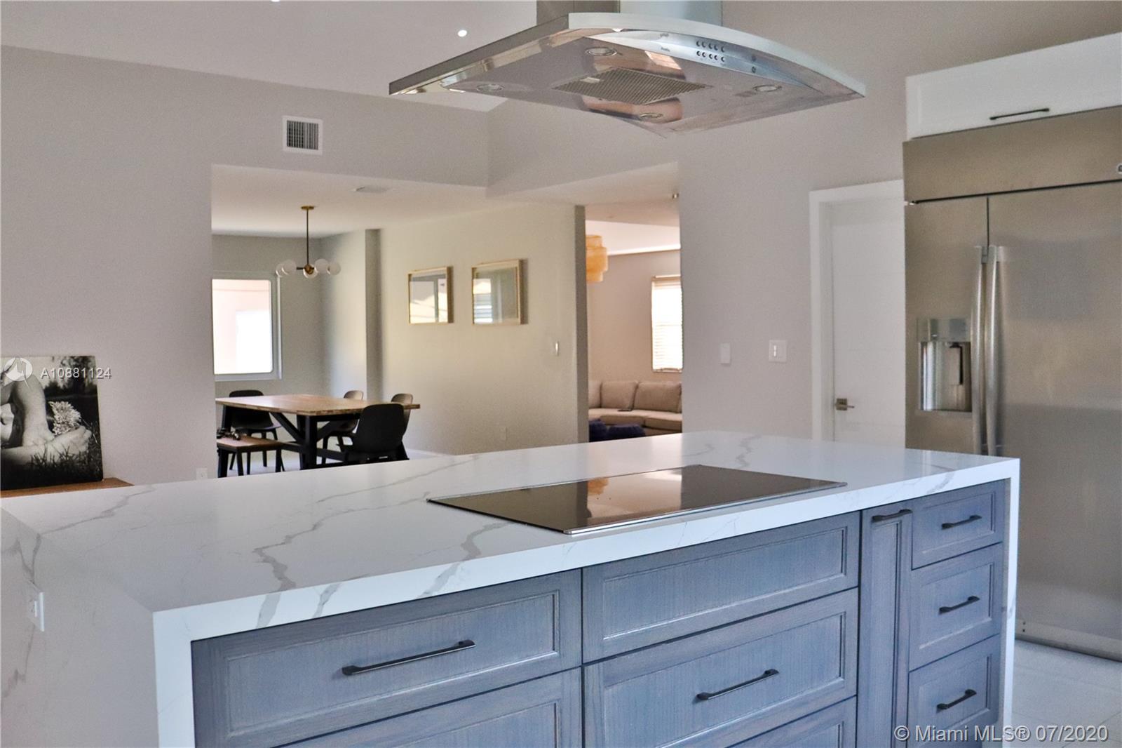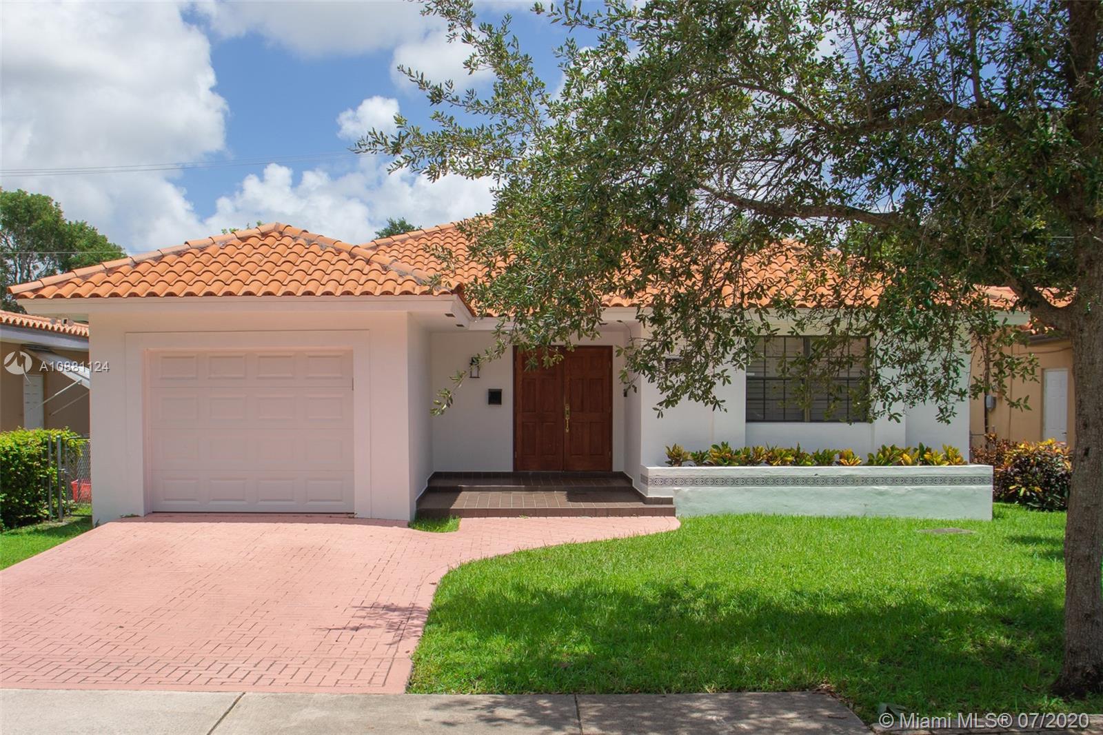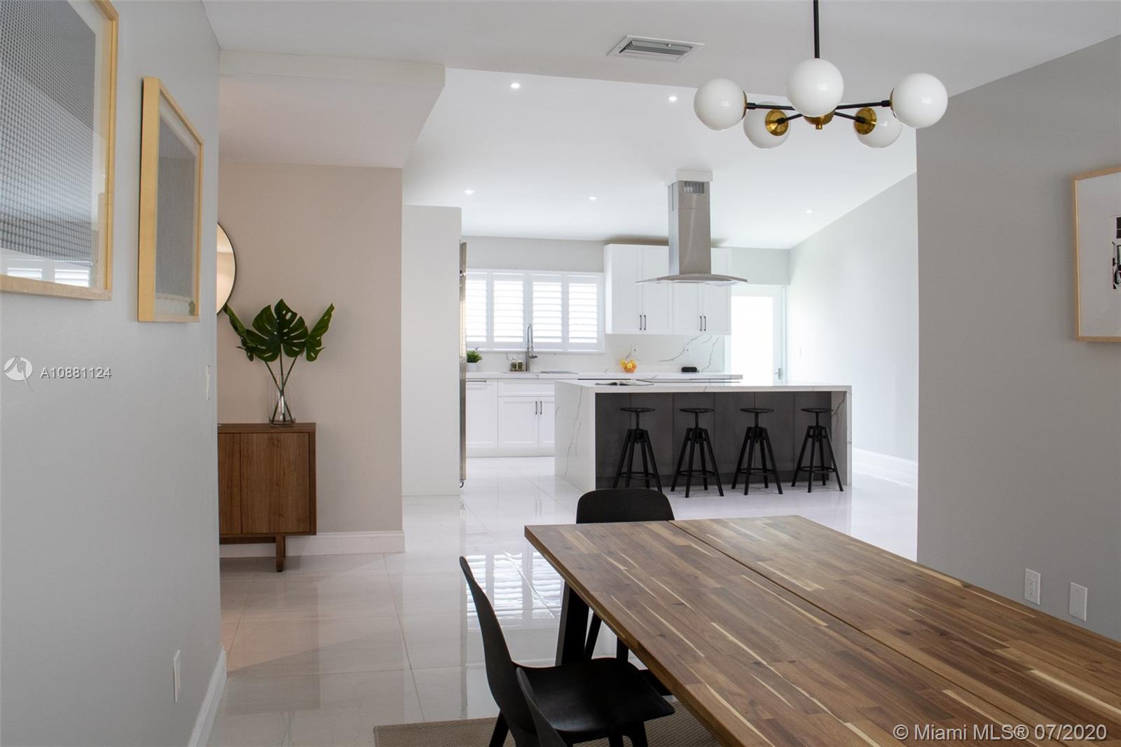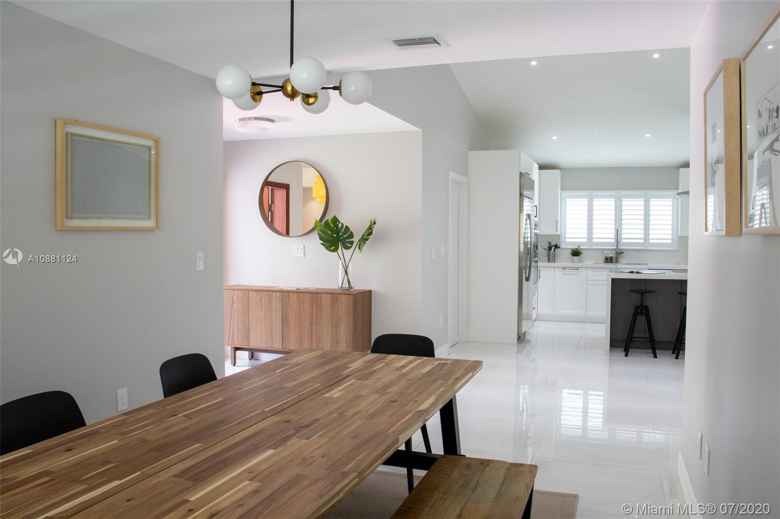 One of a kind, newly renovated 3 BD/2 BA home in Coral Gables. Home features high vaulted ceilings, 8X4 ft kitchen island with new stainless steel appliances, induction cooktop, and dual temperature wine fridge. Quartz countertops, impact windows, large porcelain tile floors, LED recessed lighting, custom closets, and tastefully renovated bathrooms are among its features. New AC, washer & dryer, and Ring security system are also included. Don't miss the opportunity to live on this beautiful & quiet, tree lined street. Move-in ready!